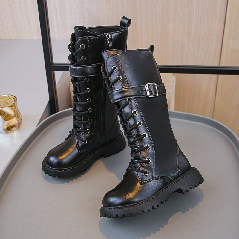여아 부츠 2025 봄, 가을 싱글 부츠 새로운 작은 면 부츠 중대형 어린이 하이 부츠 면 부츠 어린이 마틴 부츠