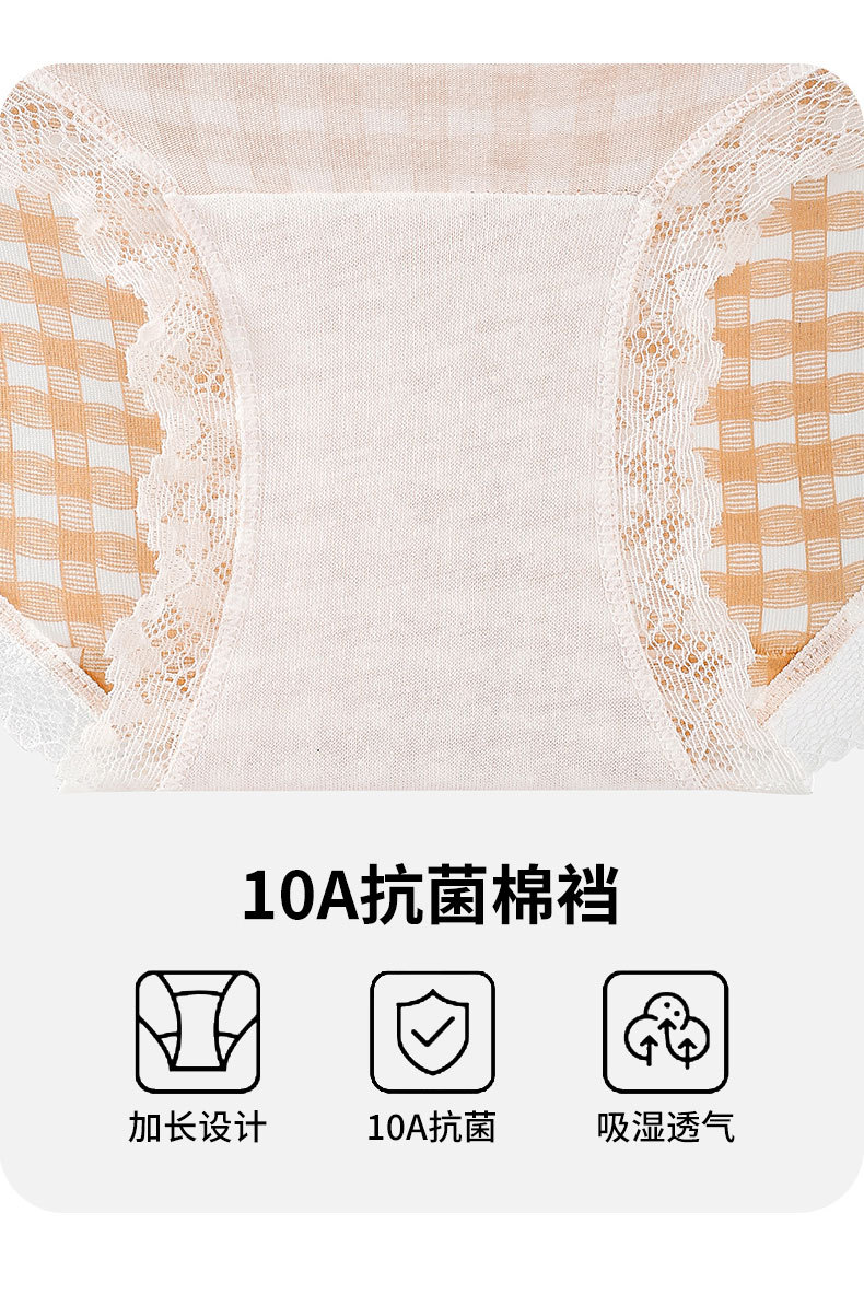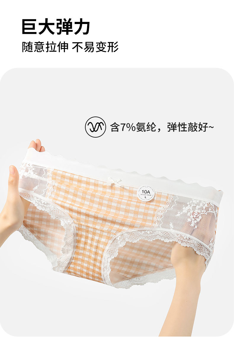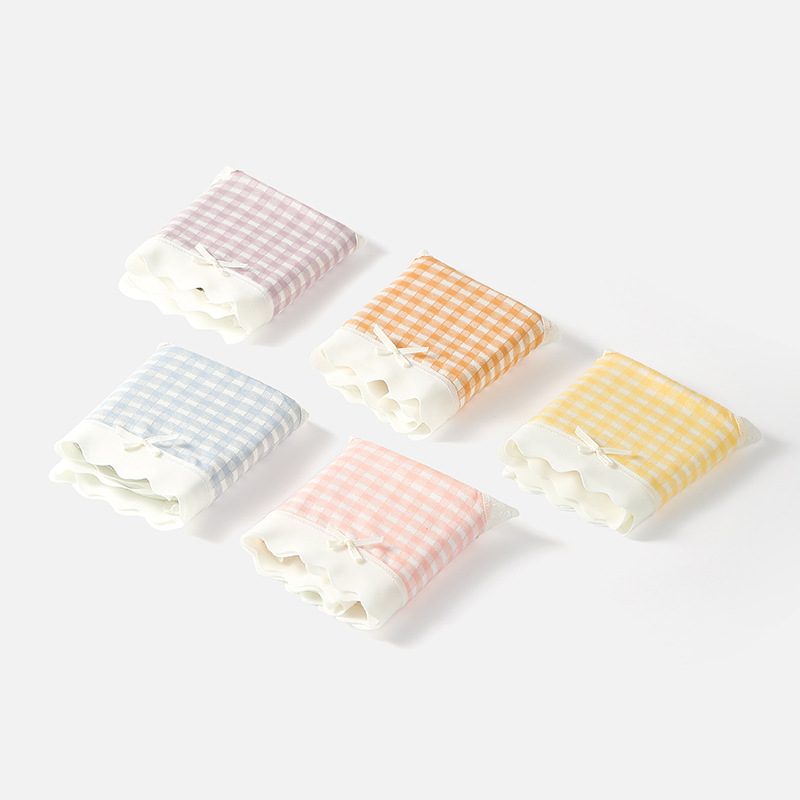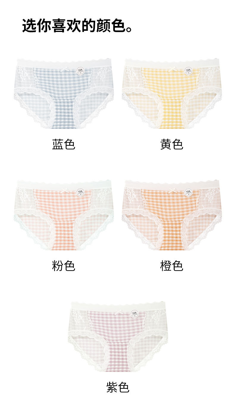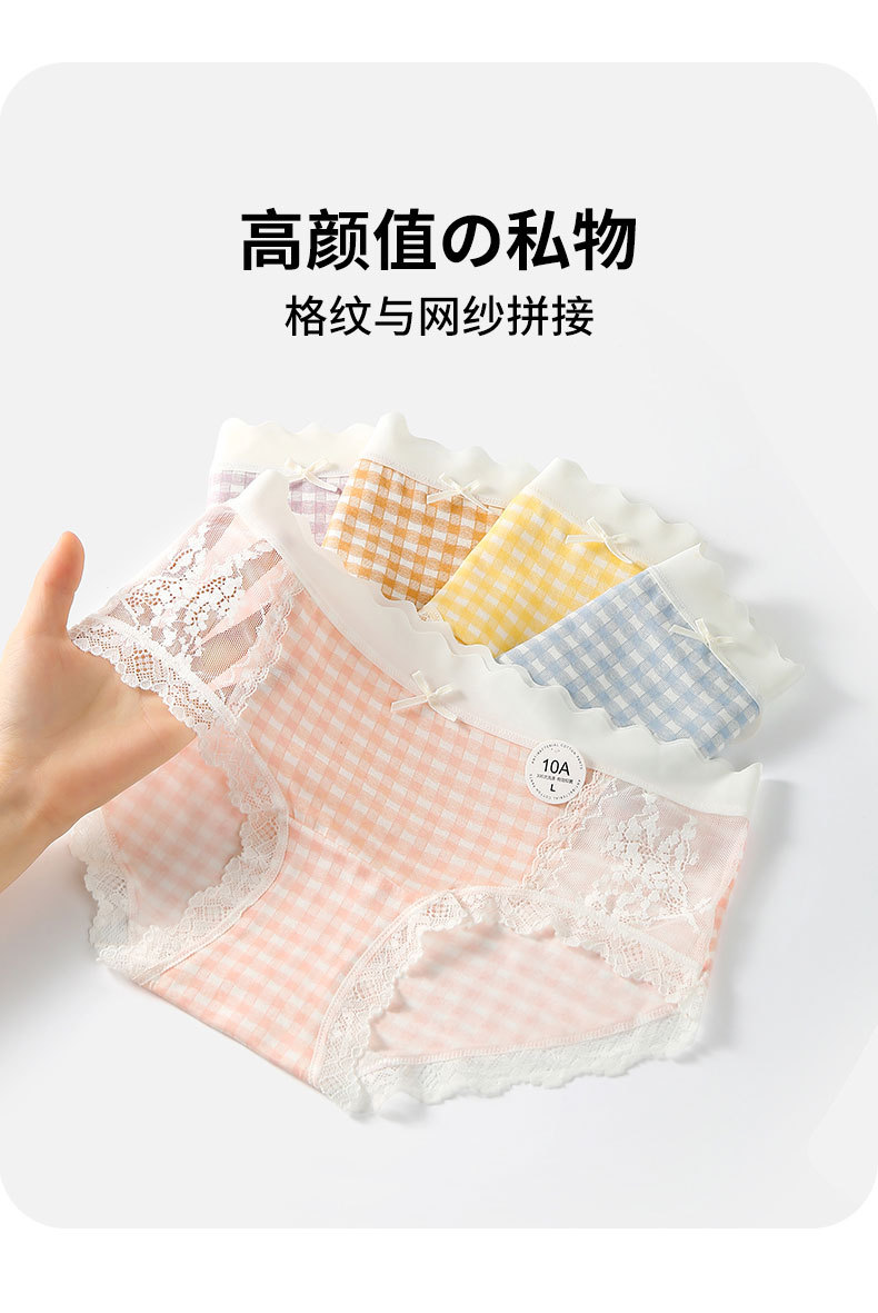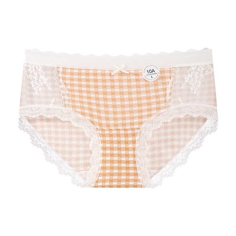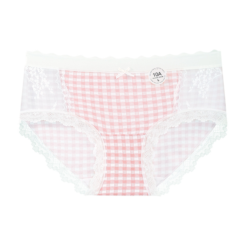 달콤한 격자 무늬 레이스 속옷 여성의 중간 허리 10A 항균 계층화 된 면화 스트레치 가방 힙합 일본식 소녀 브리프스토어 가기