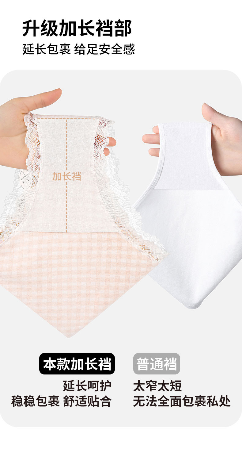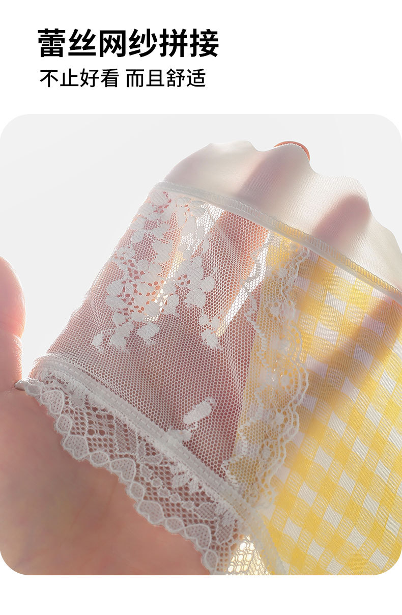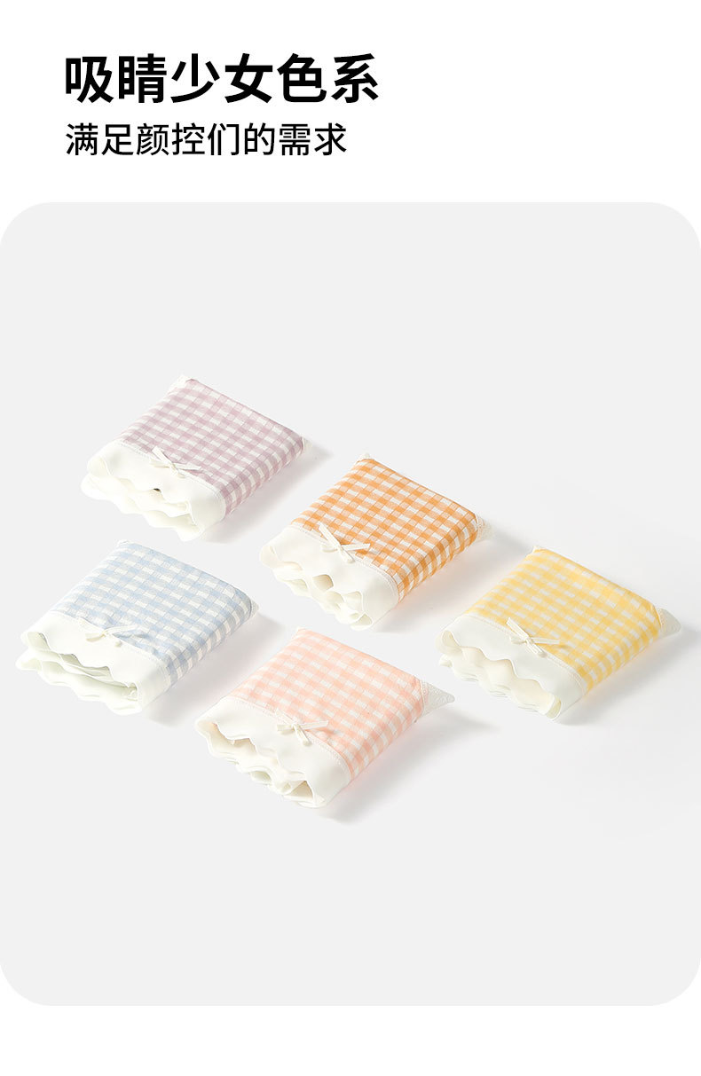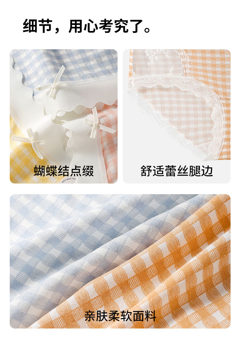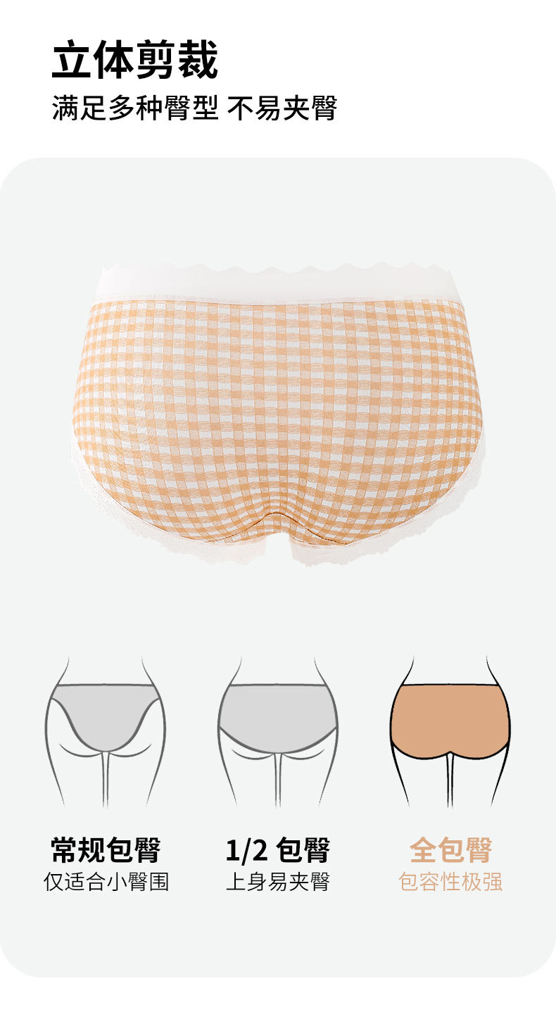 달콤한 격자 무늬 레이스 속옷 여성의 중간 허리 10A 항균 계층화 된 면화 스트레치 가방 힙합 일본식 소녀 브리프스토어 가기