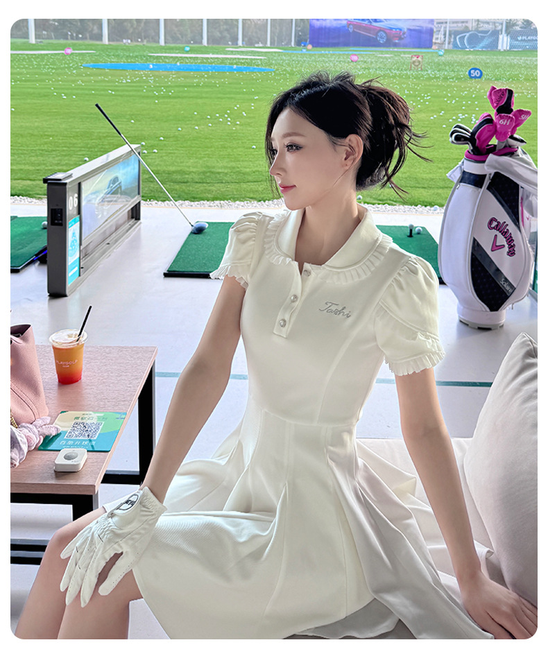 TASHI 새로운 한국 골프 드레스 여성 봄 슬림 하이 웨이스트 스커트 패션 플리츠 스커트스토어 가기