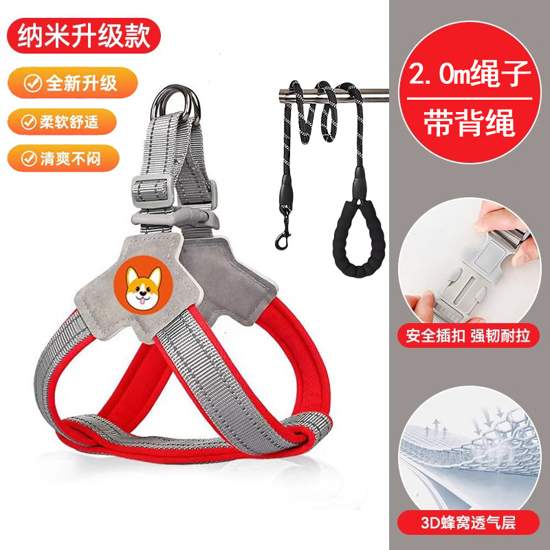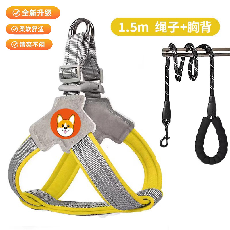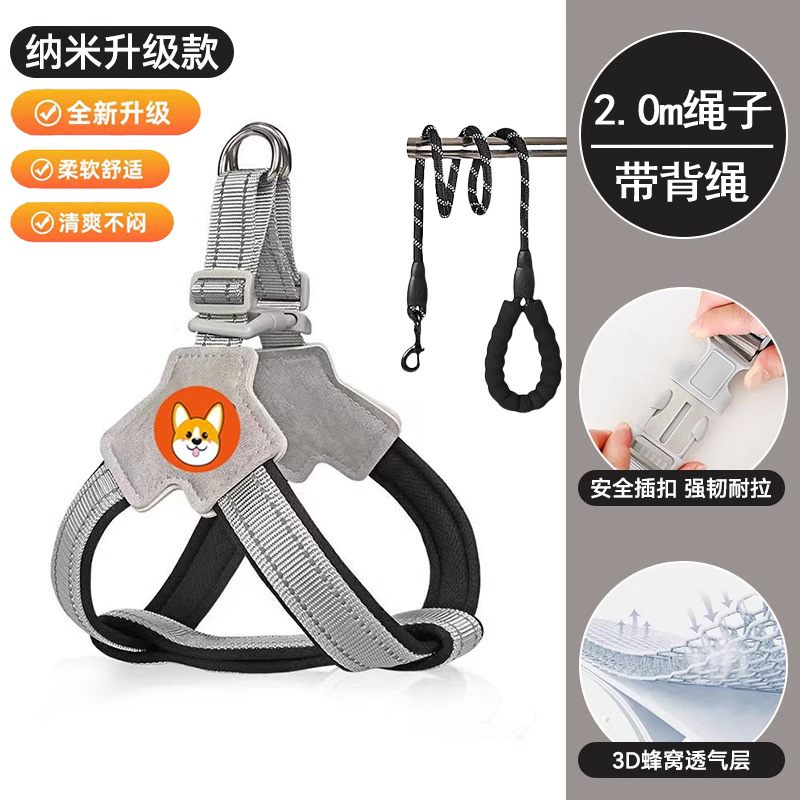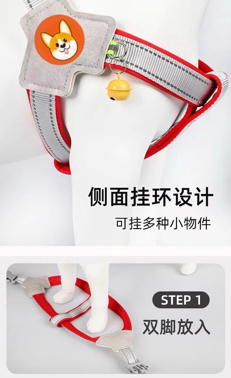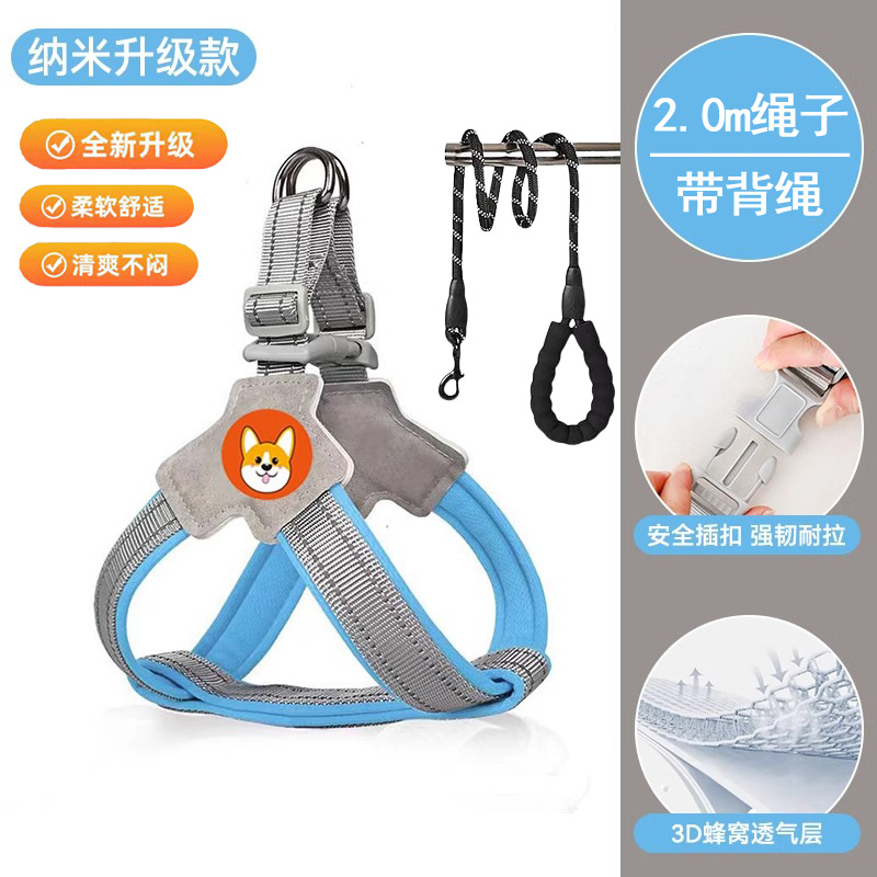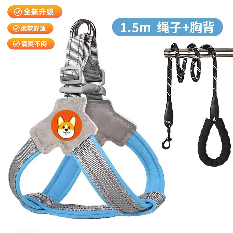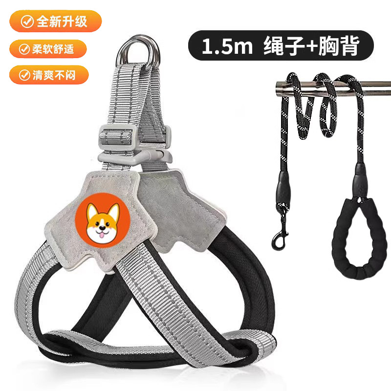 개 가죽 끈 가슴과 등 개 가죽 끈 미디어와 작은 개 애완 동물 스트랩 Corgi Teddy Bixiong 워킹 개 가죽 끈