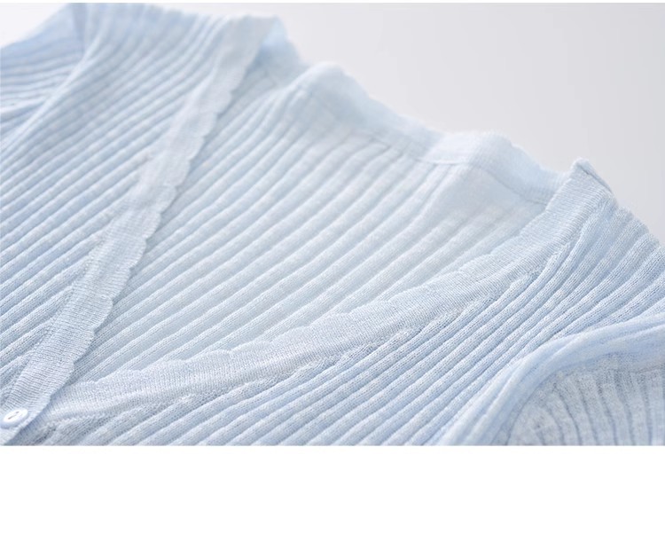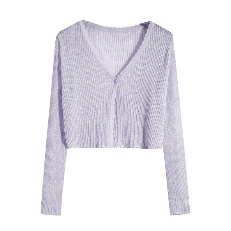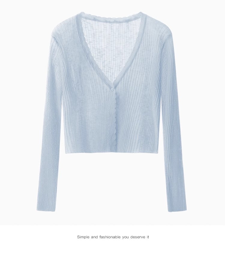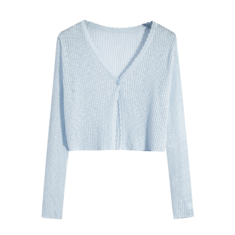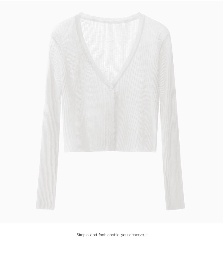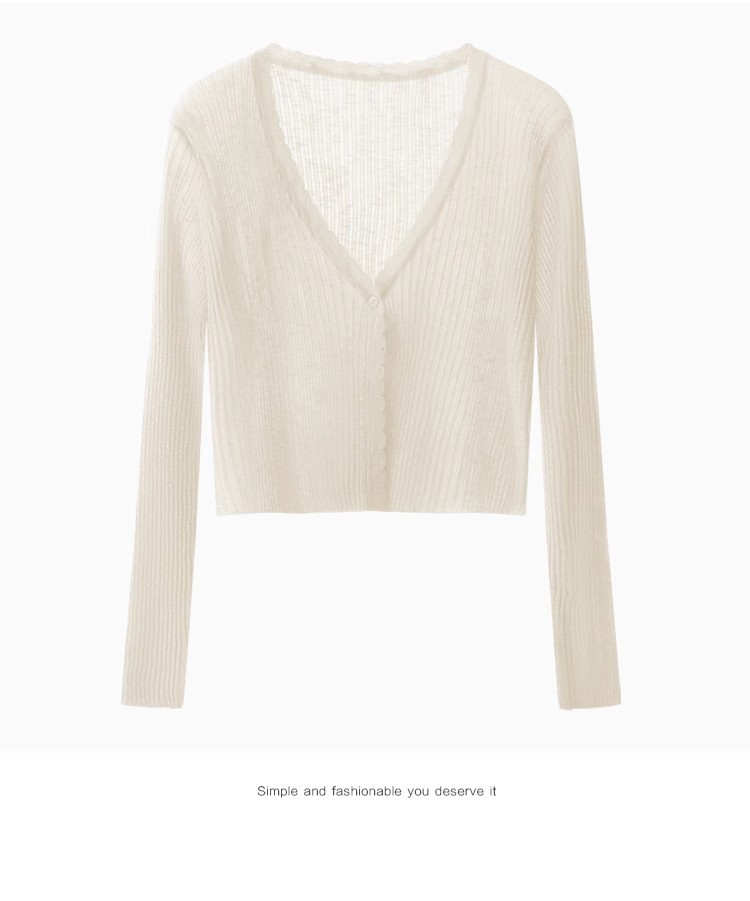 V 넥 화이트 니트 카디건 얇은 여성 2025 뉴 여름 얼음 실크 자외선 차단제 긴팔 자켓 짧은 탑