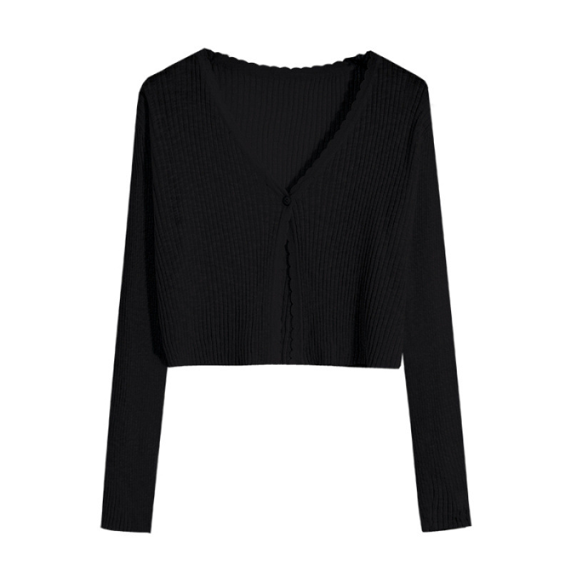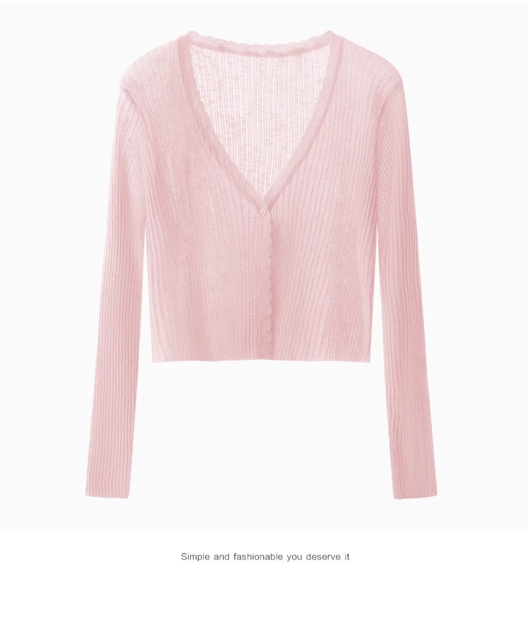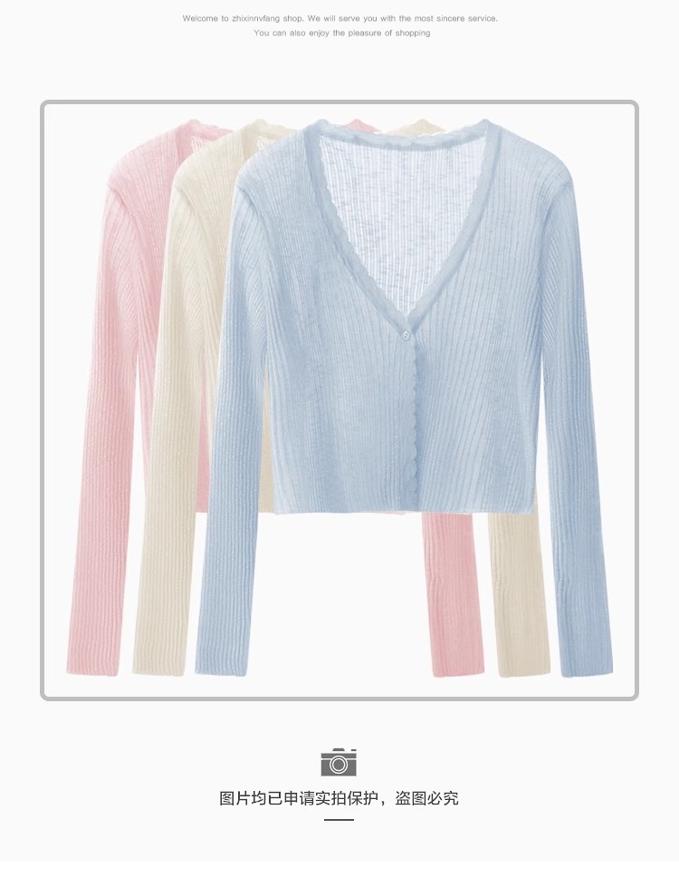 V 넥 화이트 니트 카디건 얇은 여성 2025 뉴 여름 얼음 실크 자외선 차단제 긴팔 자켓 짧은 탑스토어 가기