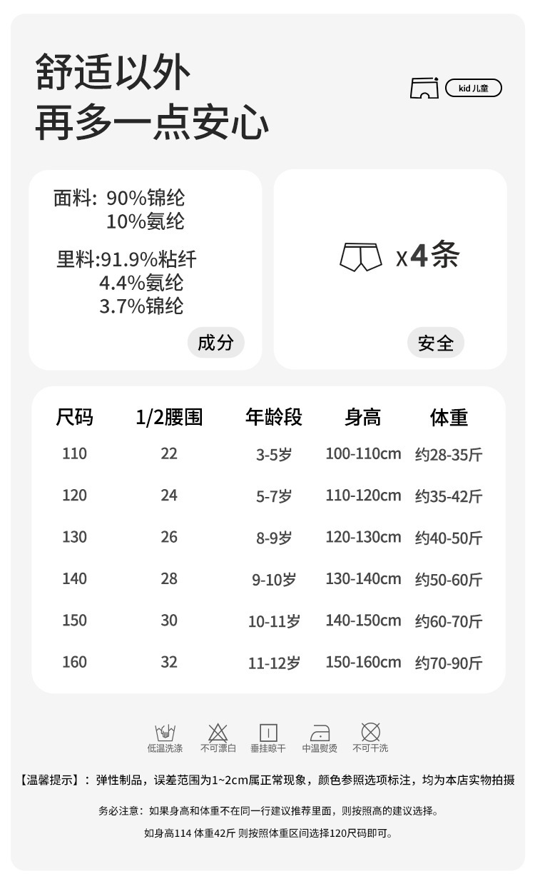N183 솔리드 컬러 소년 속옷 도매 7A 항균 아기 복서 팬티 클래스 A 통기성 어린이 속옷 여름 얇은스토어 가기