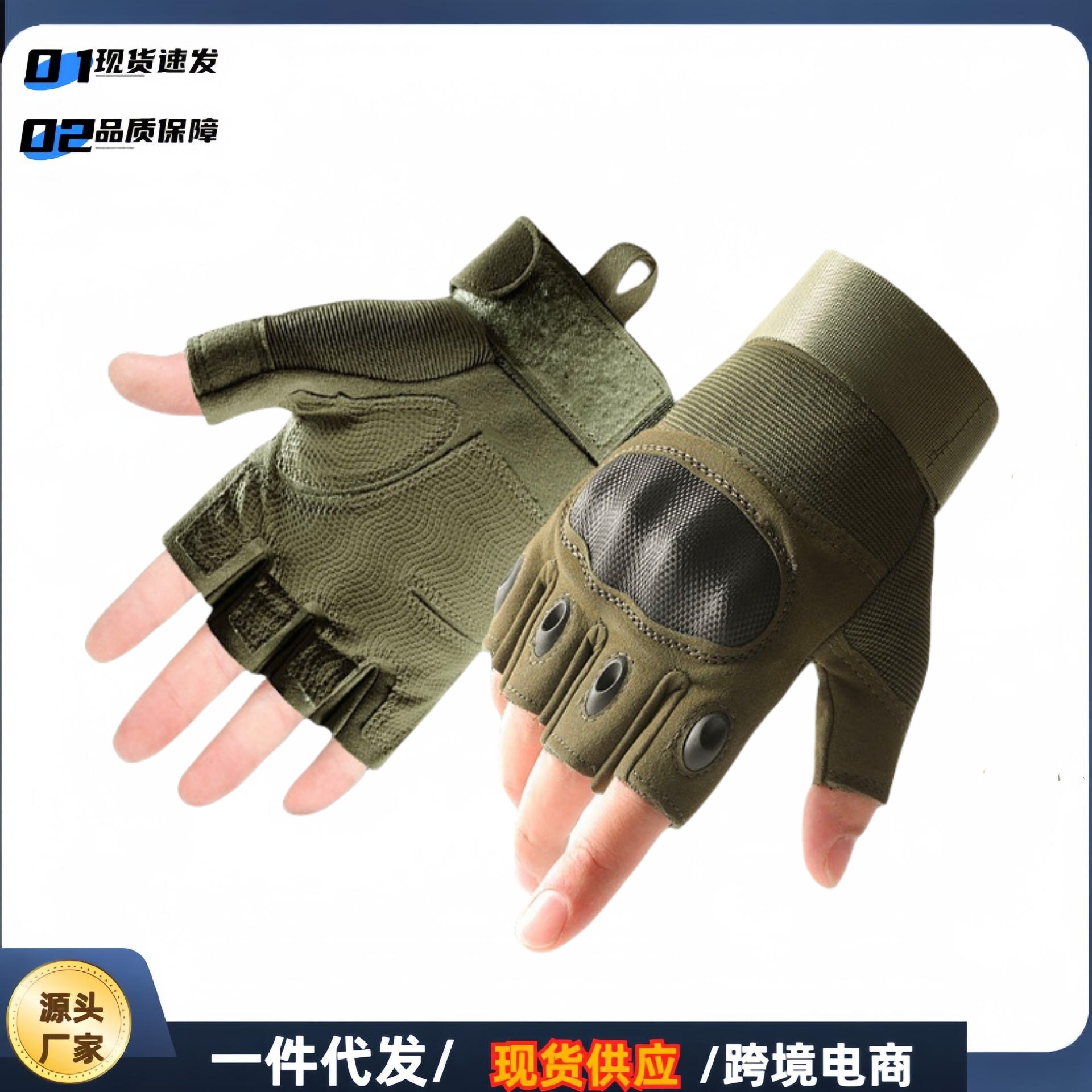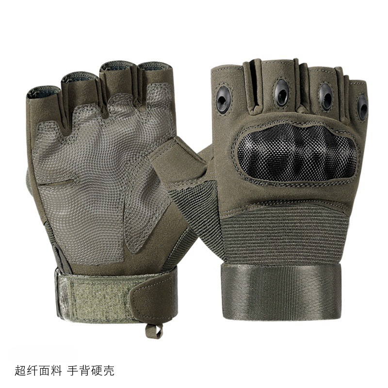 • 전술 장갑 섬유 쉘 반 손가락 [군용 녹색] 군용 팬 훈련 보호