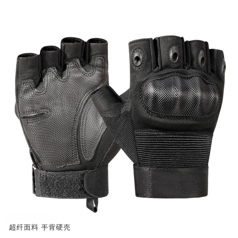 • 전술 장갑 하드 쉘 반 손가락 [블랙] 군용 팬 훈련 보호