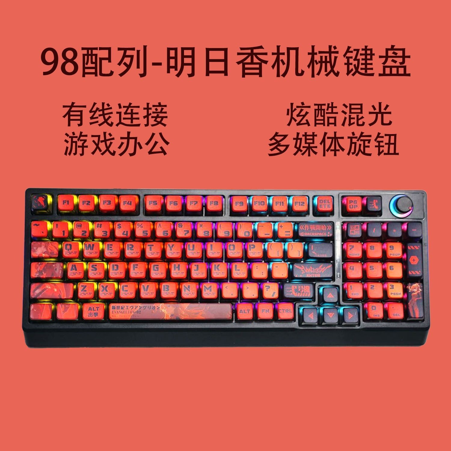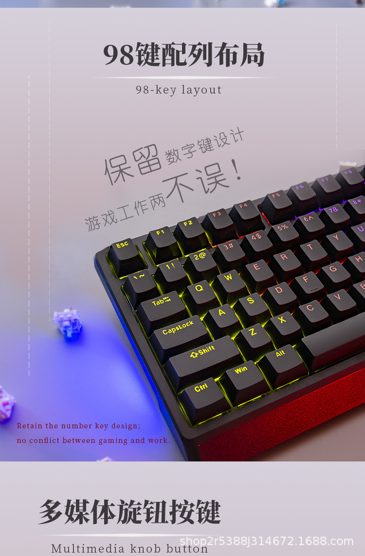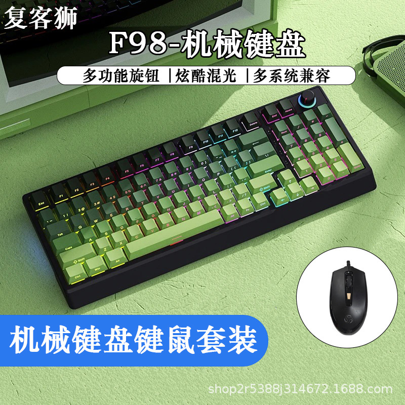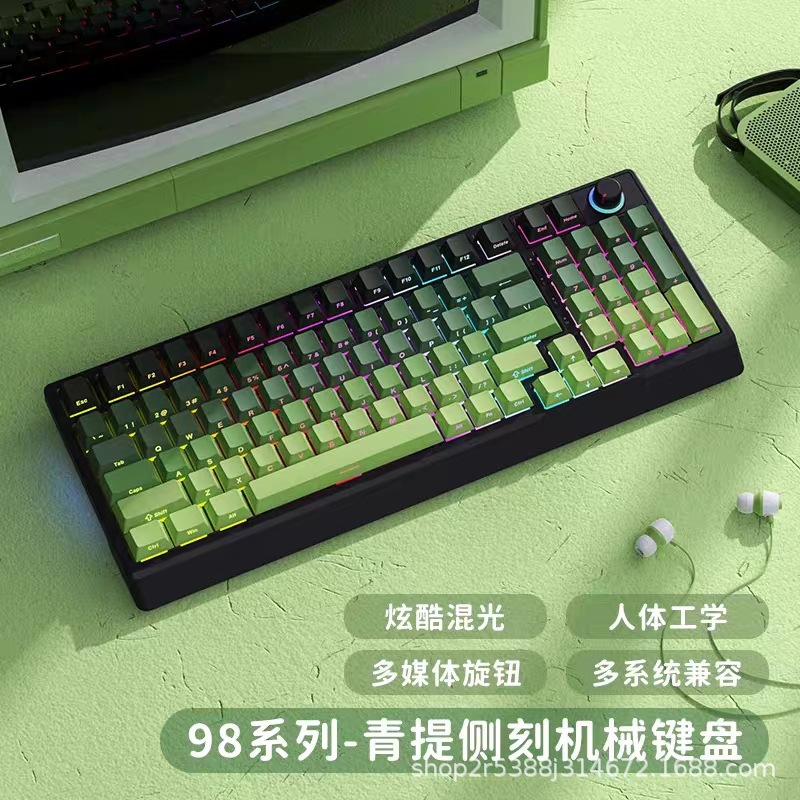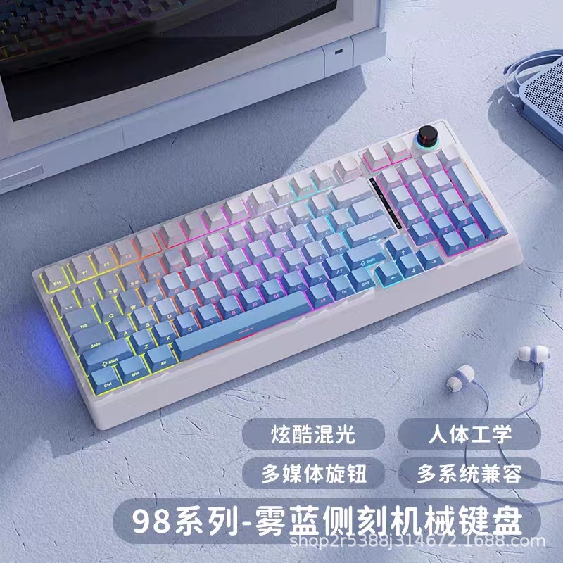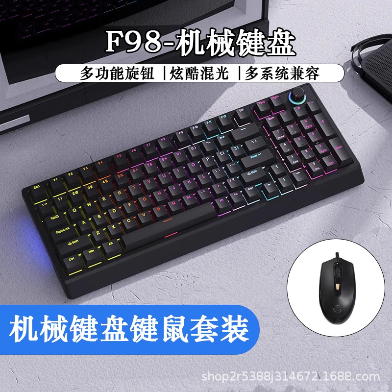 공장 재고 도매 98키 백라이트 유선 진정한 기계식 키보드 청축/적축 크로스보더 아마존 다색 혼합 조명