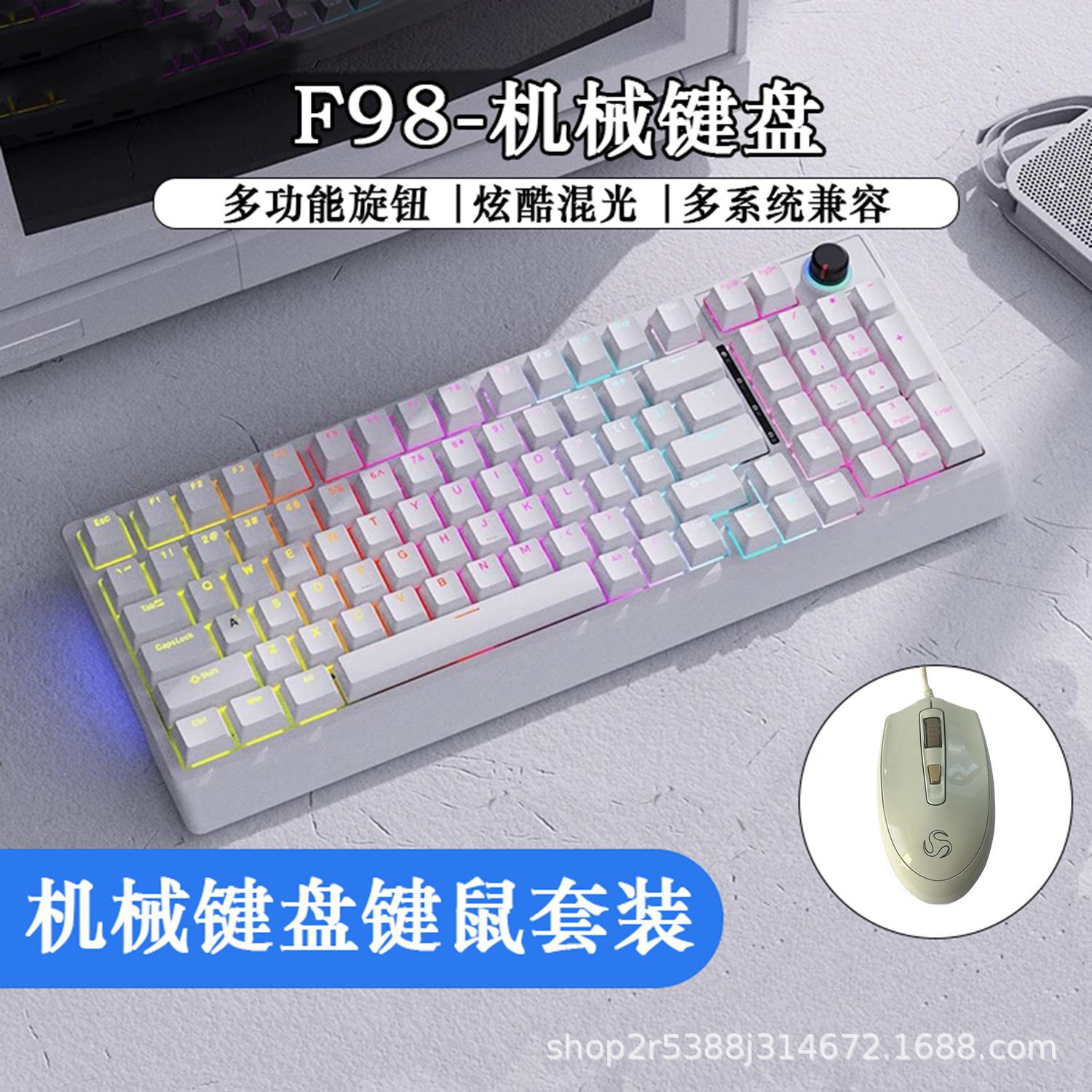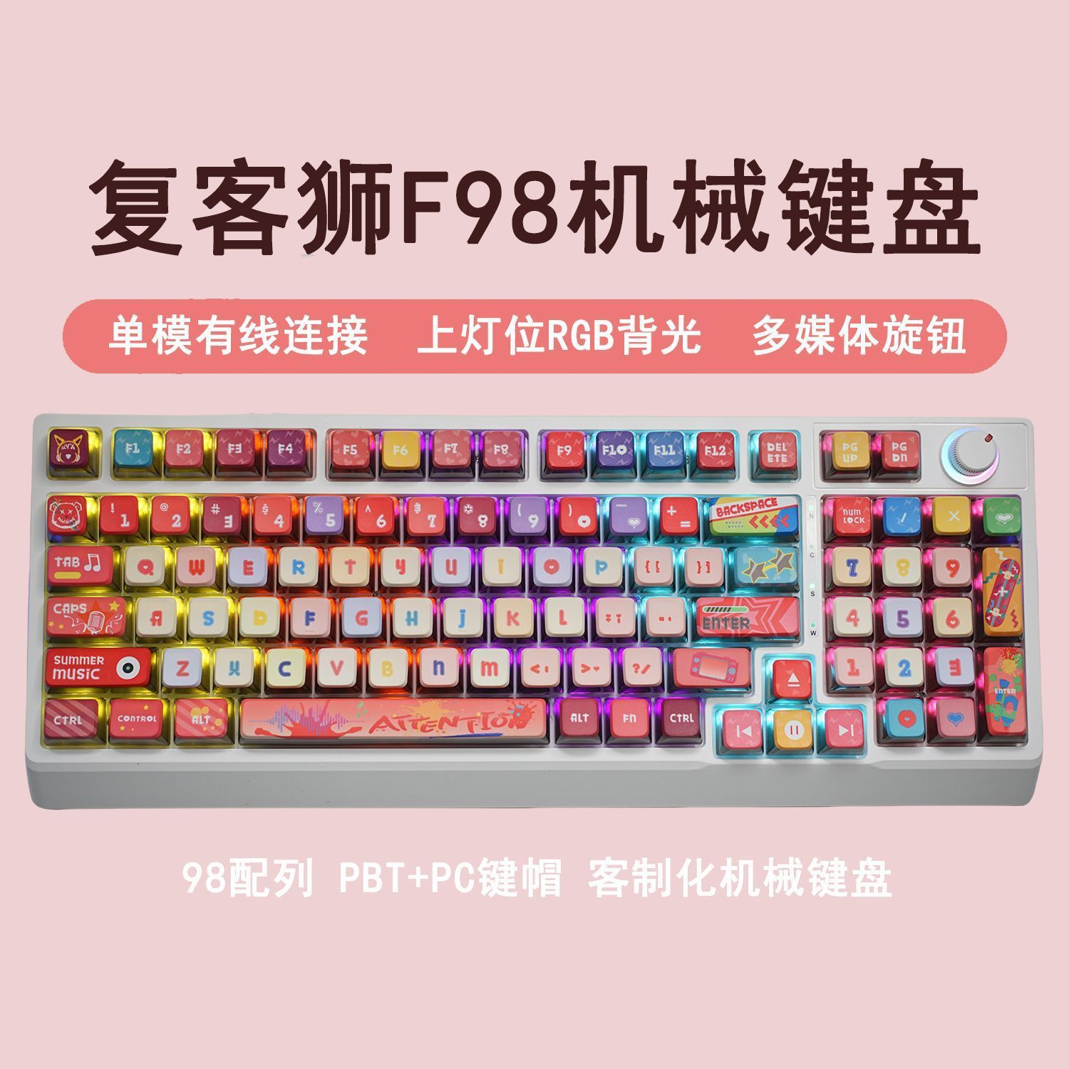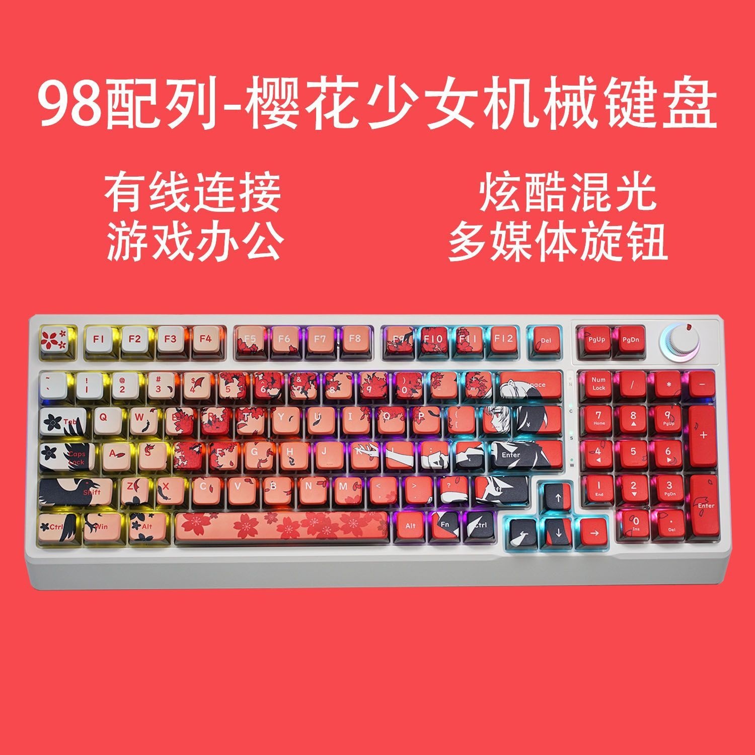 공장 재고 도매 98키 백라이트 유선 진정한 기계식 키보드 청축/적축 크로스보더 아마존 다색 혼합 조명