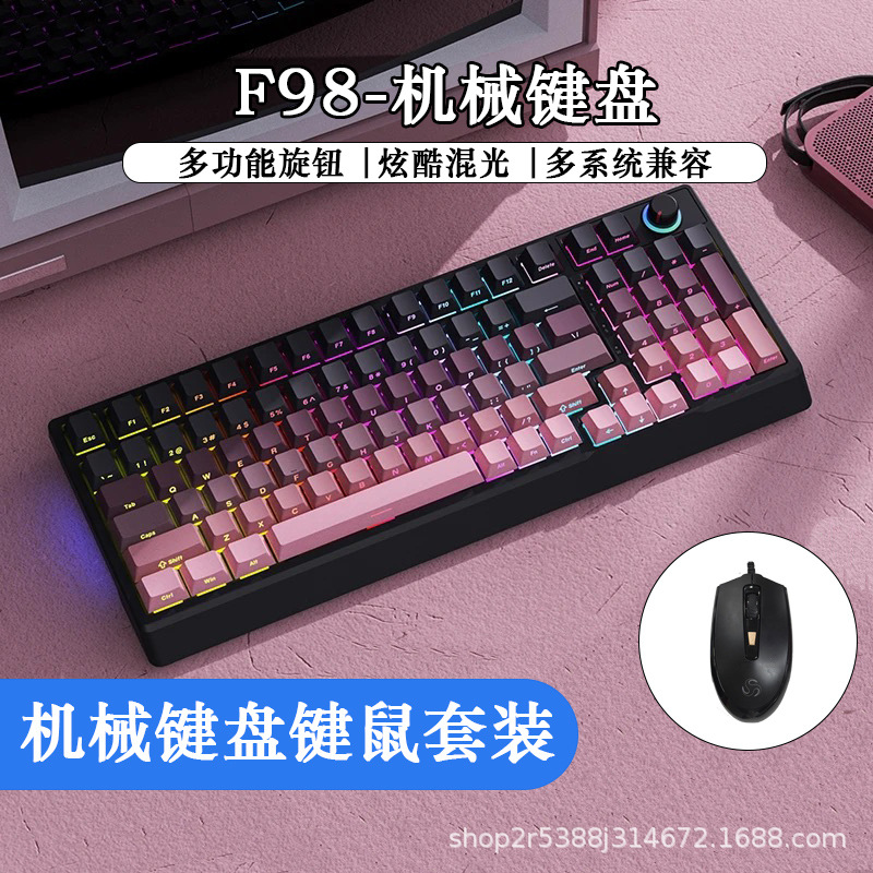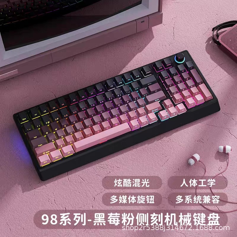 공장 재고 도매 98키 백라이트 유선 진정한 기계식 키보드 청축/적축 크로스보더 아마존 다색 혼합 조명스토어 가기