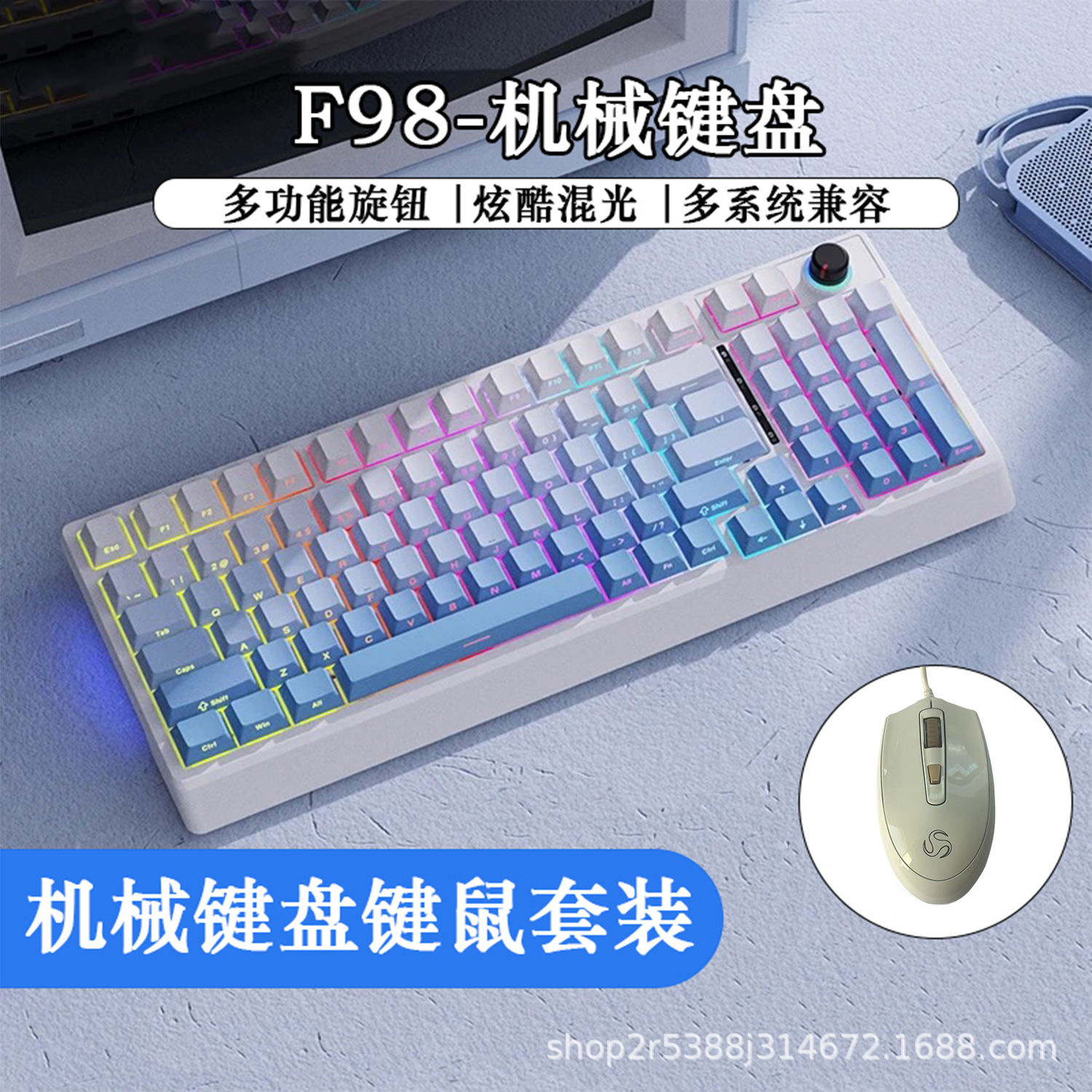 • 미스트 블루 화이트 키보드 레드 축 + e-스포츠 마우스