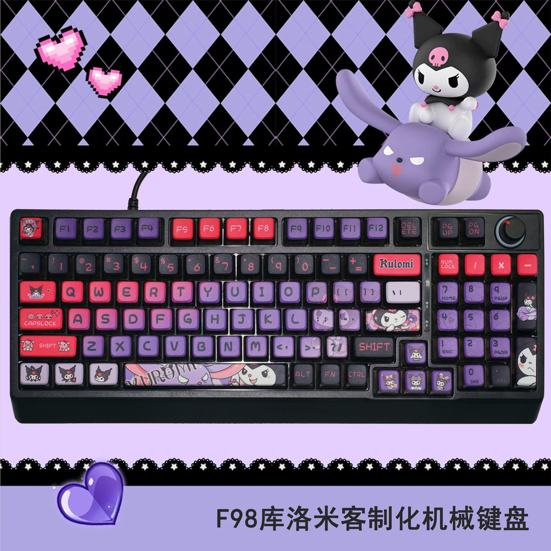 • 보라색 검정색 키보드 빨간색 축