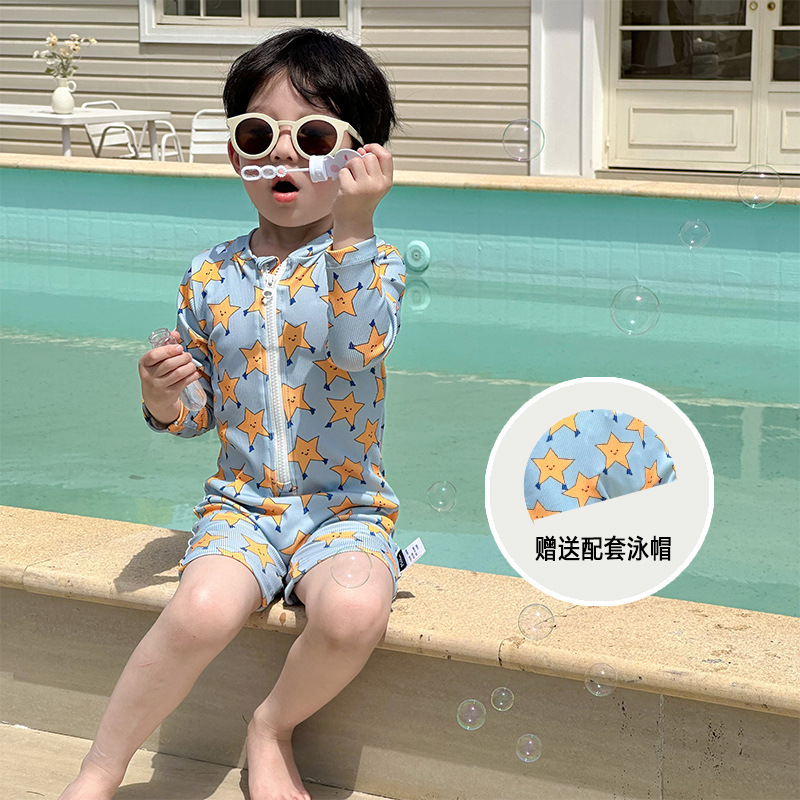 2025 새로운 어린이 수영복 소년 소녀 수영복 만화 다섯개 스타 비치 온천 휴가 빠른 건조 수영복
