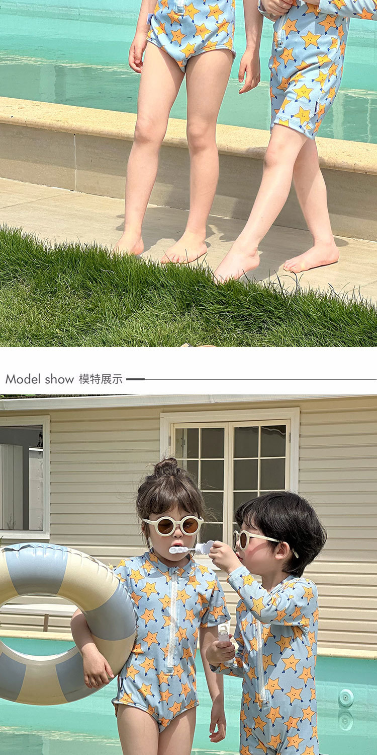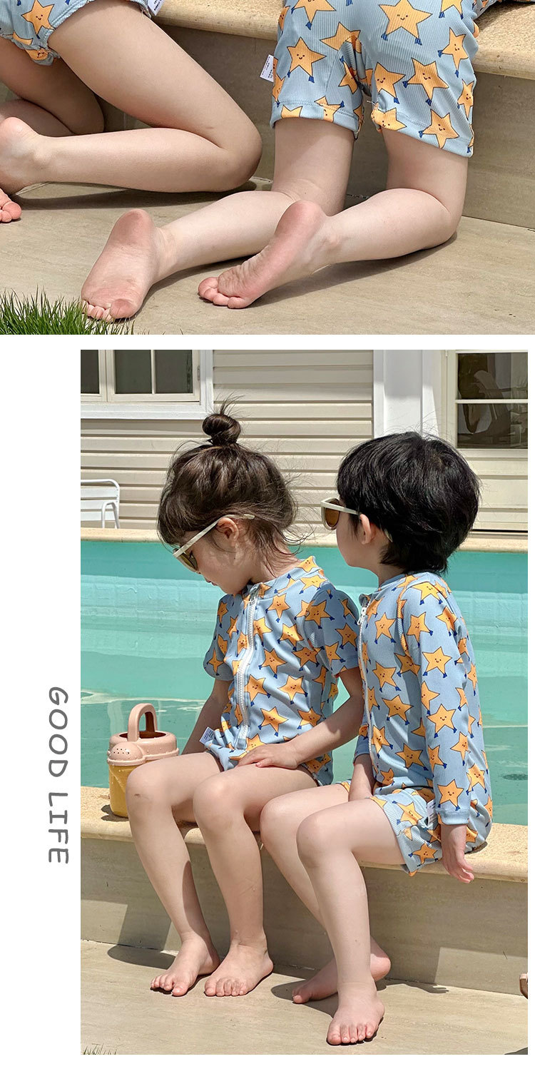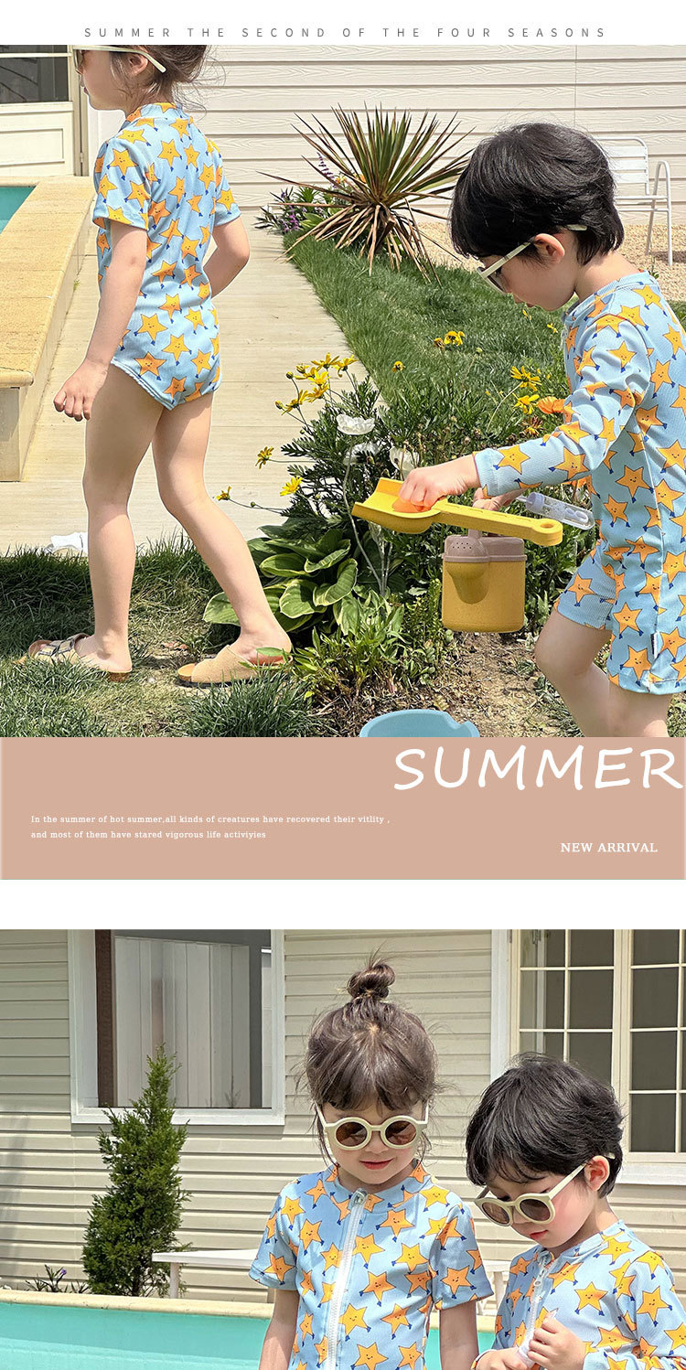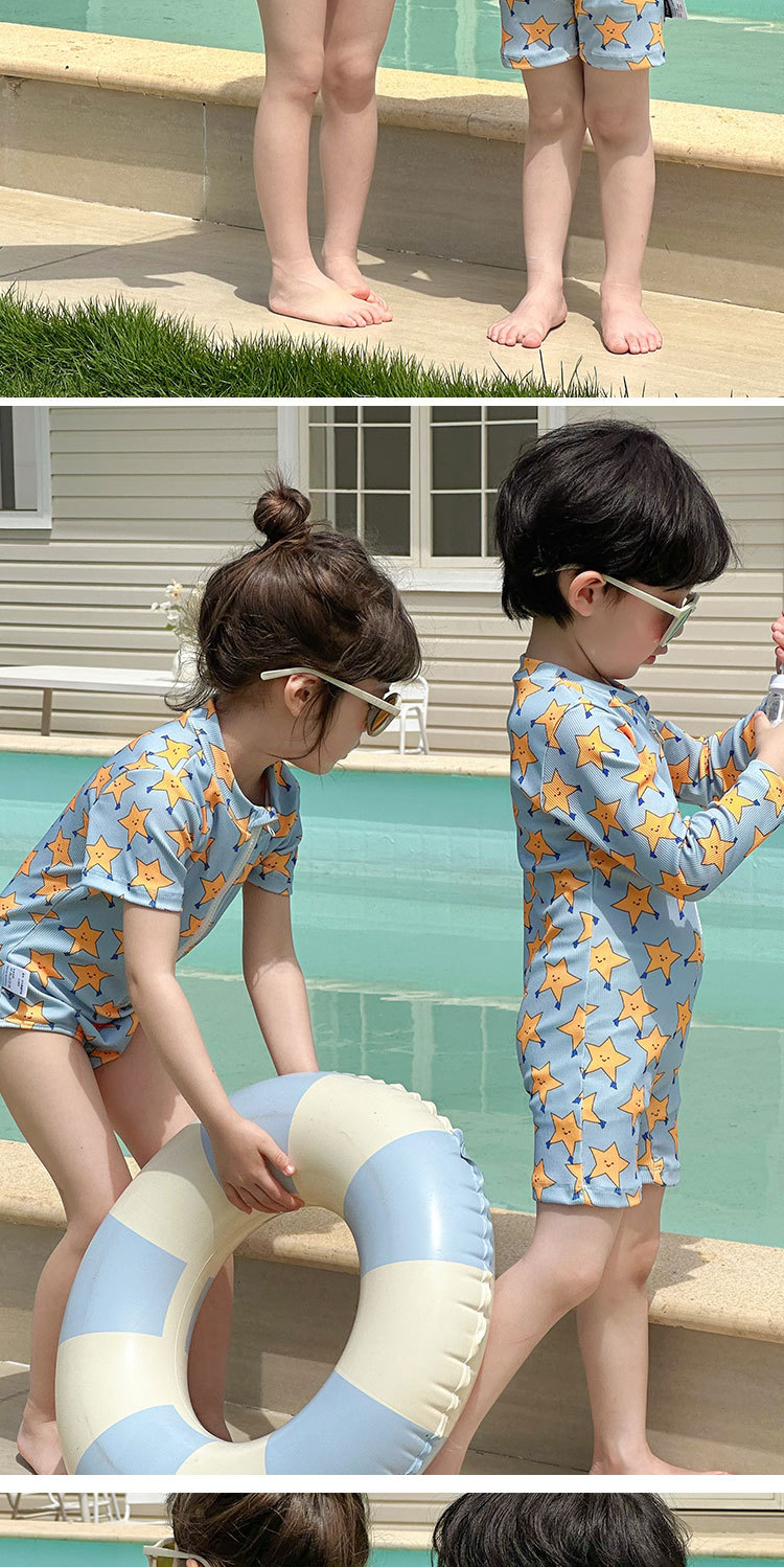 2025 새로운 어린이 수영복 소년 소녀 수영복 만화 다섯개 스타 비치 온천 휴가 빠른 건조 수영복스토어 가기