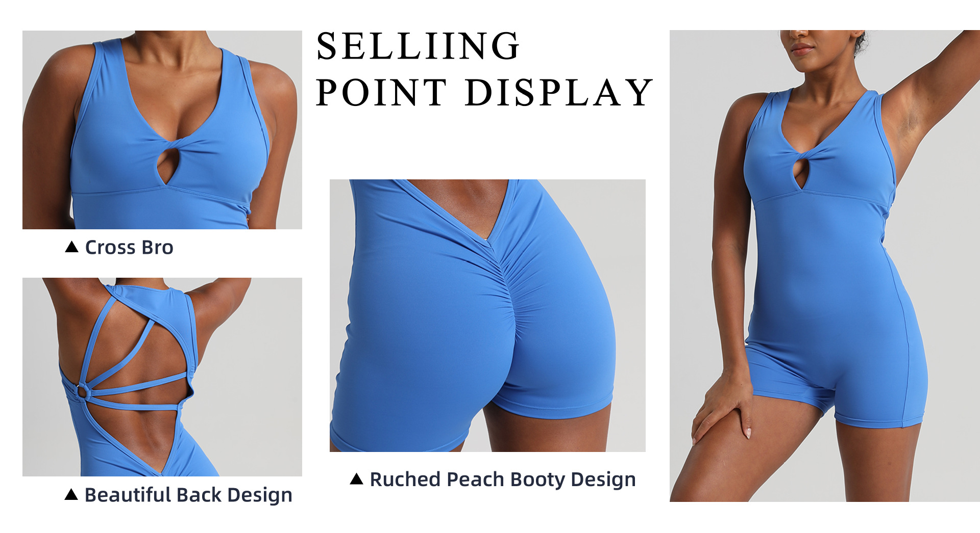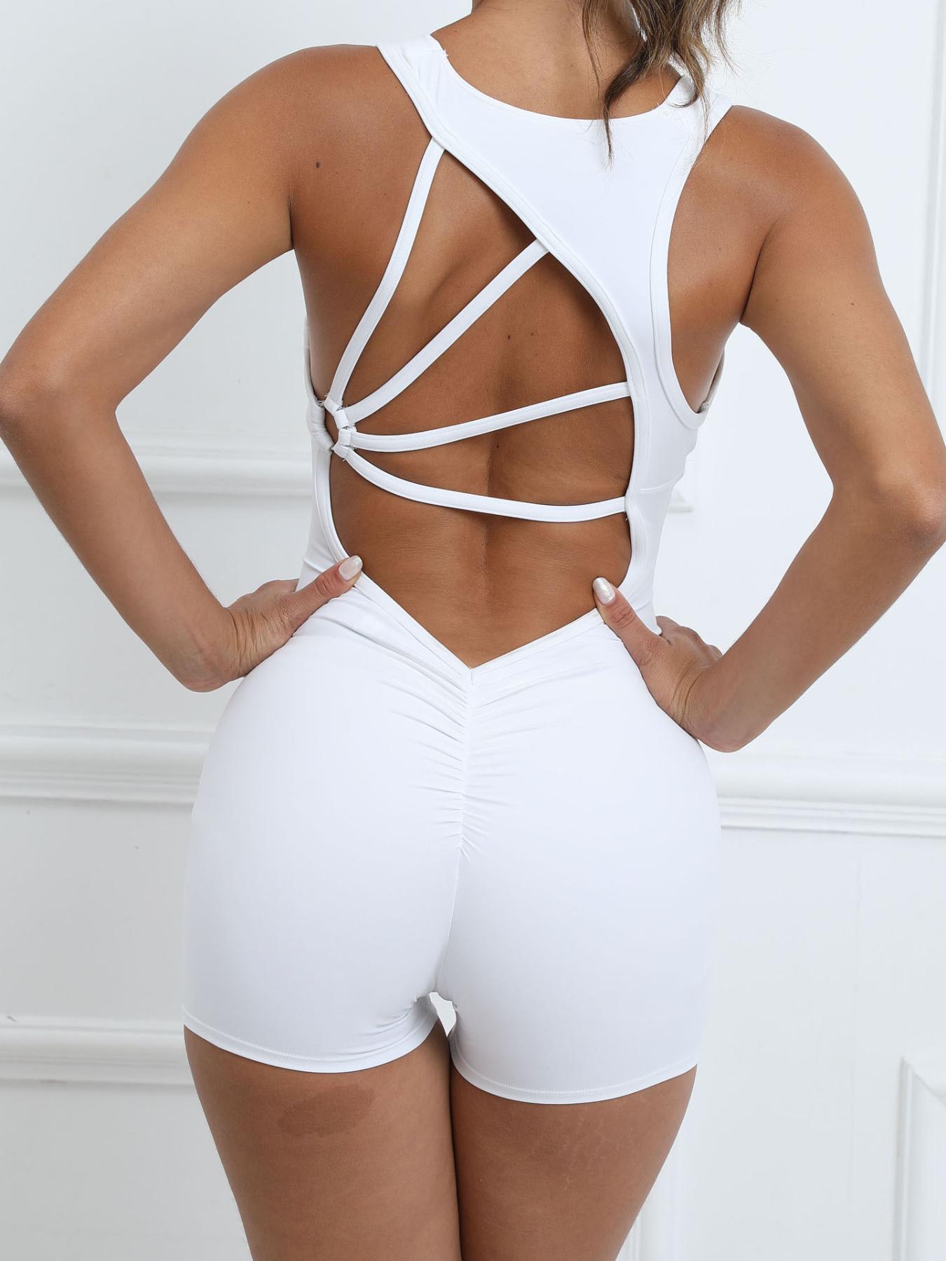 유럽과 미국의 봄과 여름 새로운 스타일 주름진 복숭아 엉덩이 점프 슈트 여성용 속건성 아름다운 등 피트니스 스포츠 요가 타이트 점프 슈트