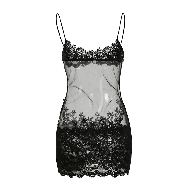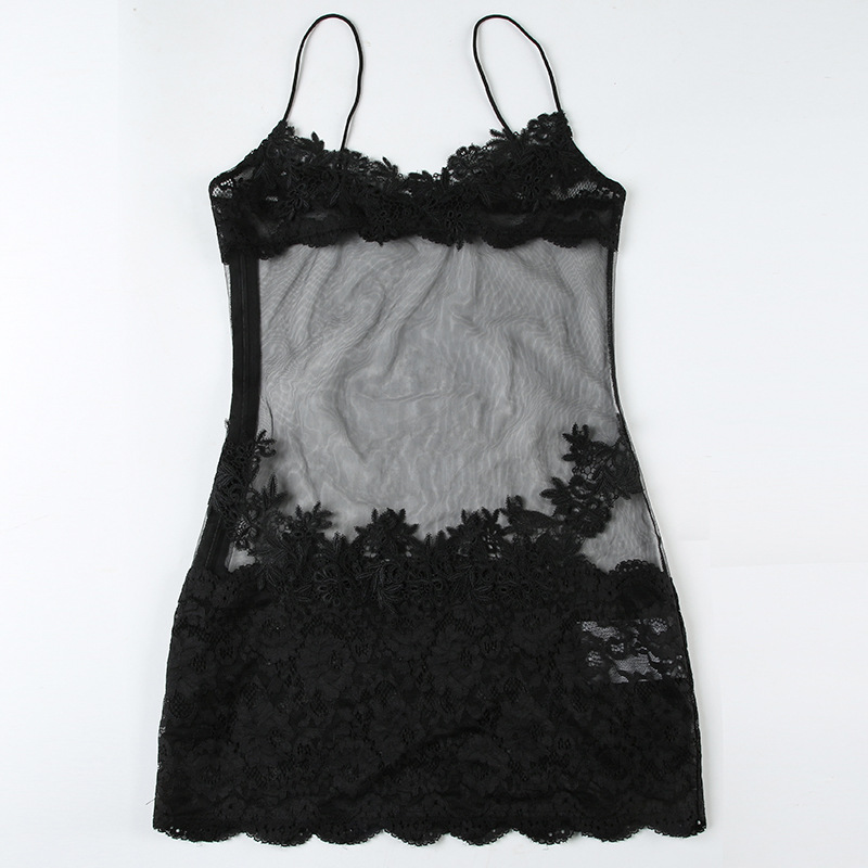 대외 무역 유럽과 미국 스타일의 여성용 메쉬 레이스 서스펜더 드레스 시스루 섹시한 잠옷 휴가 스타일 수영복 스커트스토어 가기