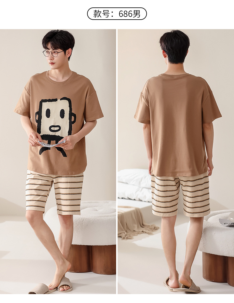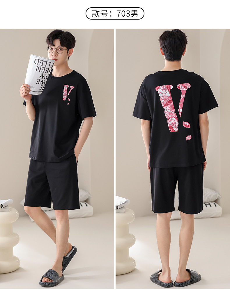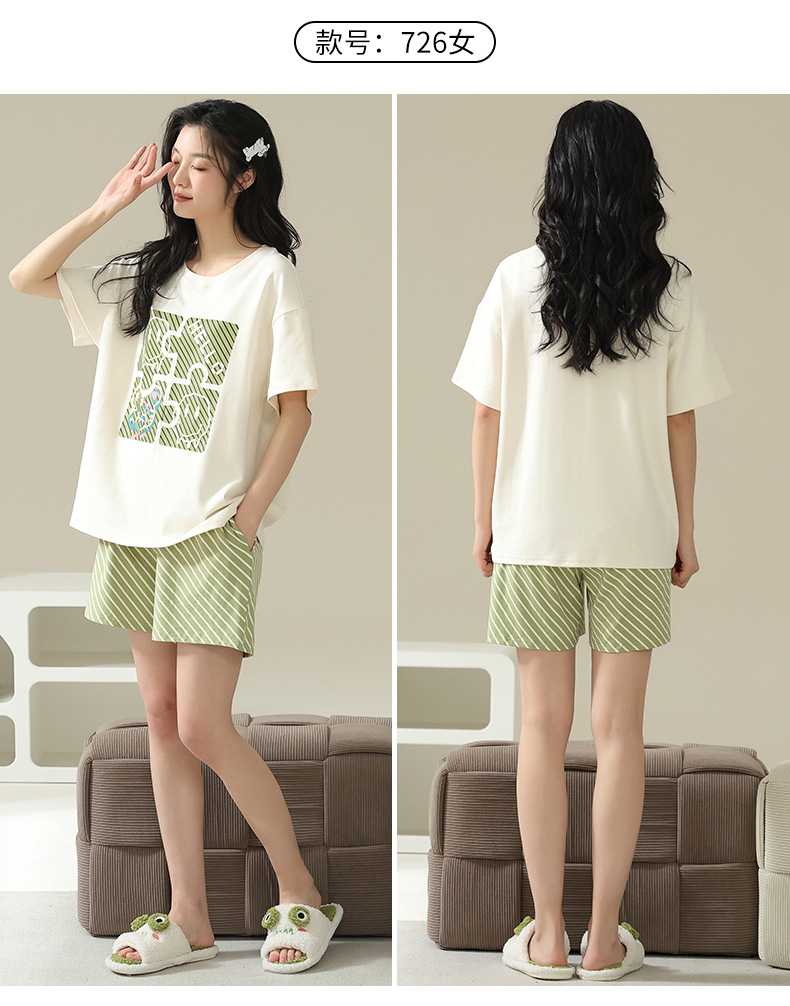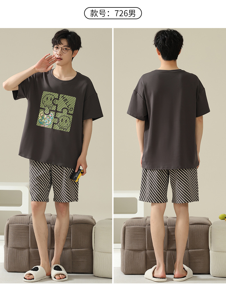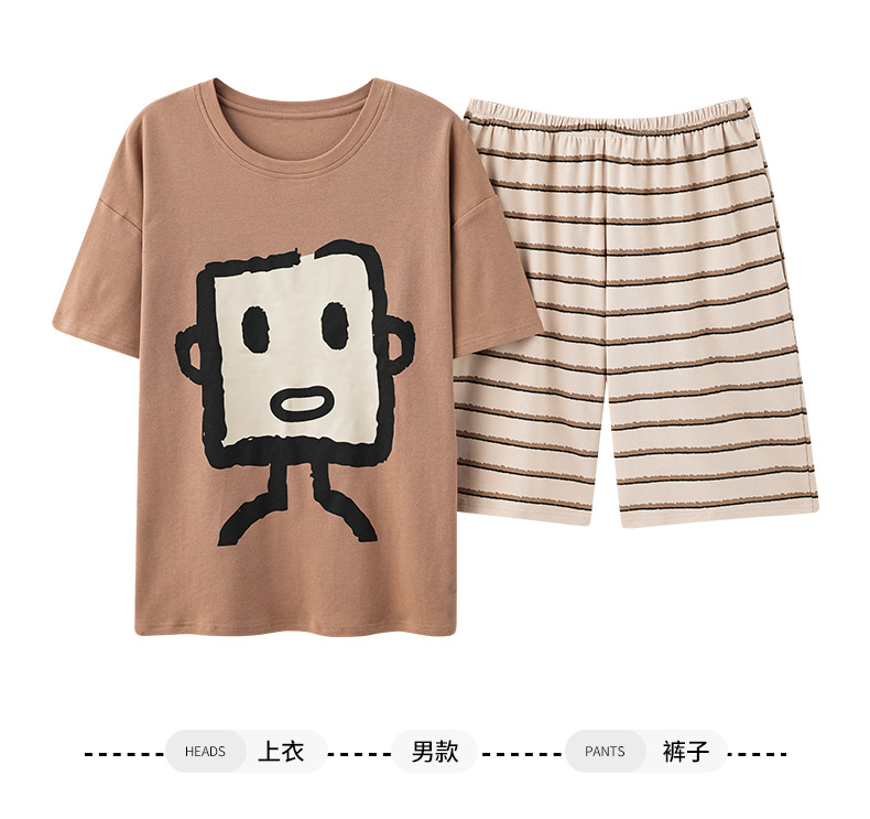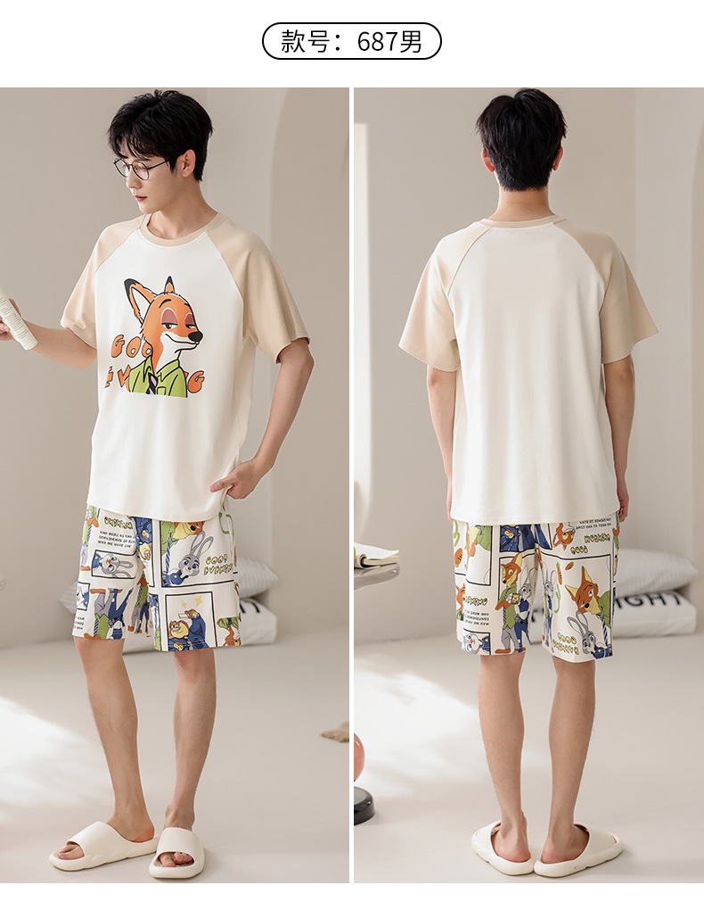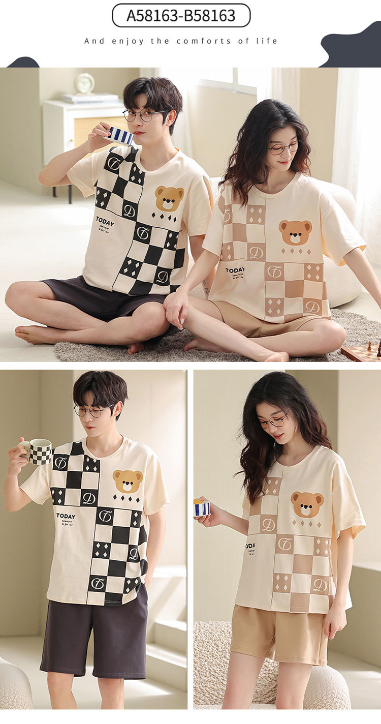 커플 잠옷 반팔 반바지 순면 남성 여름 얇은 여성 외부 착용 홈웨어 세트