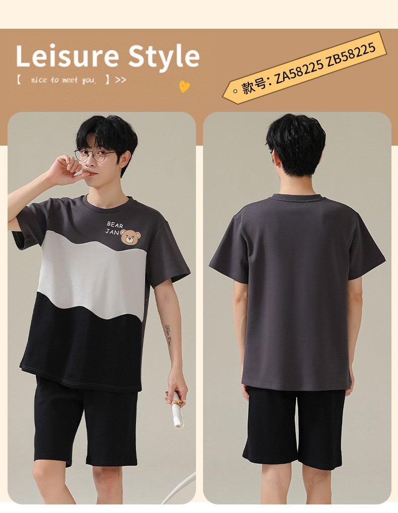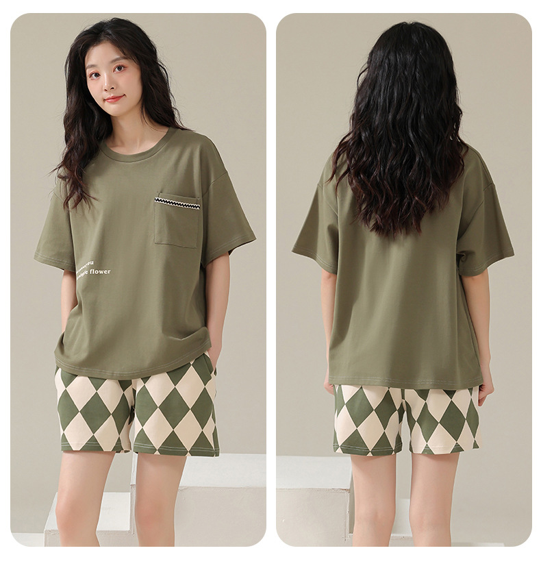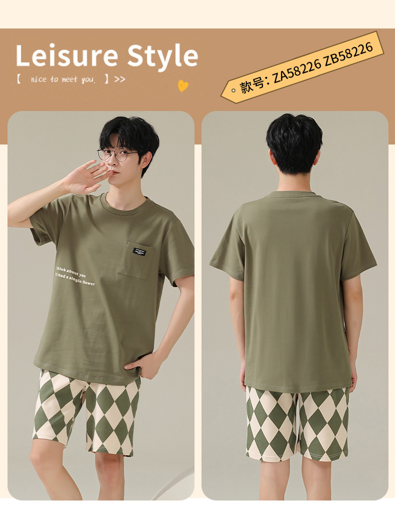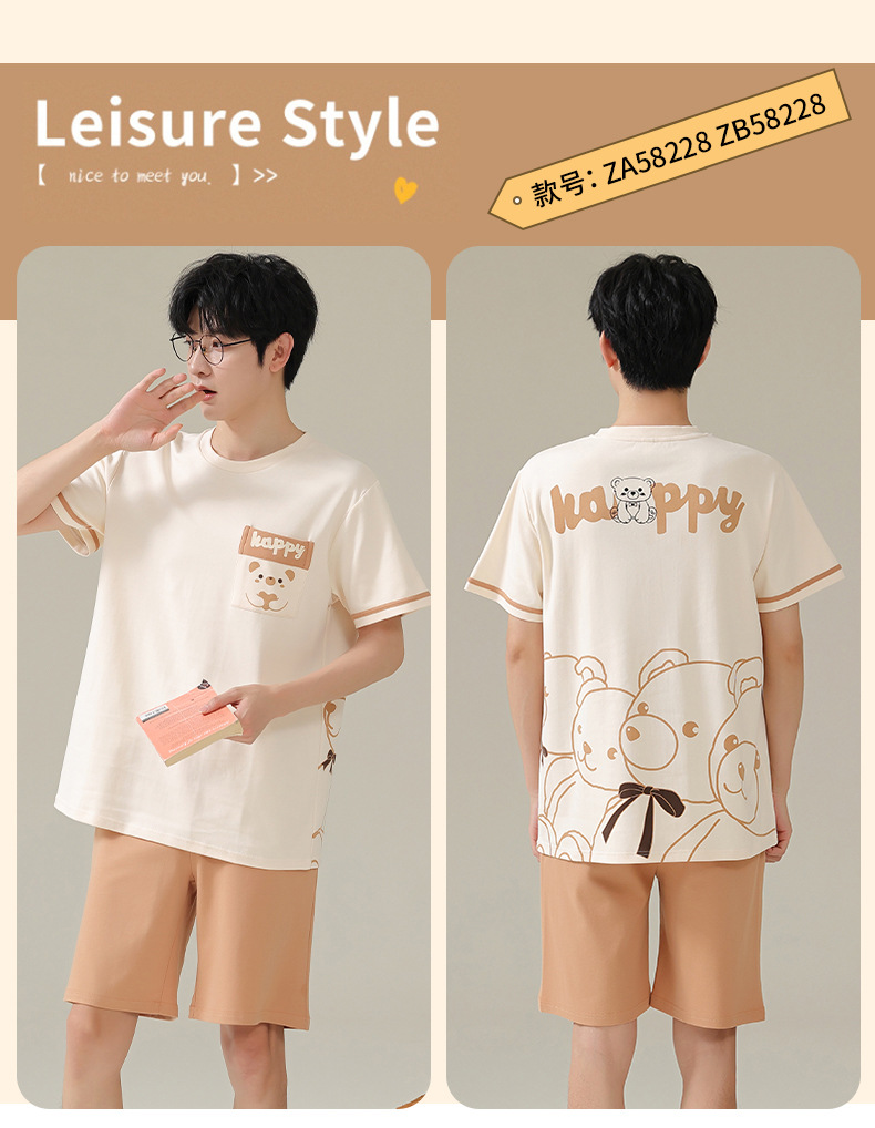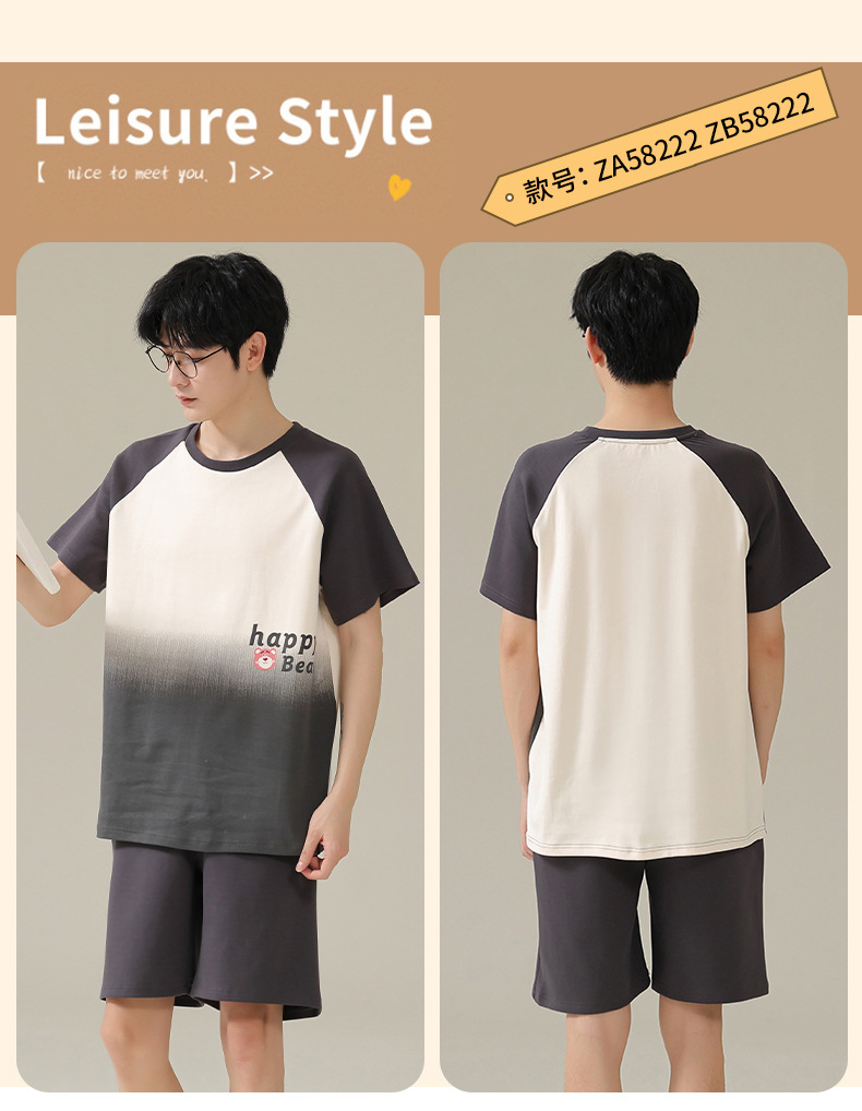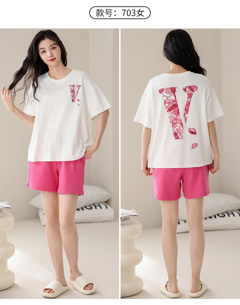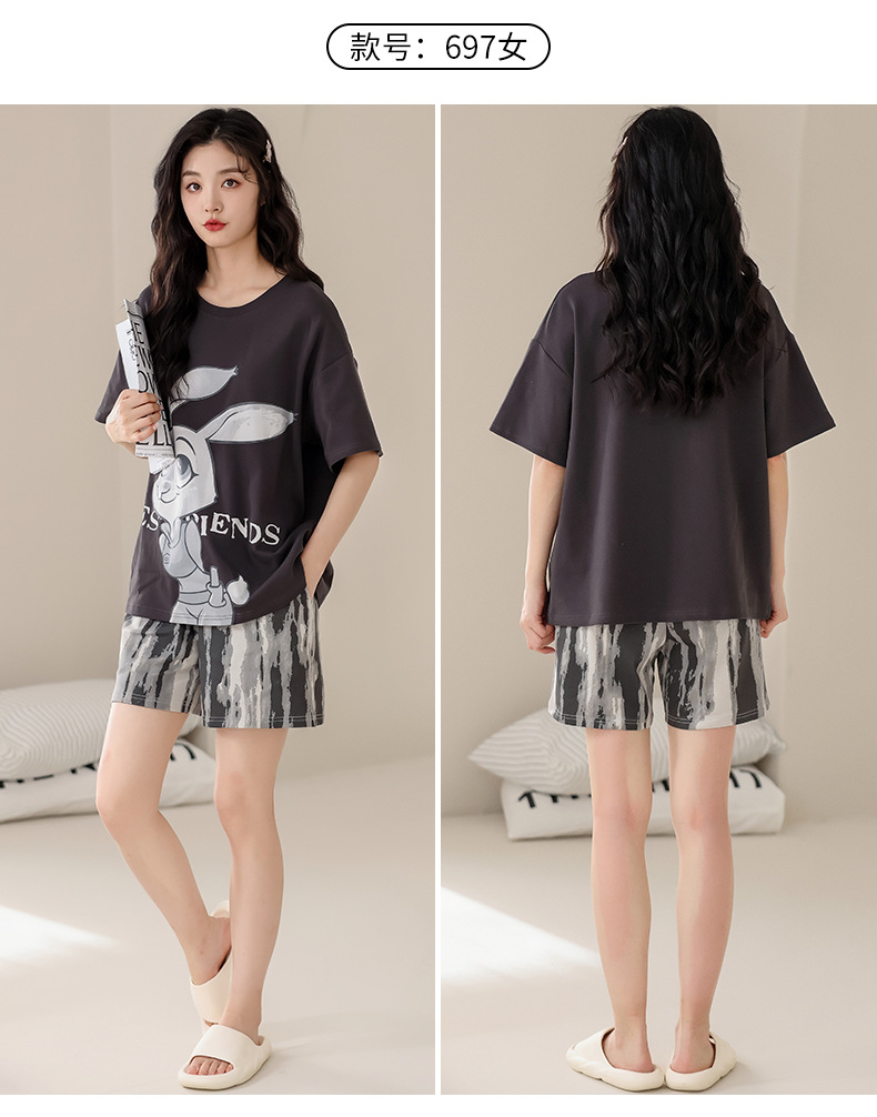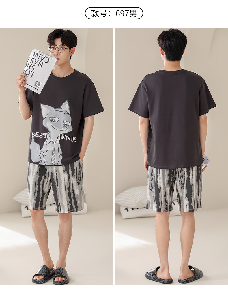 커플 잠옷 반팔 반바지 순면 남성 여름 얇은 여성 외부 착용 홈웨어 세트