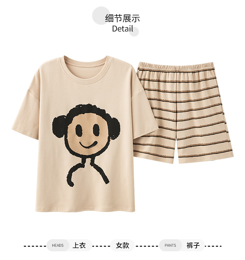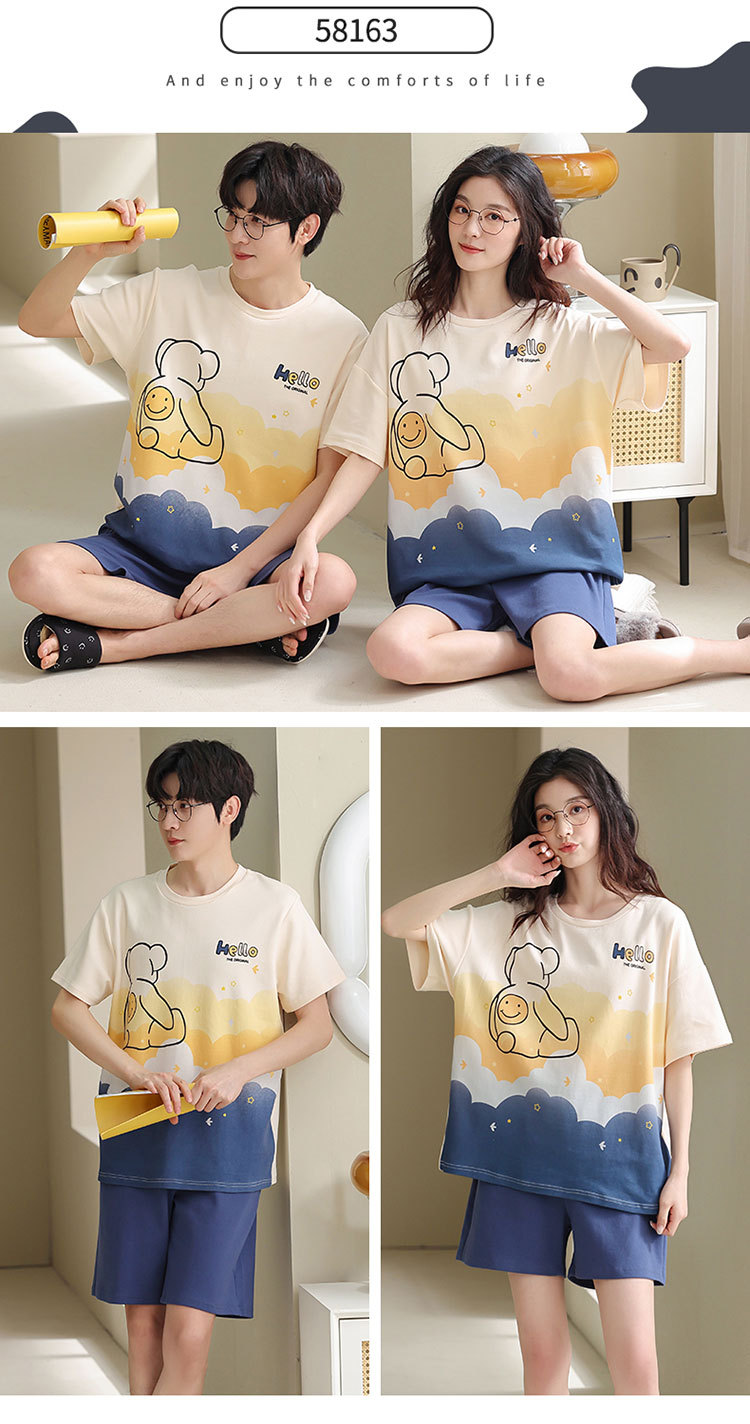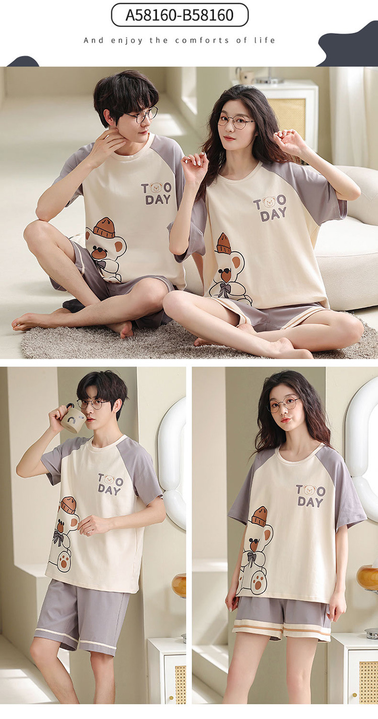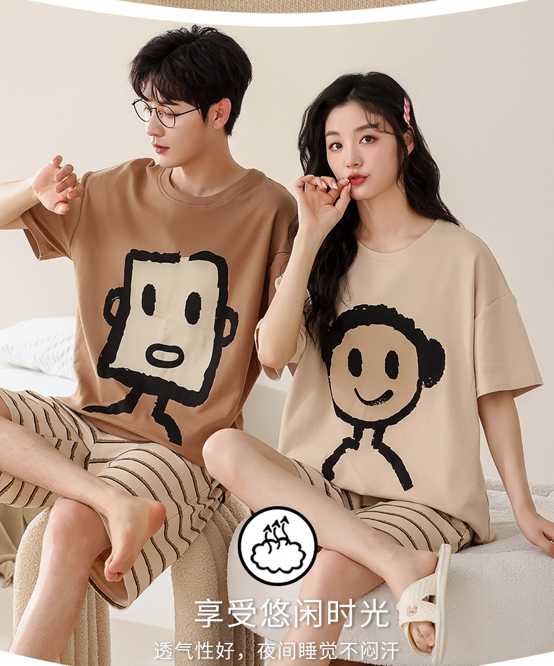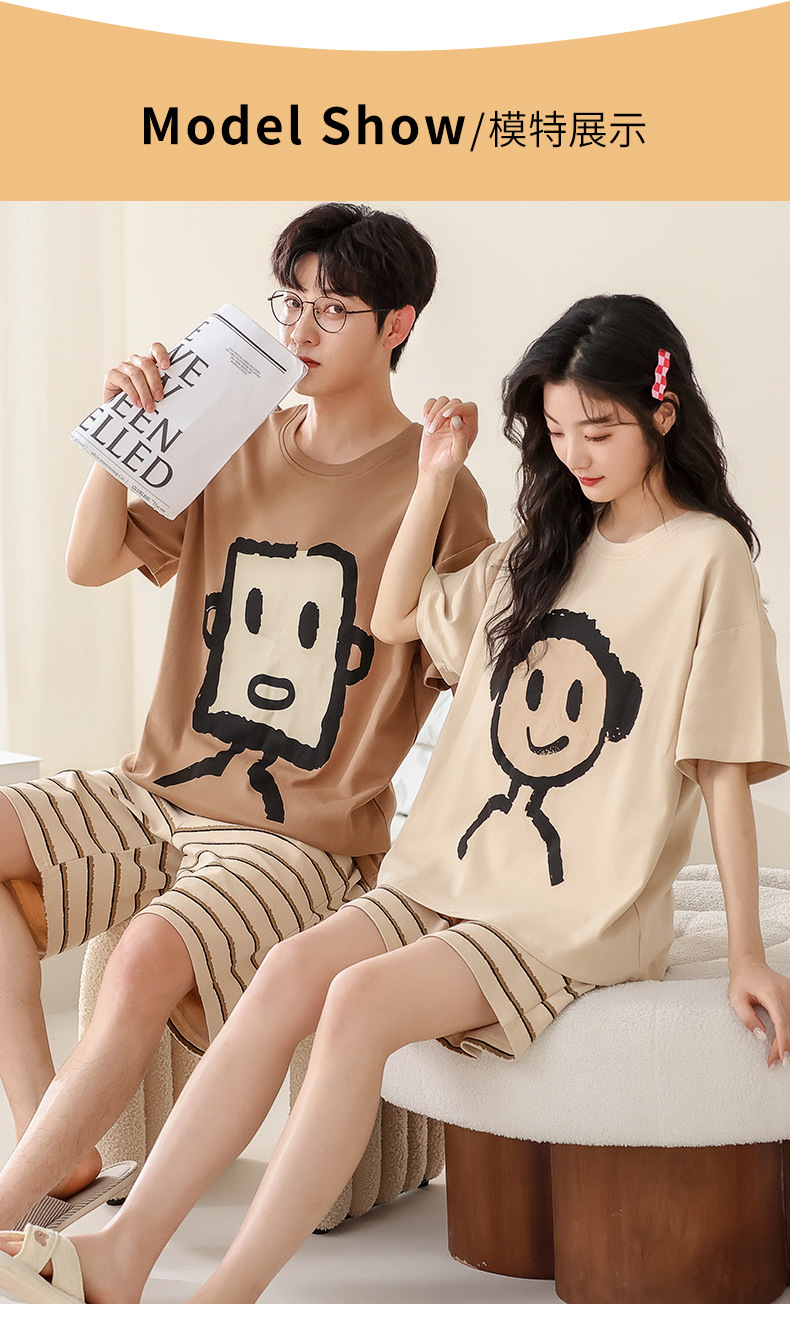 커플 잠옷 반팔 반바지 순면 남성 여름 얇은 여성 외부 착용 홈웨어 세트스토어 가기