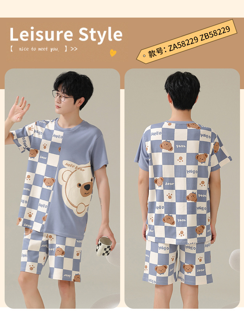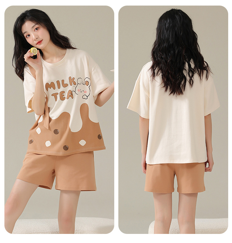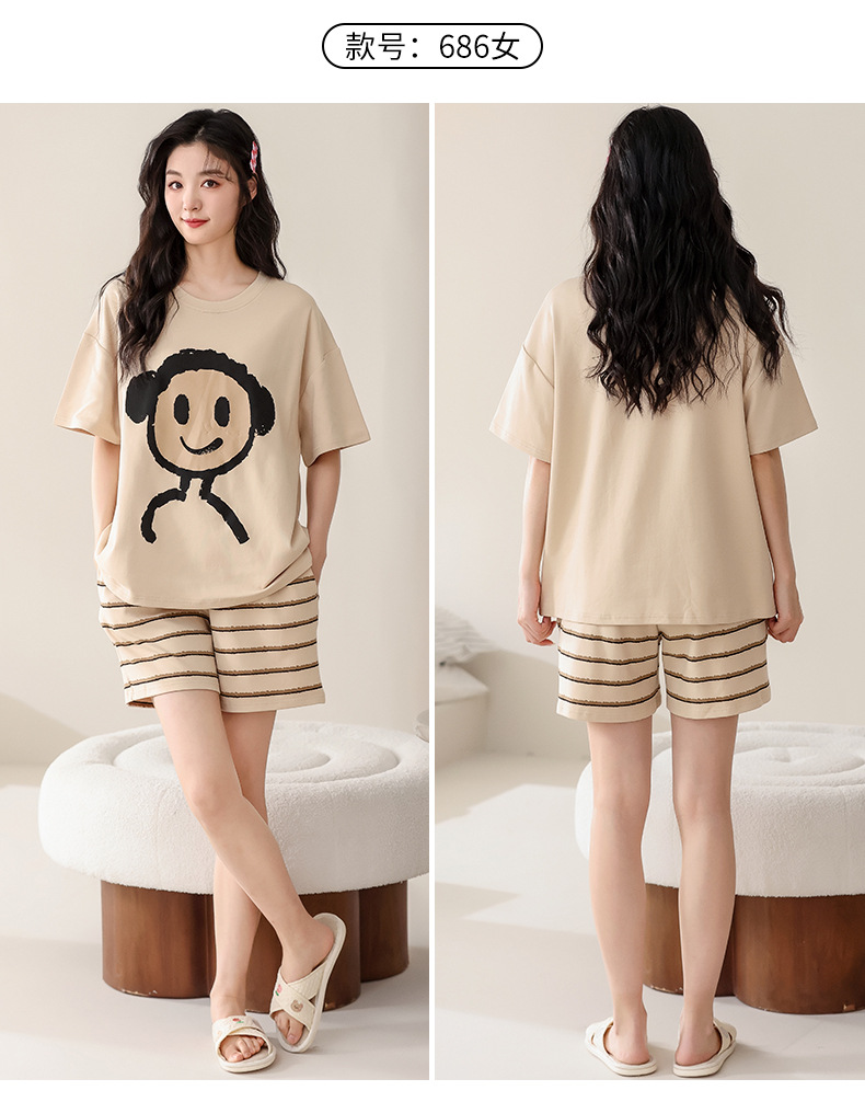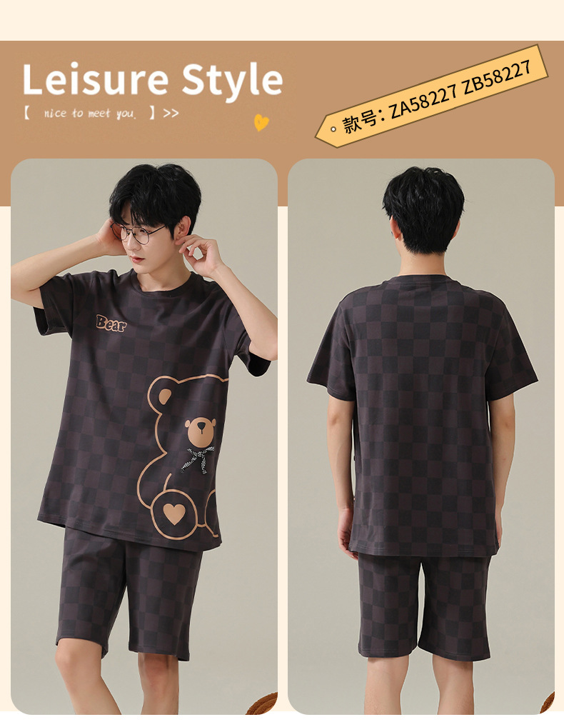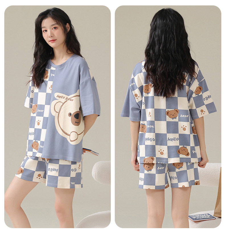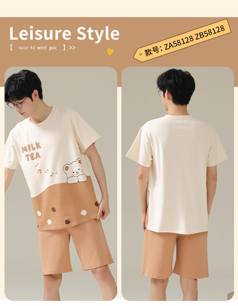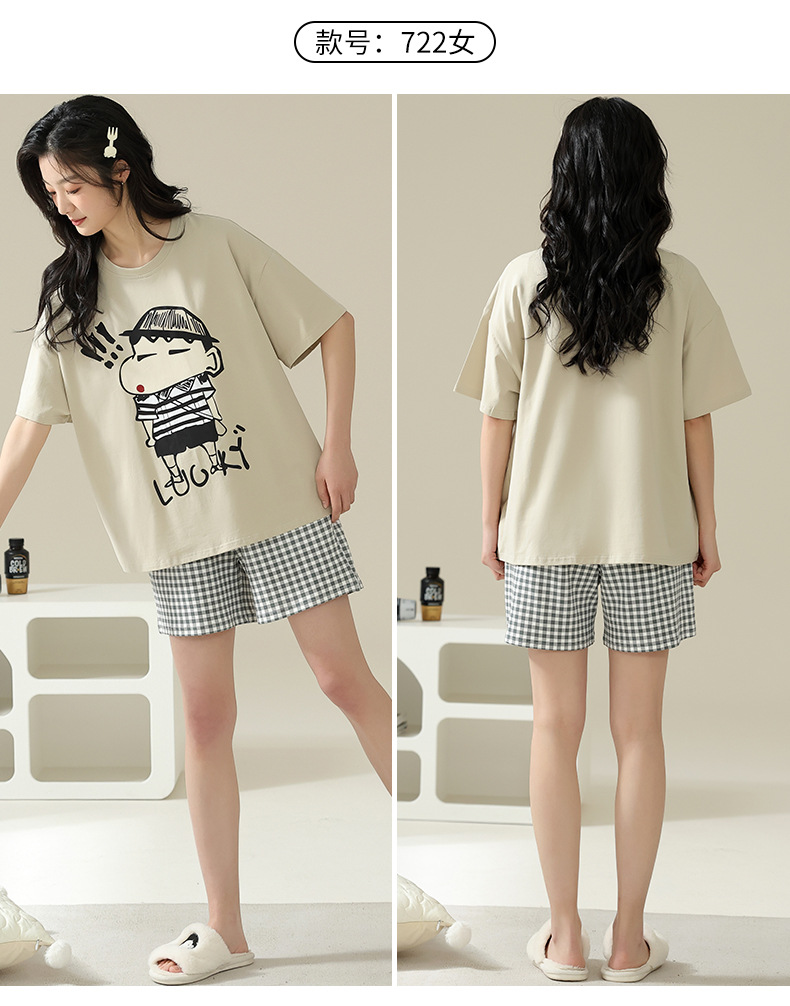 커플 잠옷 반팔 반바지 순면 남성 여름 얇은 여성 외부 착용 홈웨어 세트스토어 가기