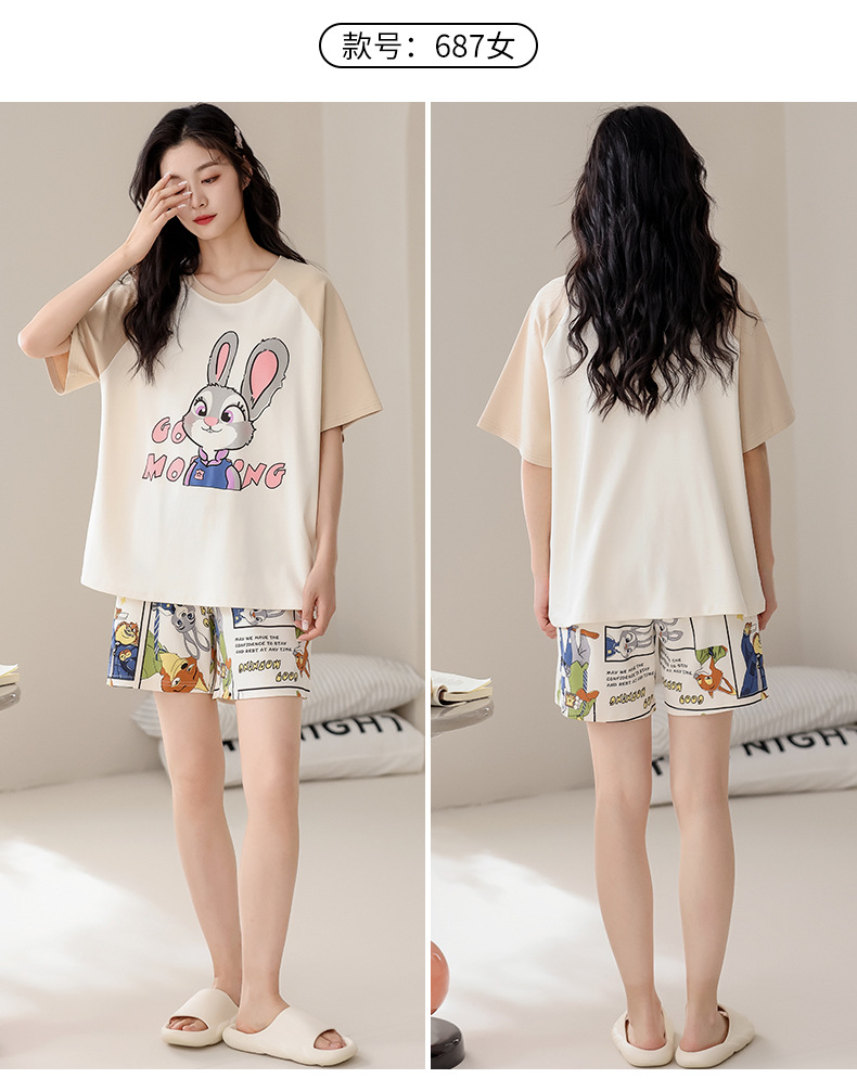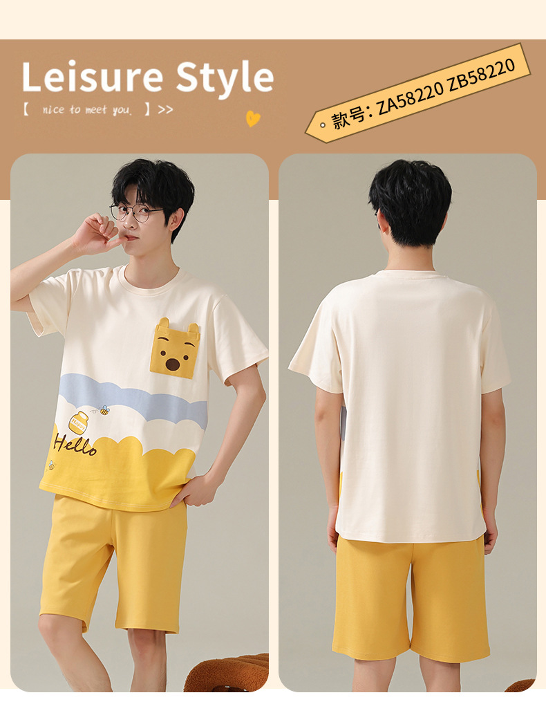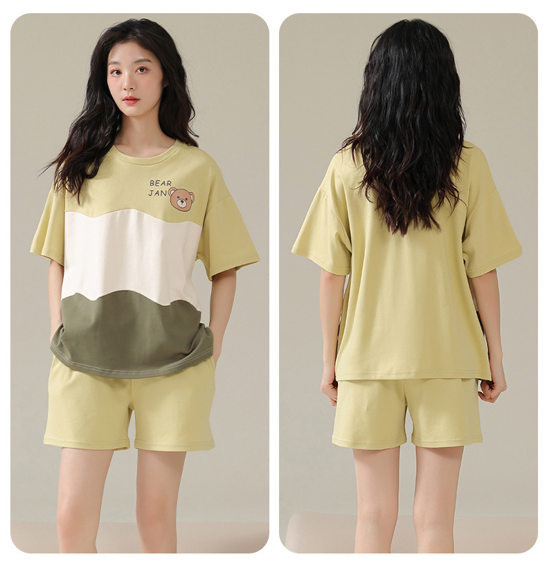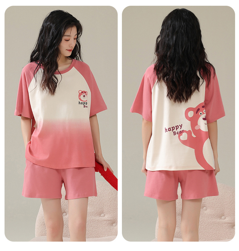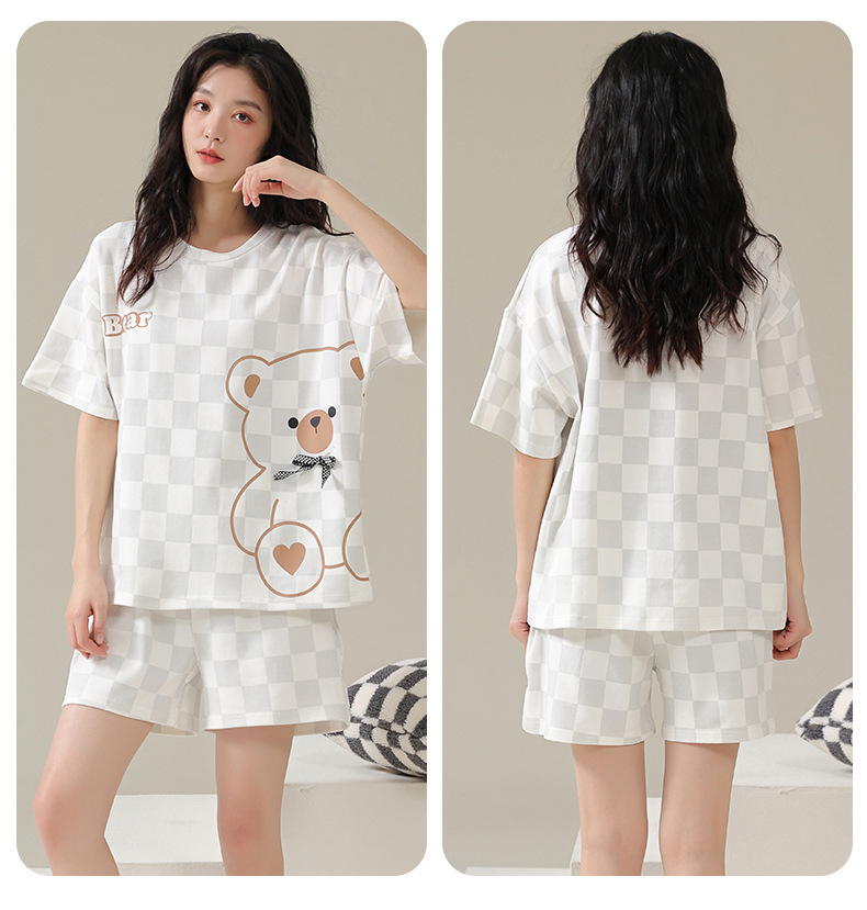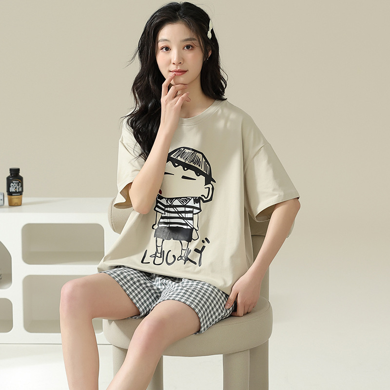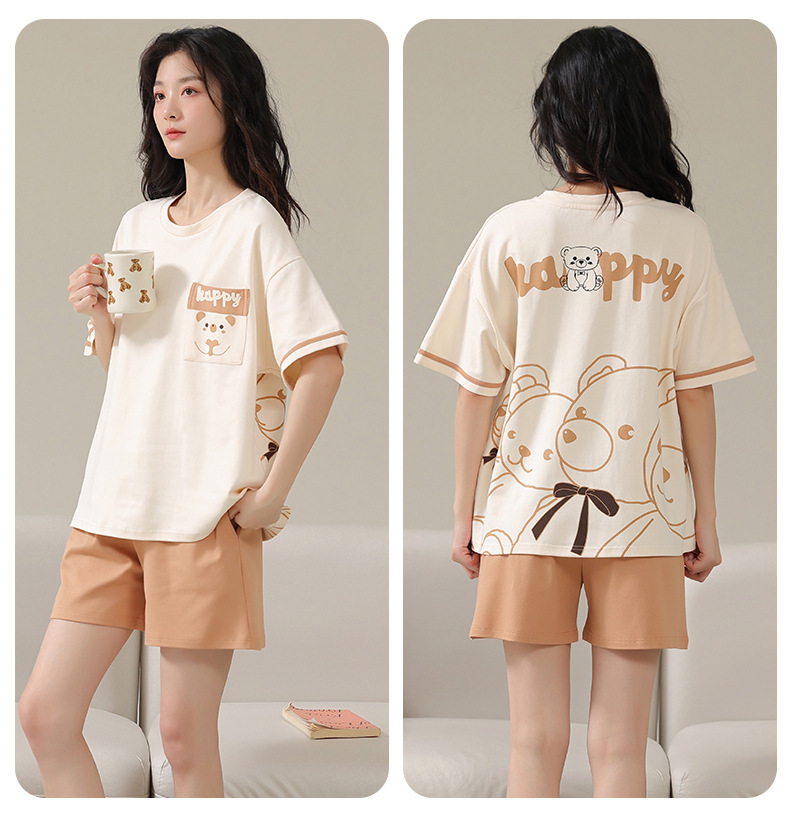 커플 잠옷 반팔 반바지 순면 남성 여름 얇은 여성 외부 착용 홈웨어 세트스토어 가기