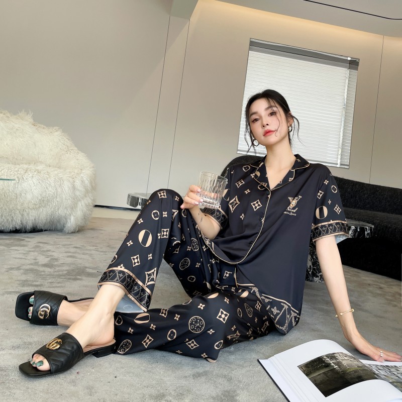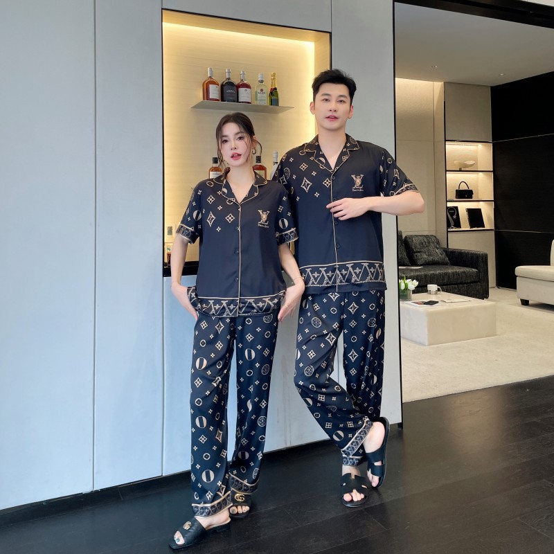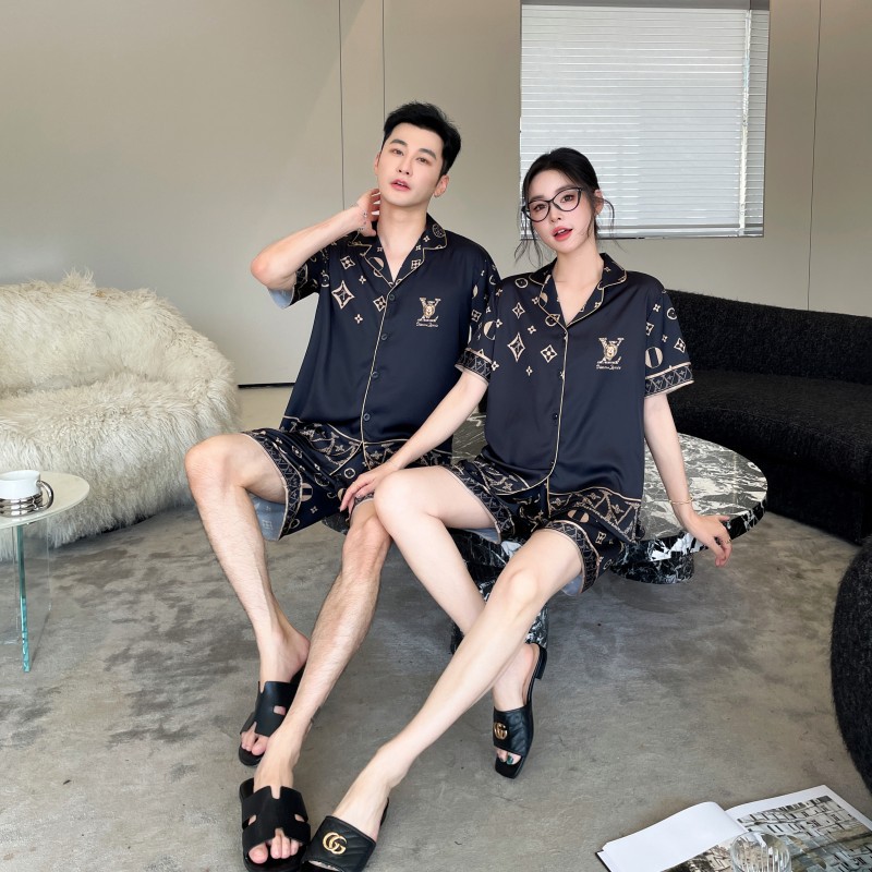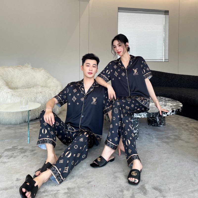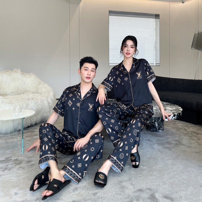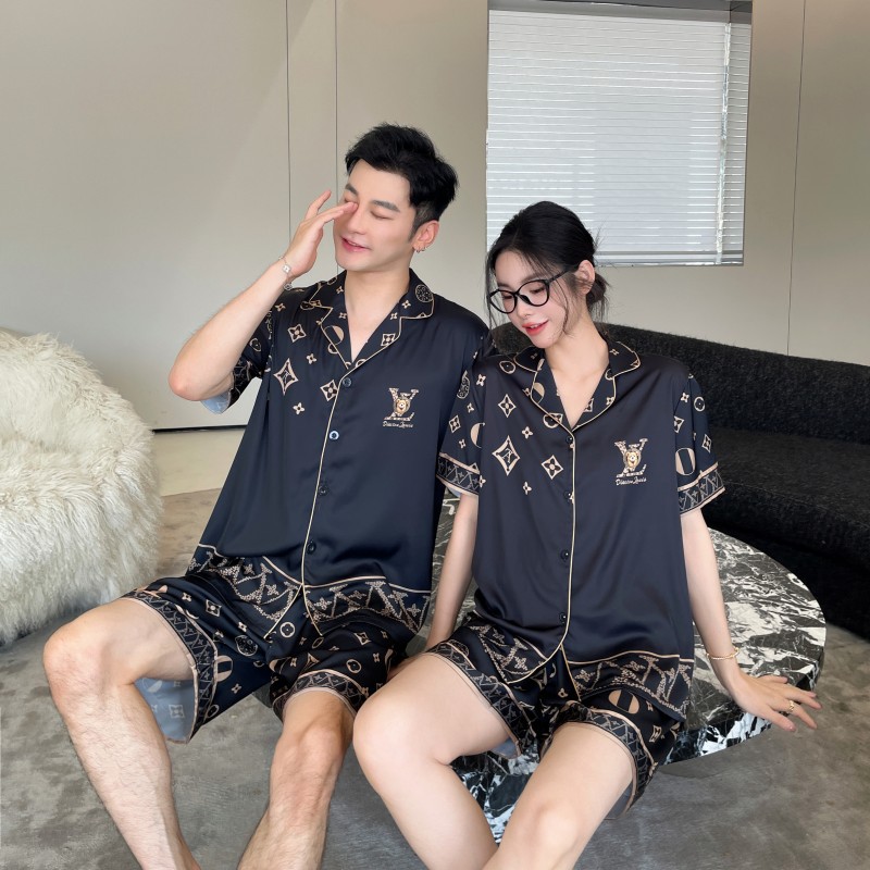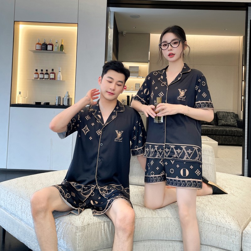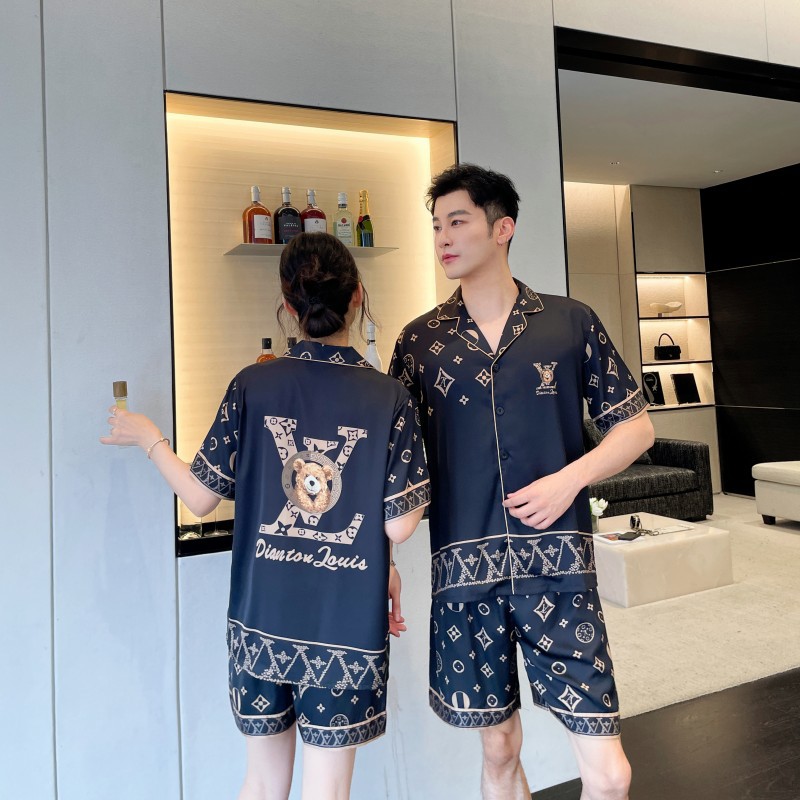 커플 스타일 잠옷, 새로운 고급 만화 곰, 사계절 얼음 실크 가정복, 여성용 남성용 정장