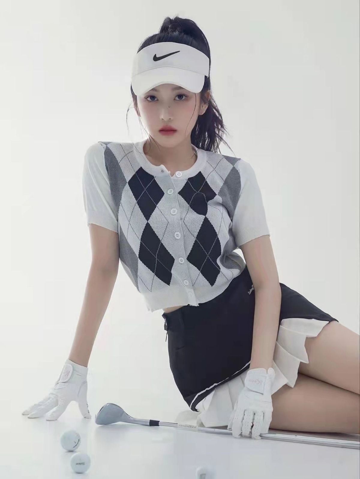 여성용 한국식 골프 의류 정장 여름 기질 반팔 탑 골프 플리츠 스커트 여성용 블랙스토어 가기