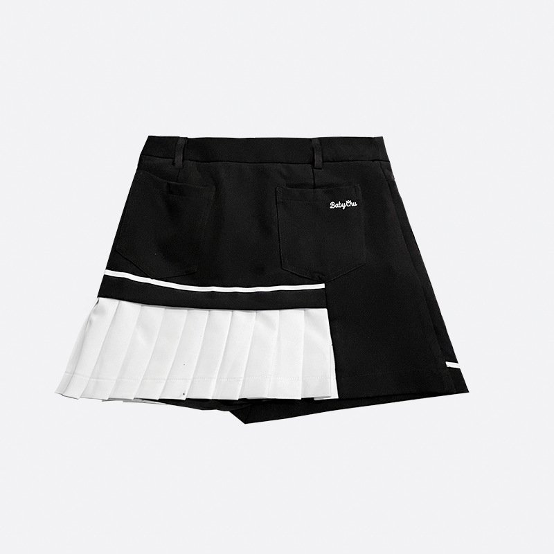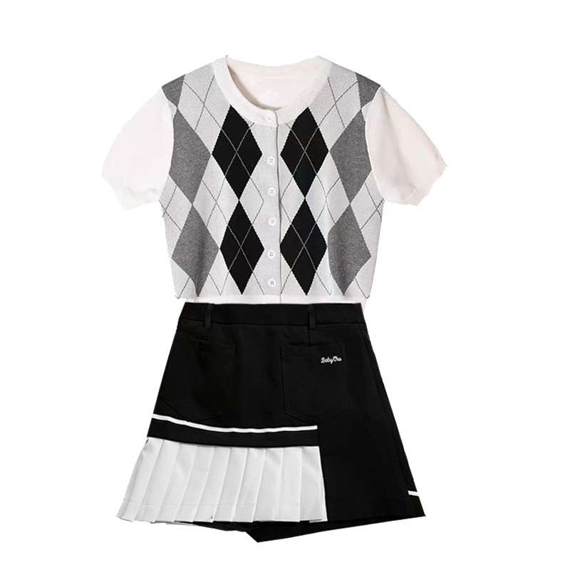 여성용 한국식 골프 의류 정장 여름 기질 반팔 탑 골프 플리츠 스커트 여성용 블랙