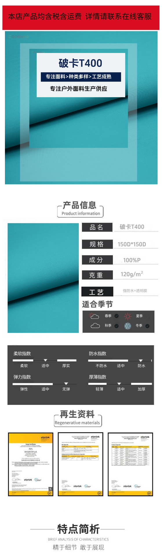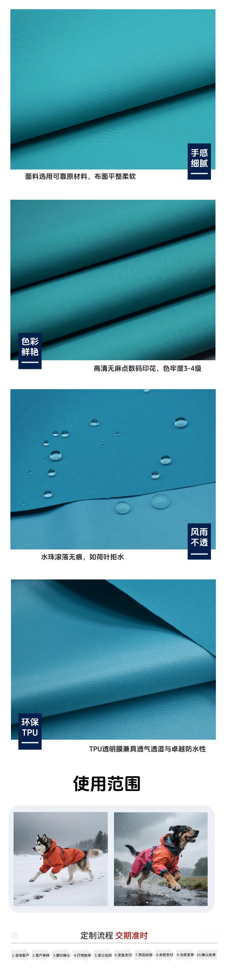 스팟 폴리에스터 브로큰 카드 T400 강력 방수 및 방풍 TPU 투명 필름 개 비옷 두꺼운 재킷 원단
