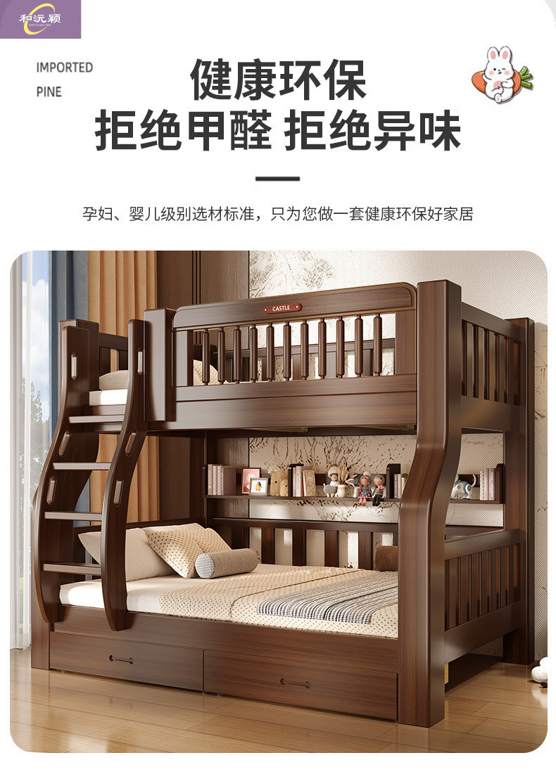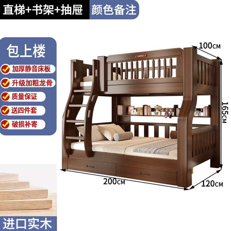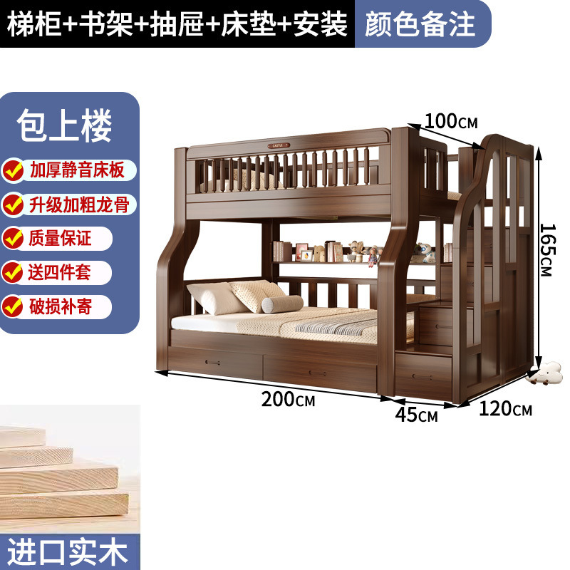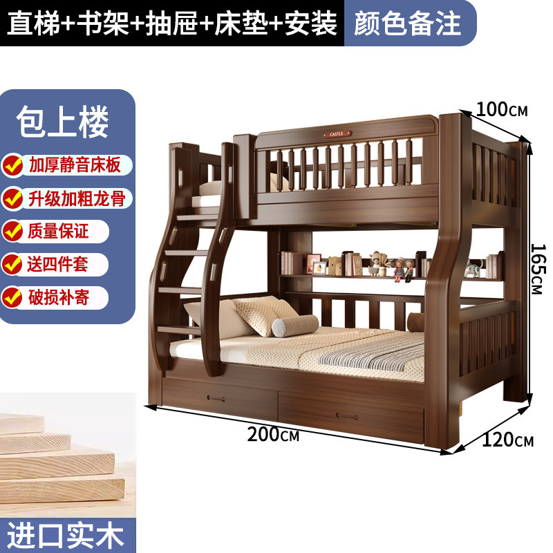 솔리드 우드 다기능 하이 로우 침대 벙크 침대 침대 작은 아파트 침대 어린이 침대 작은 아파트 자매와 형제를위한 침대스토어 가기
