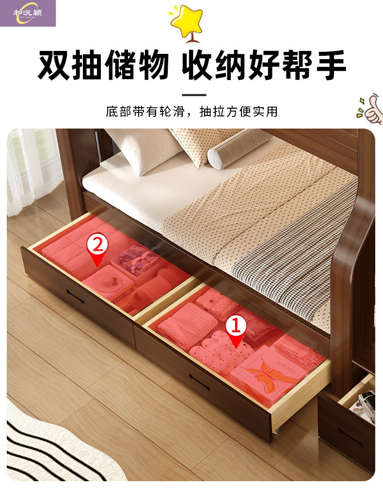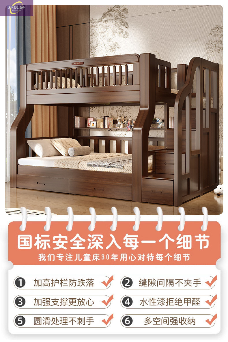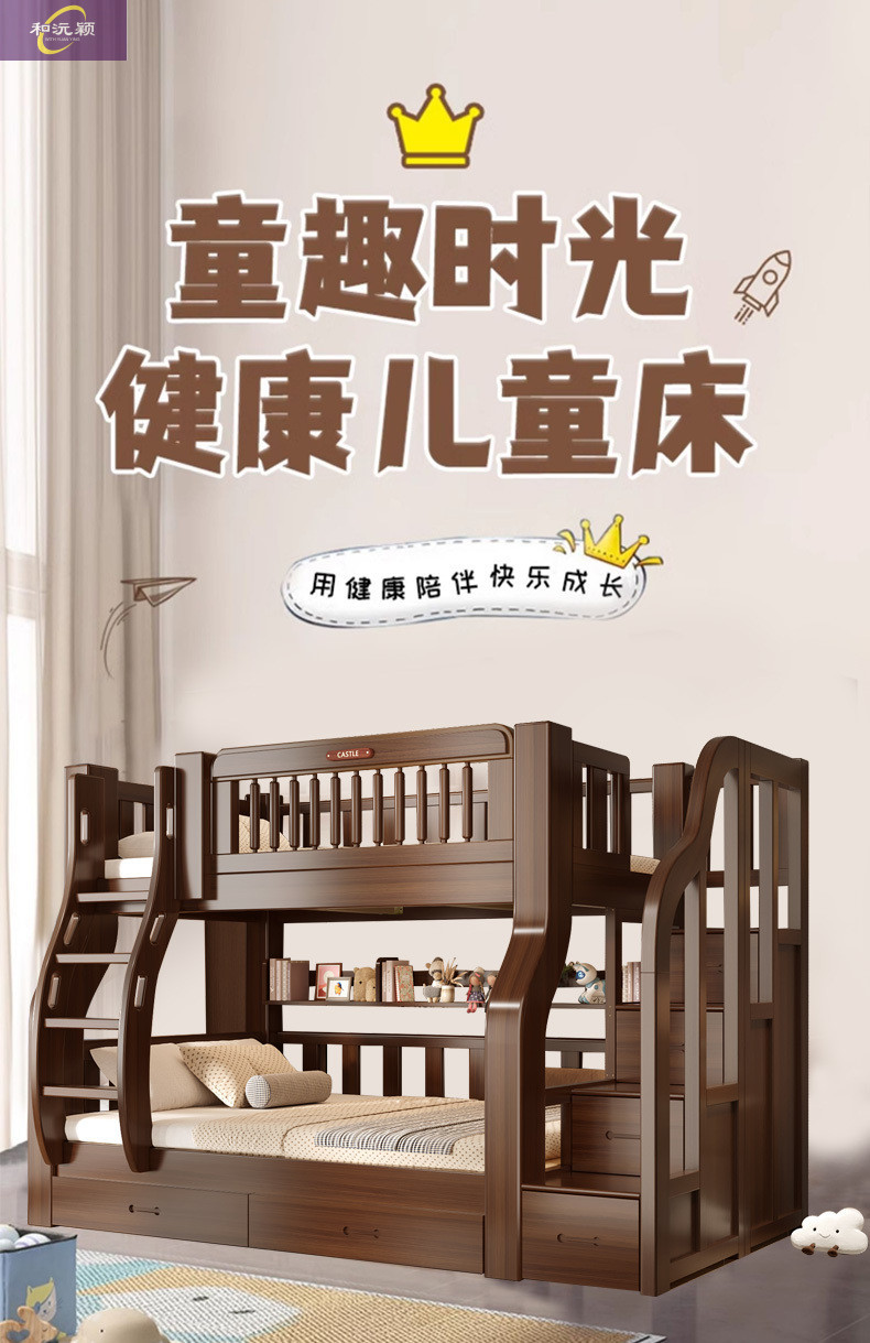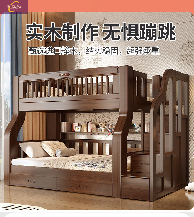 솔리드 우드 다기능 하이 로우 침대 벙크 침대 침대 작은 아파트 침대 어린이 침대 작은 아파트 자매와 형제를위한 침대스토어 가기