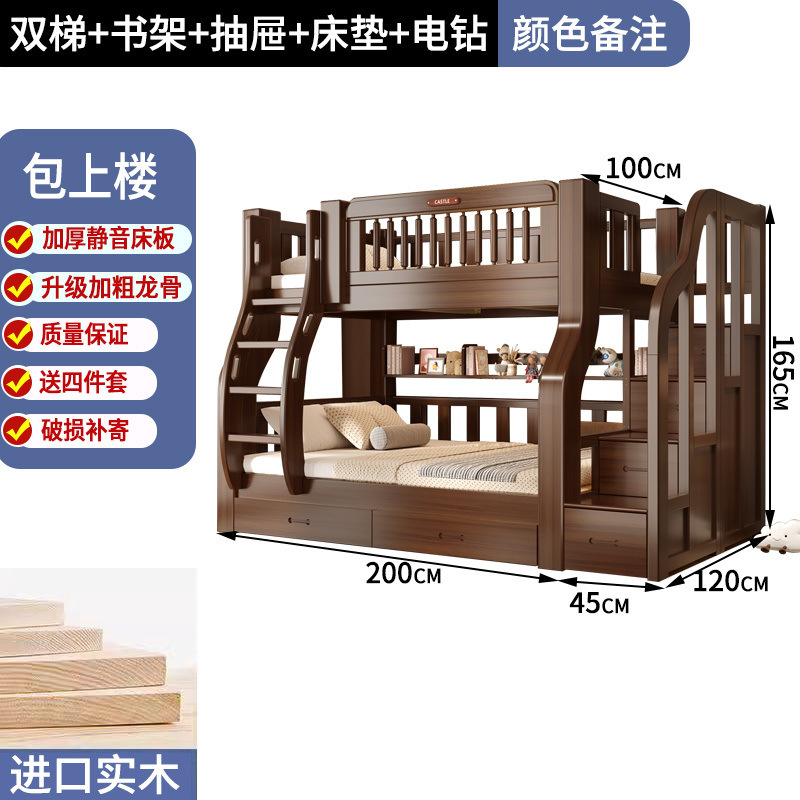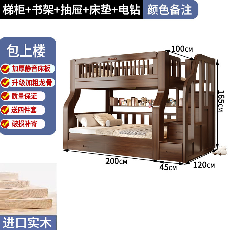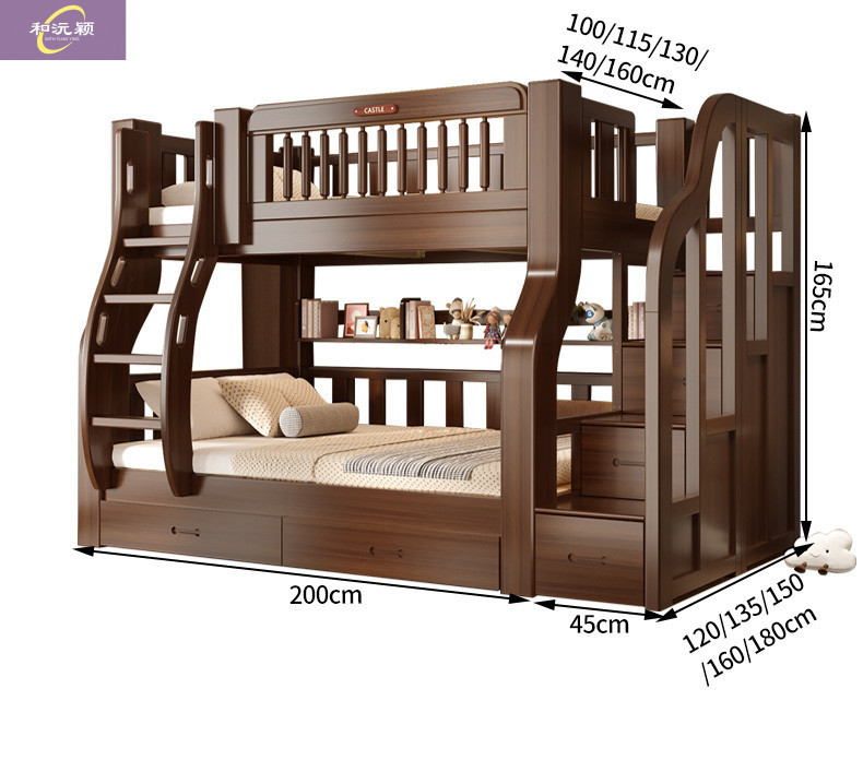 솔리드 우드 다기능 하이 로우 침대 벙크 침대 침대 작은 아파트 침대 어린이 침대 작은 아파트 자매와 형제를위한 침대