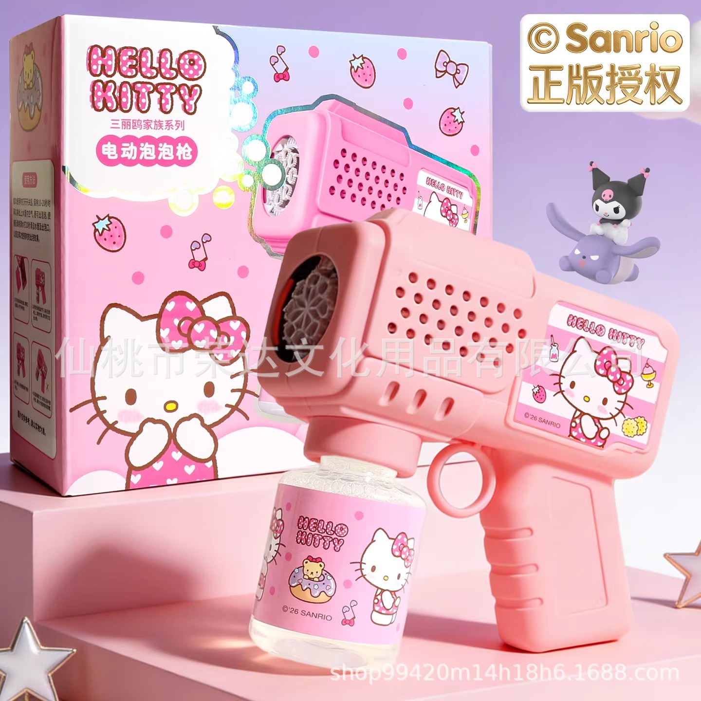 진짜 도매 산리오 전기 거품 총 멋진 로미 다공성 빛나는 거품 기계 선물 상자 멜로디 장난감스토어 가기