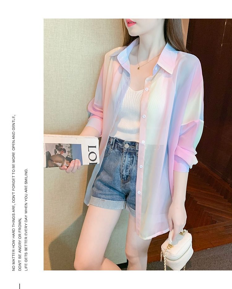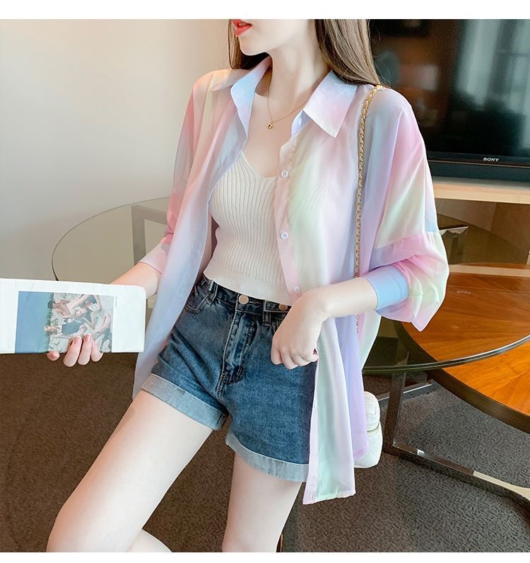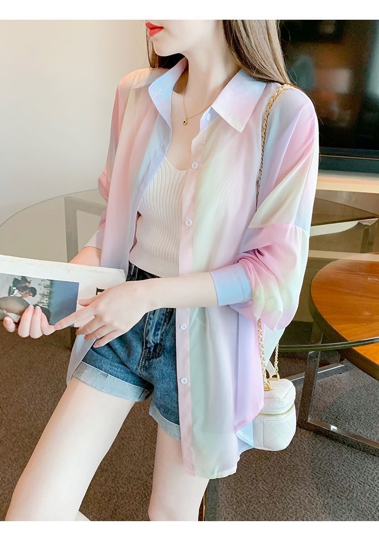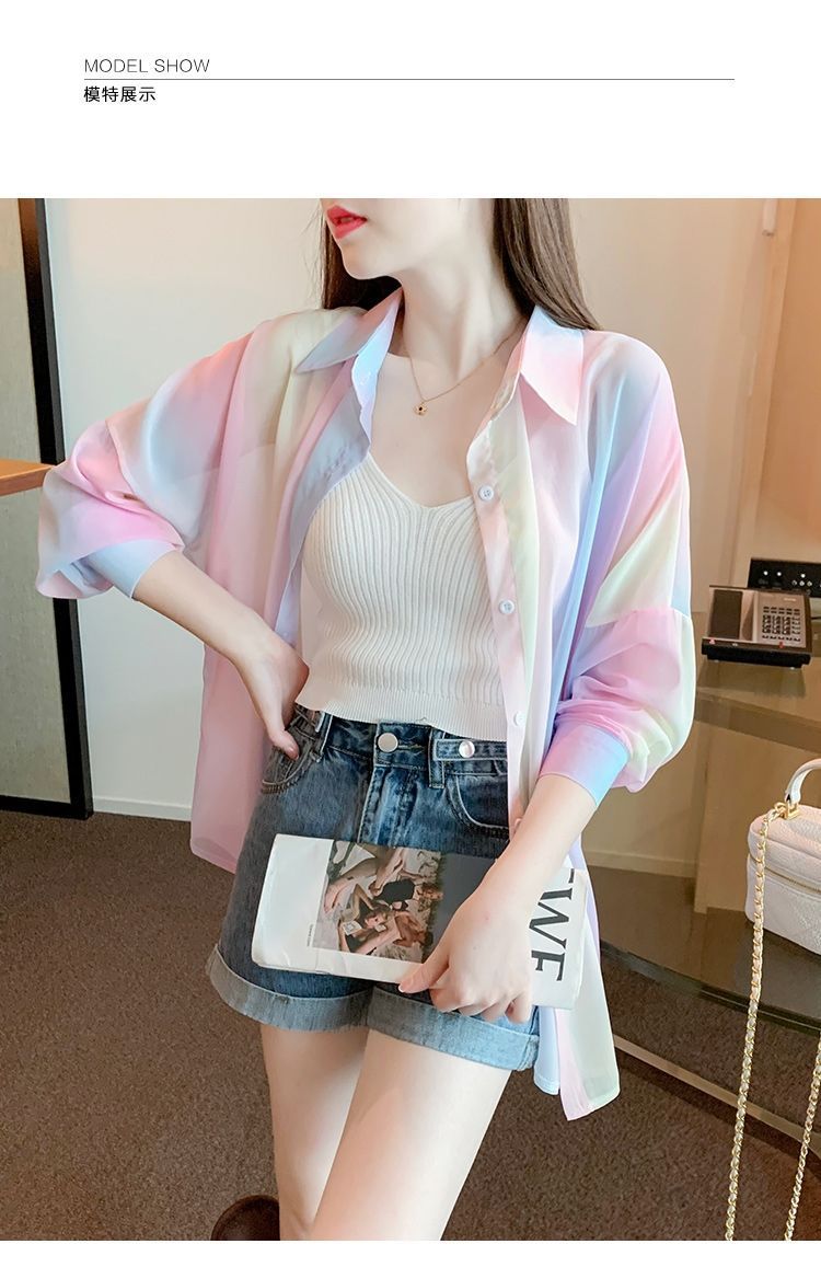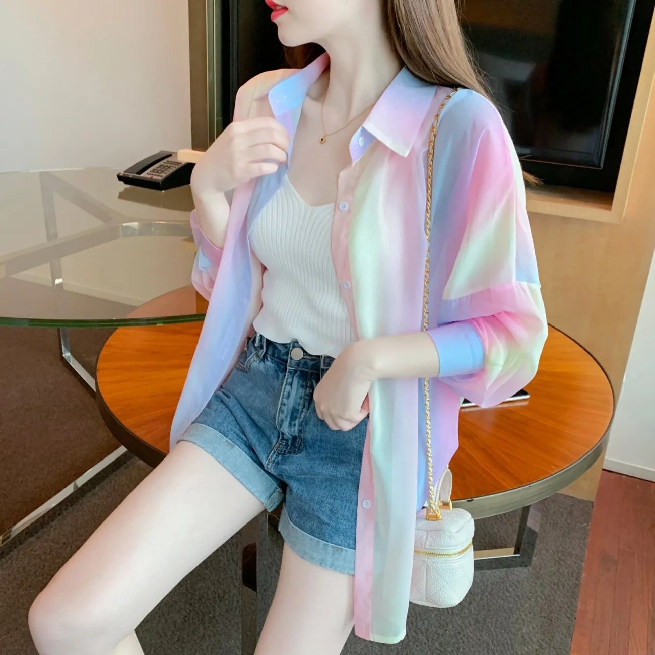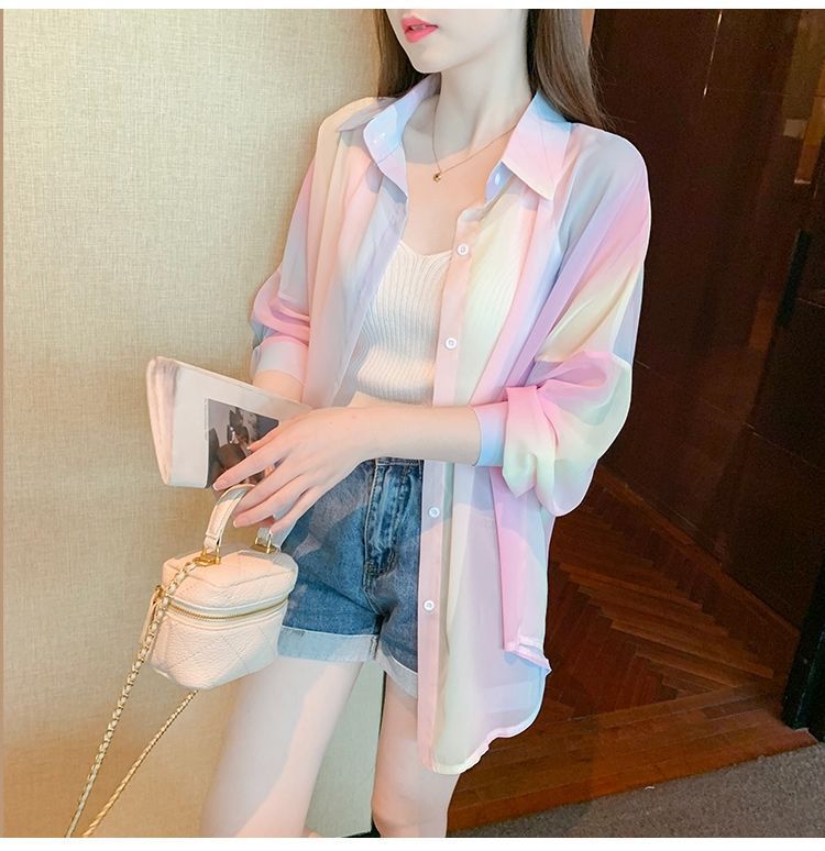 대외 무역 국경 간 2025 여름 얇은 무지개 자외선 차단 의류 쉬폰 셔츠 여성의 새로운 자외선 차단 카디건 스위트 셔츠스토어 가기