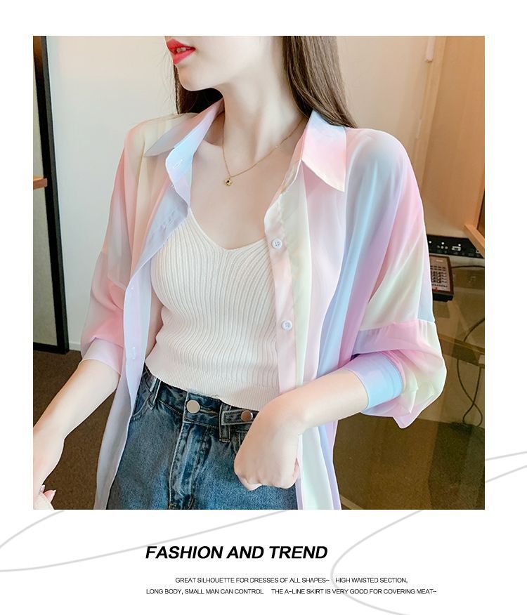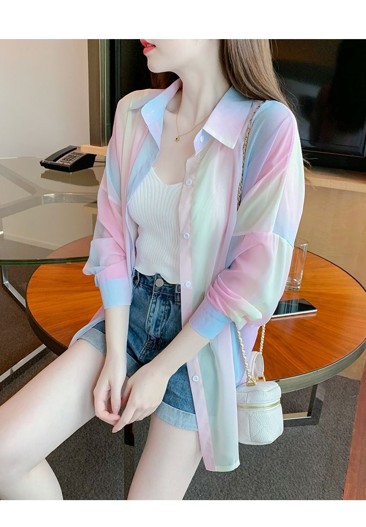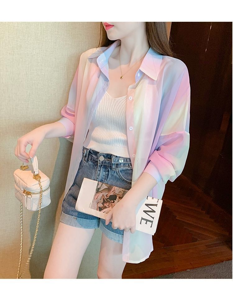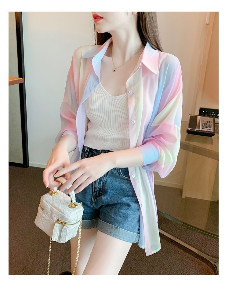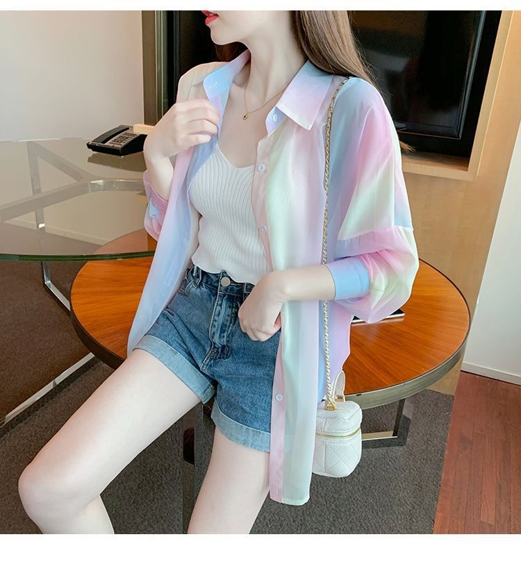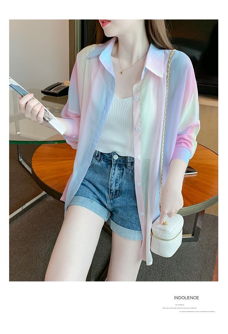 대외 무역 국경 간 2025 여름 얇은 무지개 자외선 차단 의류 쉬폰 셔츠 여성의 새로운 자외선 차단 카디건 스위트 셔츠스토어 가기