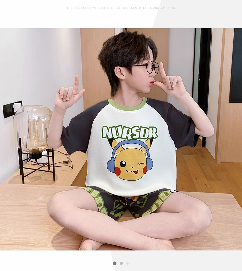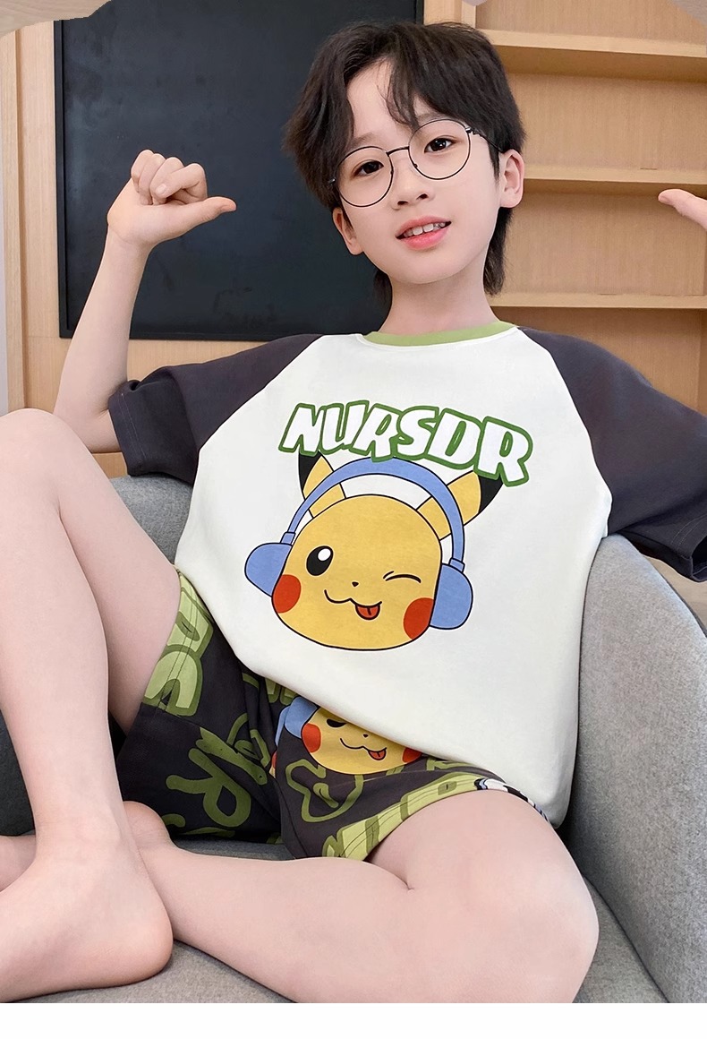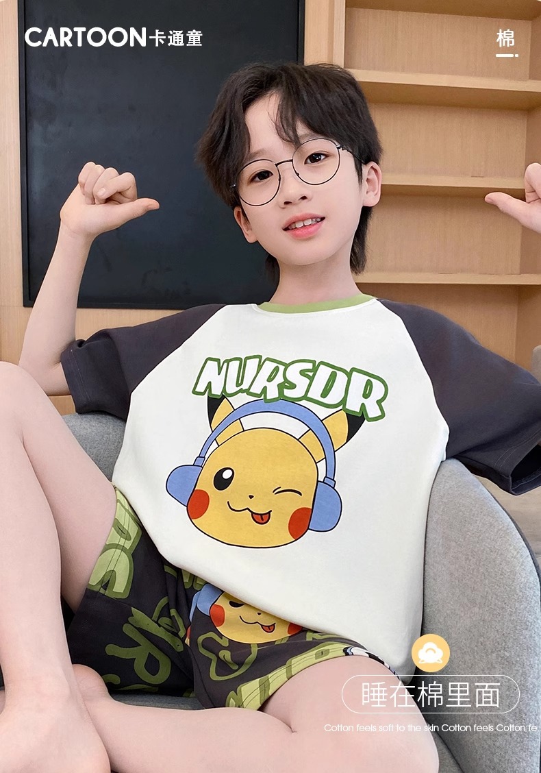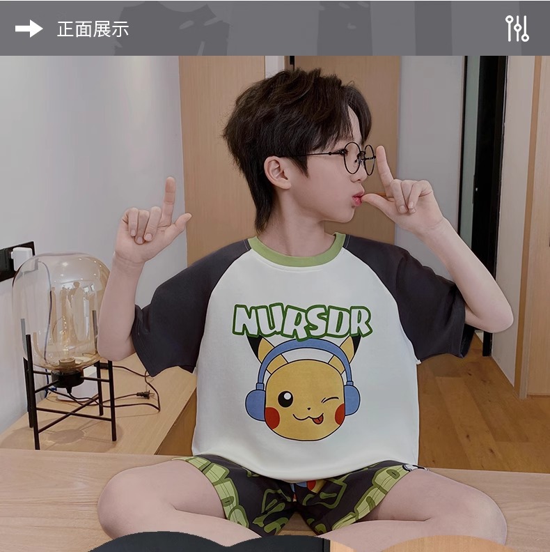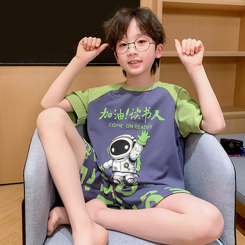 소년 잠옷 여름 순수 코튼 반팔 얇은 어린이 소년 큰 어린이 청소년 가정 의류 여름 2025 새로운 스타일
