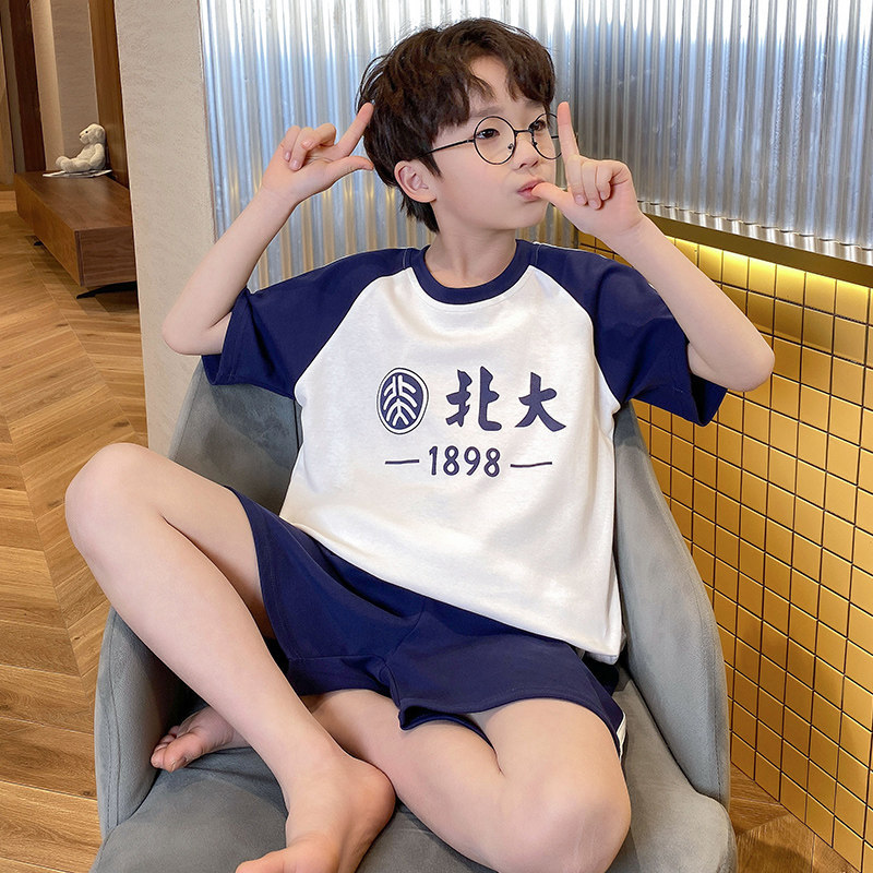 소년 잠옷 여름 순수 코튼 반팔 얇은 어린이 소년 큰 어린이 청소년 가정 의류 여름 2025 새로운 스타일스토어 가기