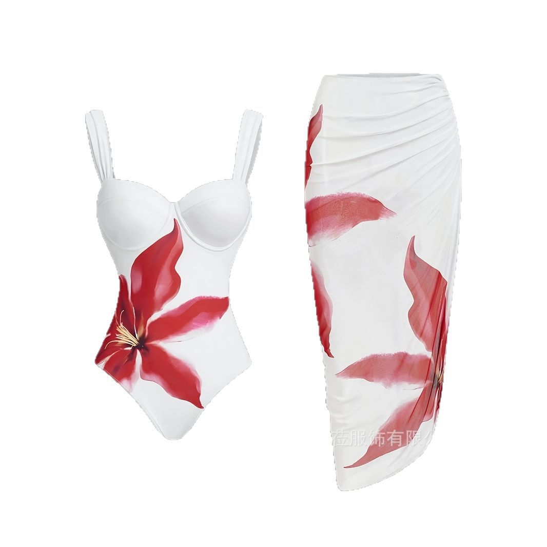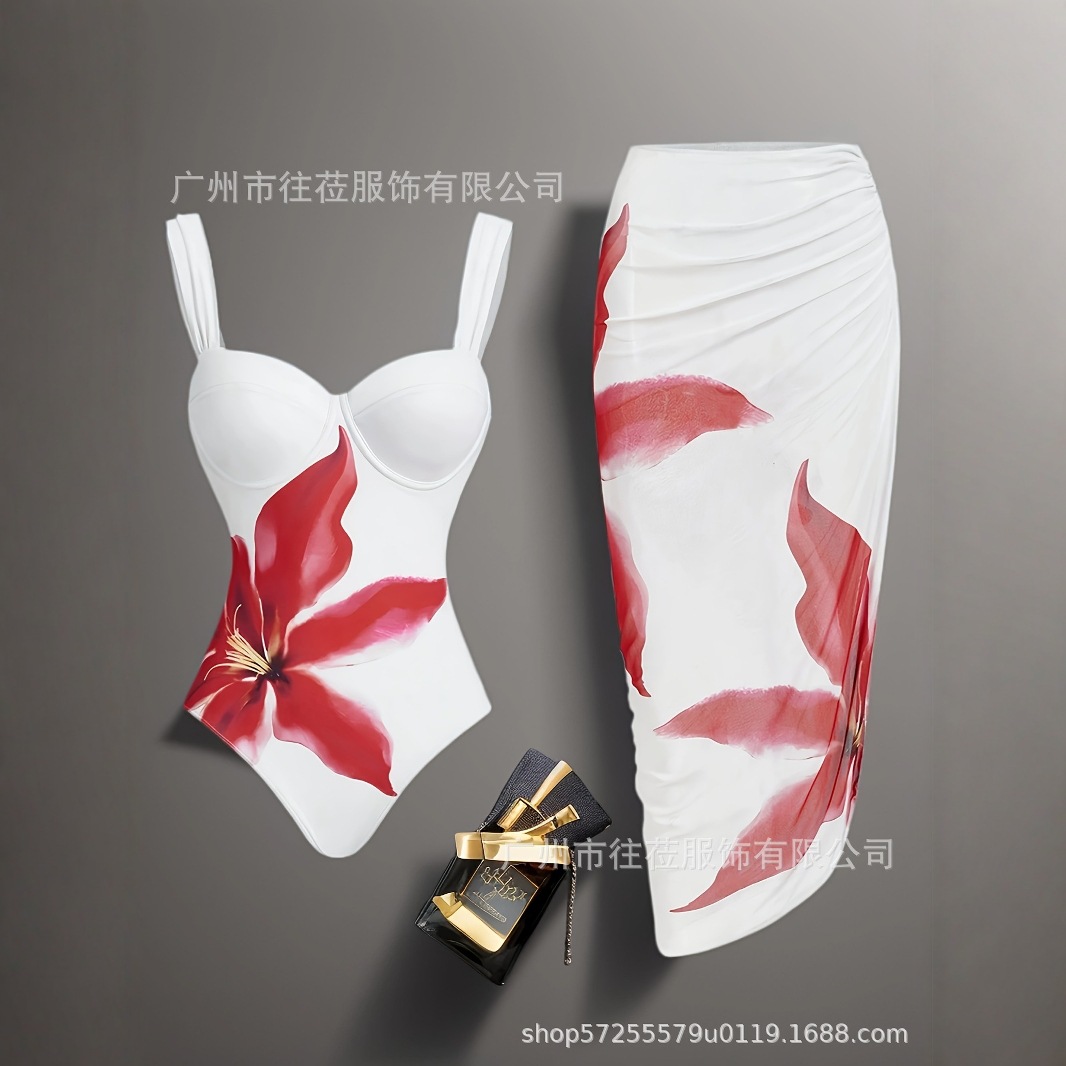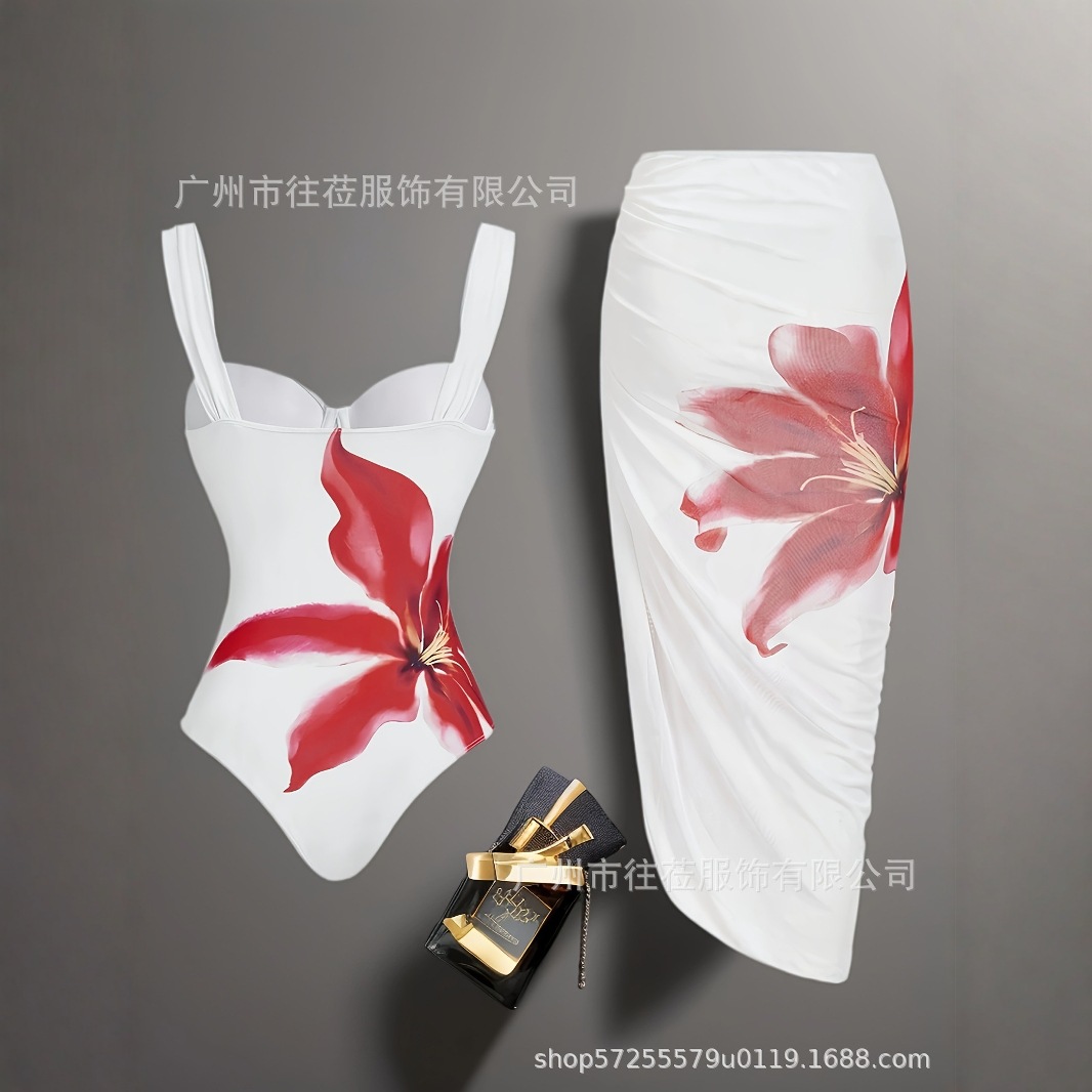 새로운 꽃 프린트 슬림 허리 원피스 원피스 캐주얼 휴가 해변 수영복 스커트 투피스 세트