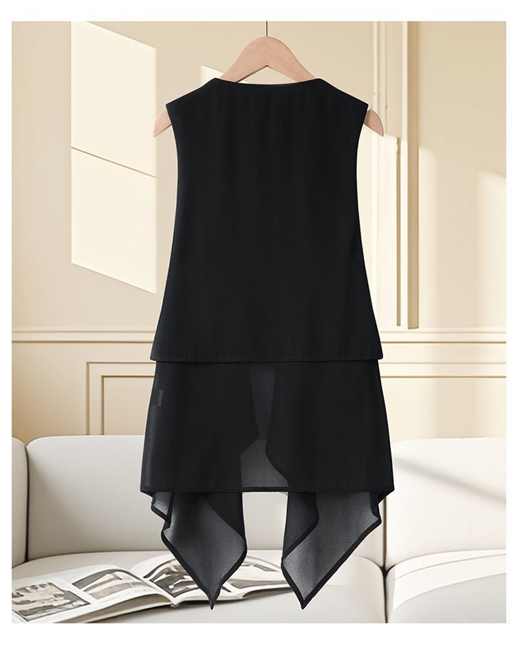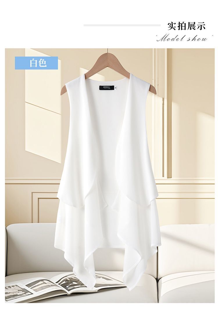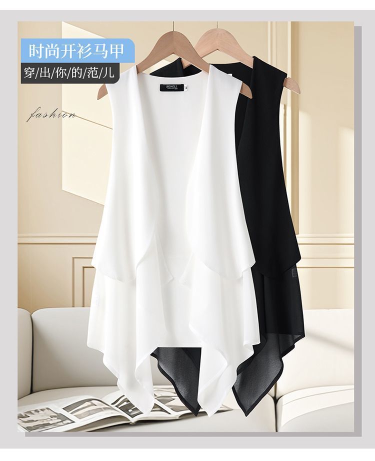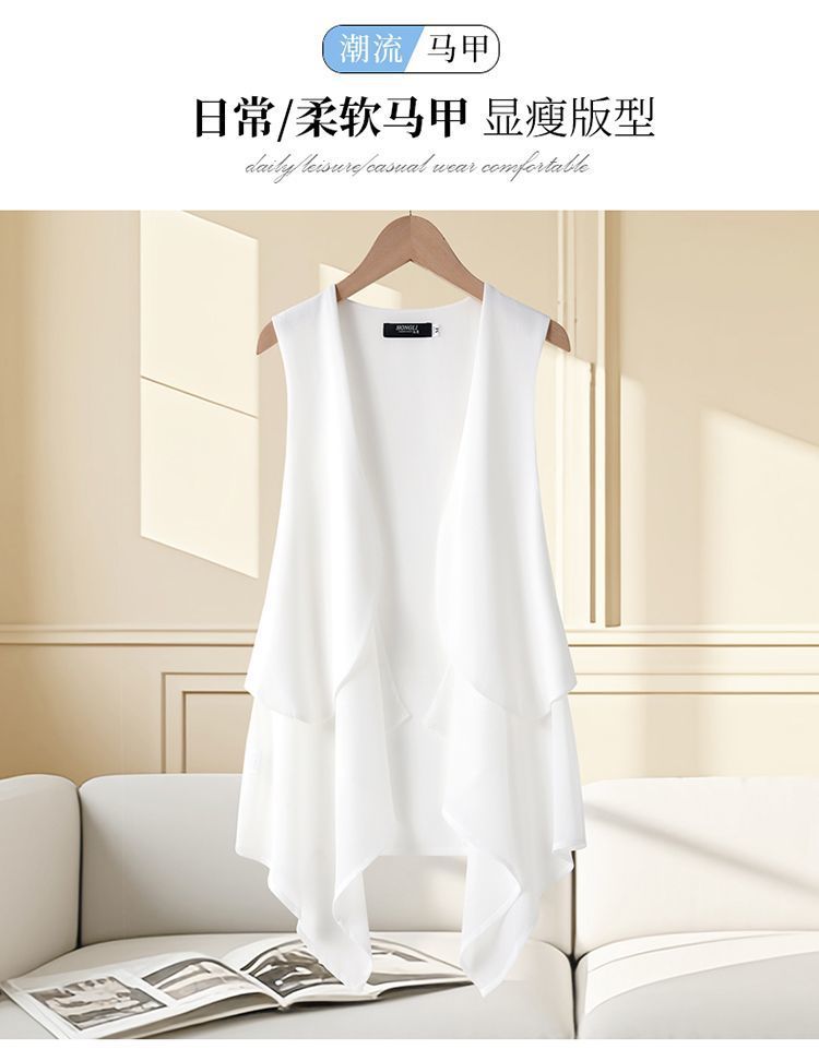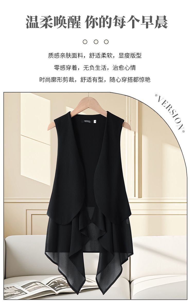 여성용 쉬폰 조끼 중간 길이 얇은 여름 슬리밍 한국 스타일 민소매 패션 조끼 카디건 양복 조끼 새 코트