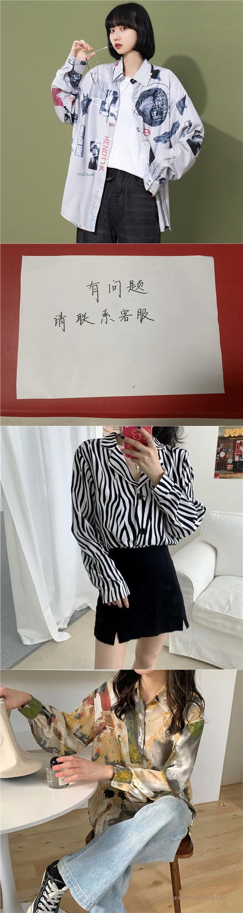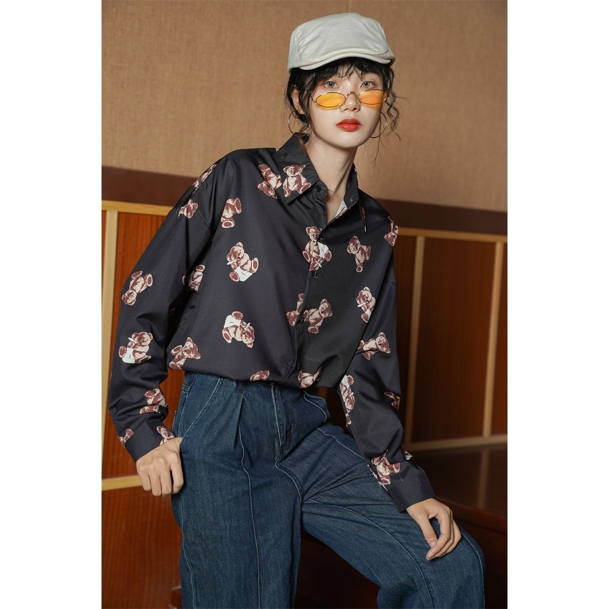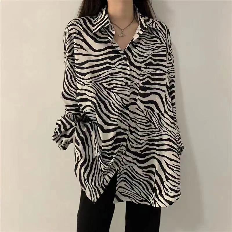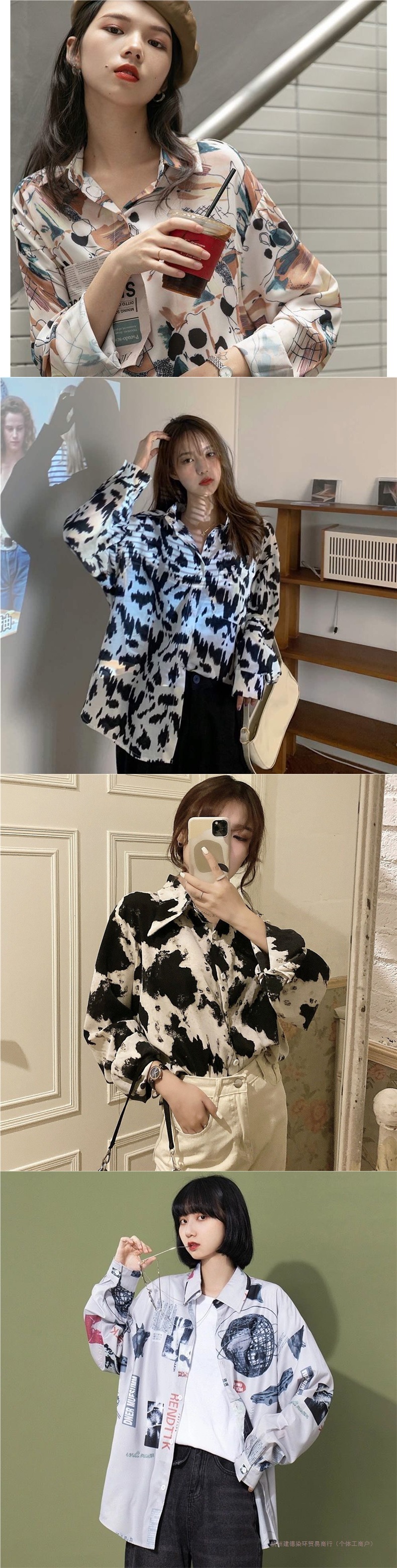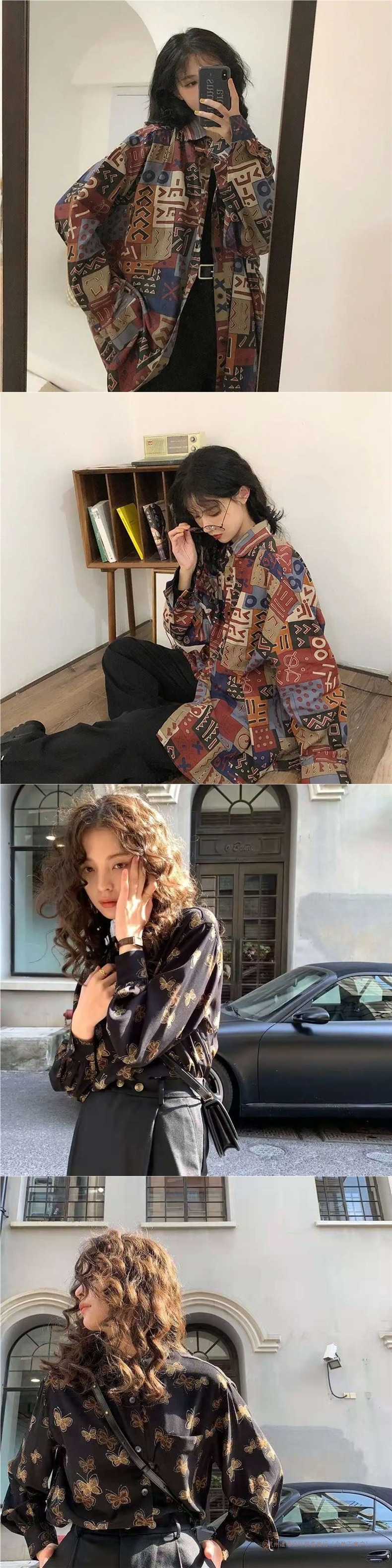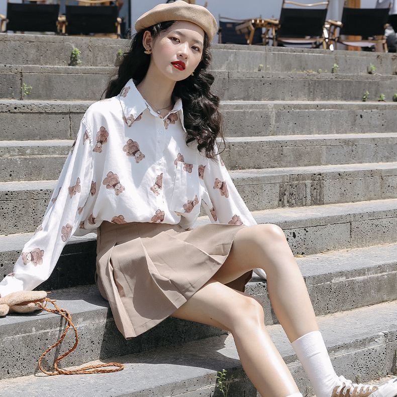 개인화 된 인쇄 ~ 복고풍 기질 틈새 홍콩 스타일 여성용 긴팔 셔츠 봄, 가을 새로운 루즈 캐주얼 라펠 셔츠스토어 가기