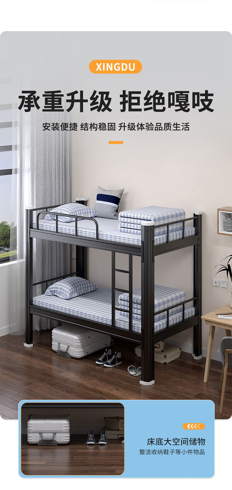 충칭 상부 및 하부 이층 철침대 강철 이층 학생 직원 기숙사 패딩 침대 성인 침대 블랙 침대 보드스토어 가기
