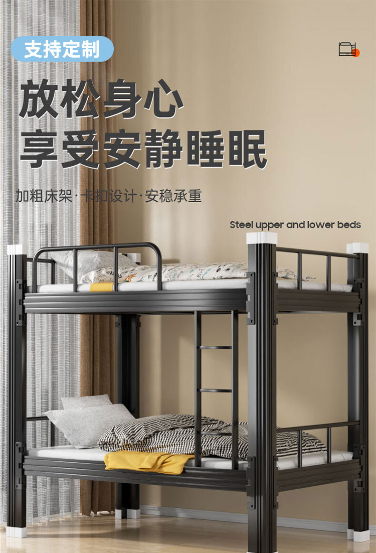충칭 상부 및 하부 이층 철침대 강철 이층 학생 직원 기숙사 패딩 침대 성인 침대 블랙 침대 보드