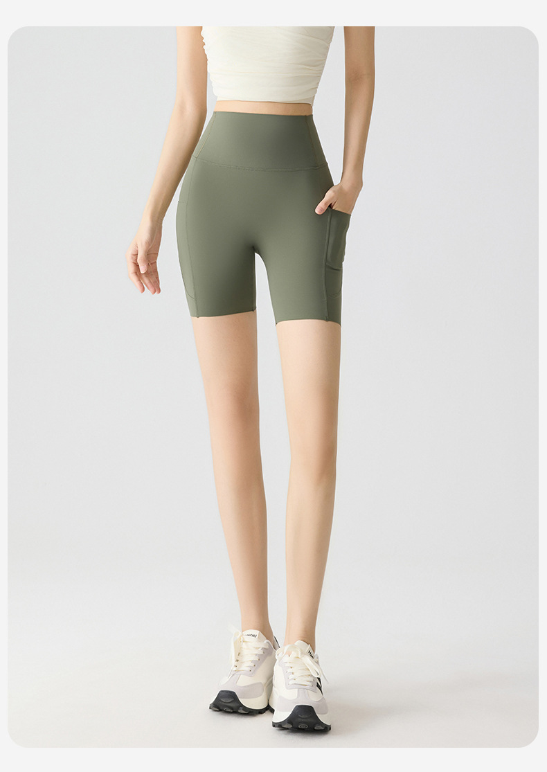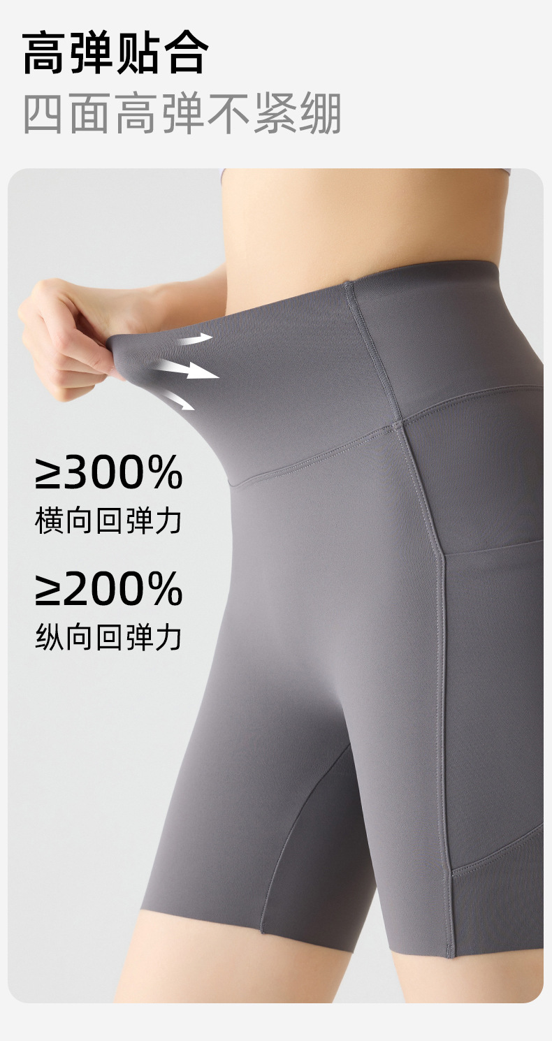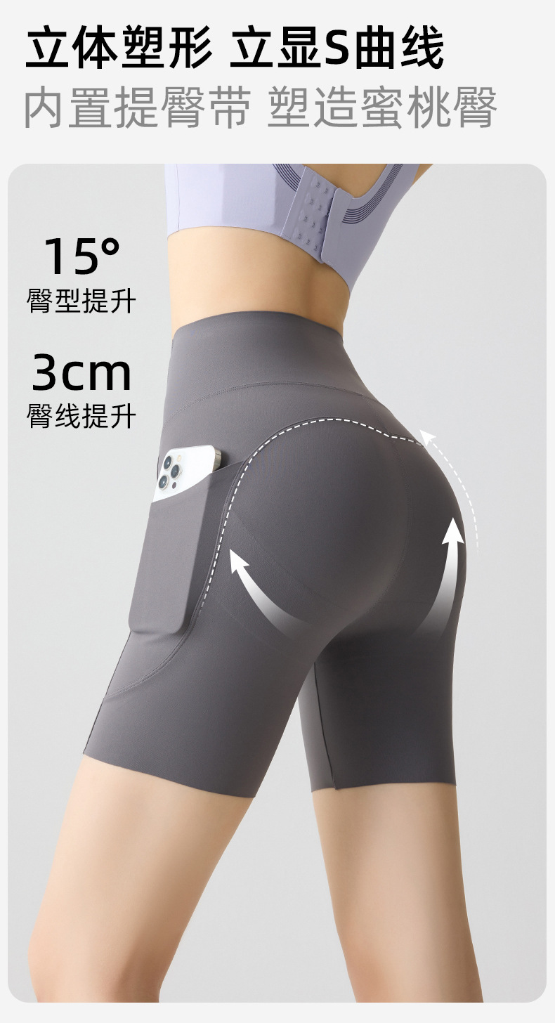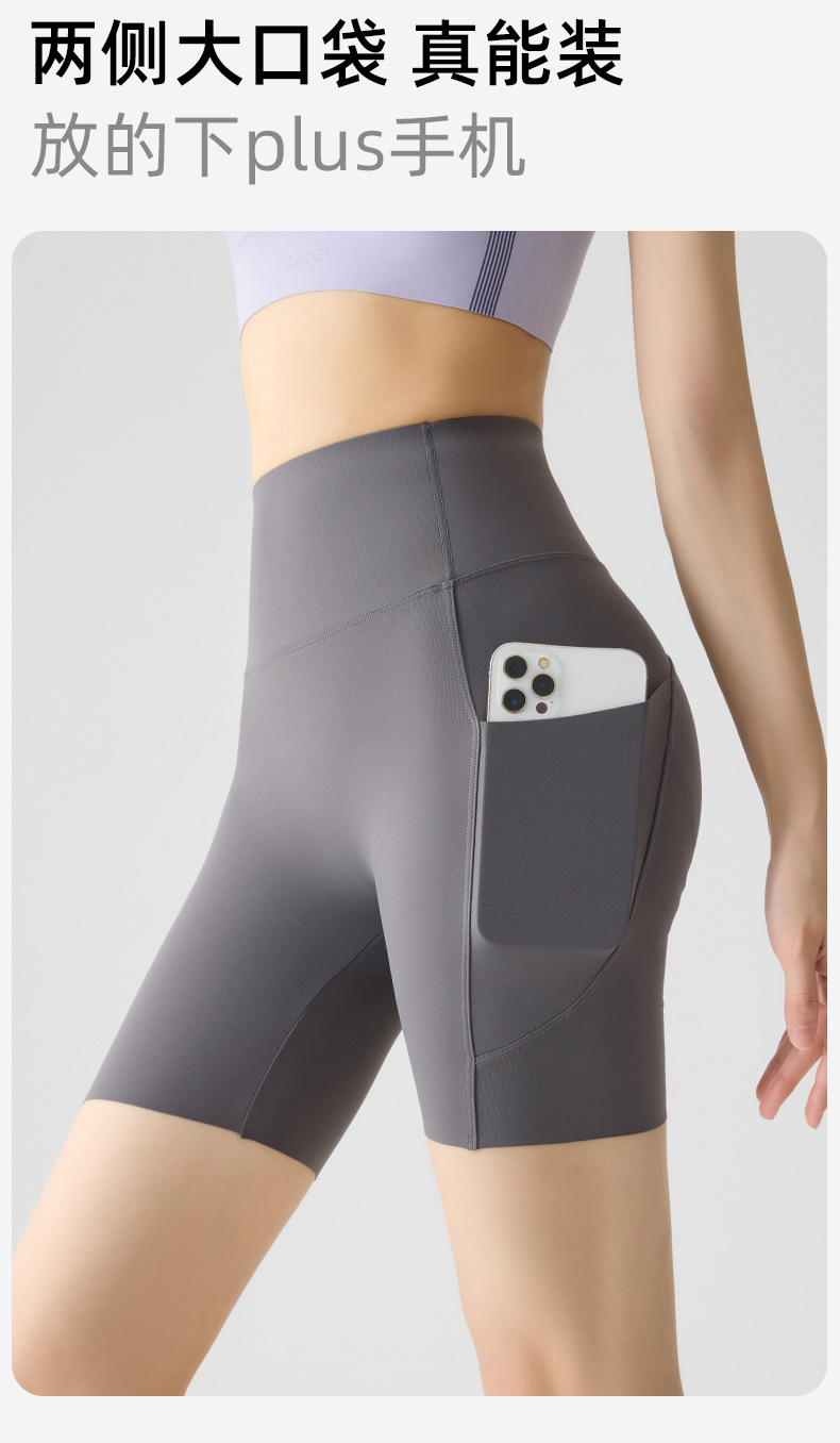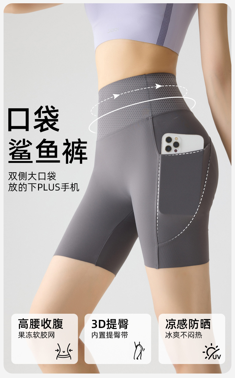 포켓 요가 바지 여름 하이 웨이스트 3점 상어 바지 여성은 레깅스를 입을 수 있습니다 얇은 엉덩이 리프팅 누드 스타킹