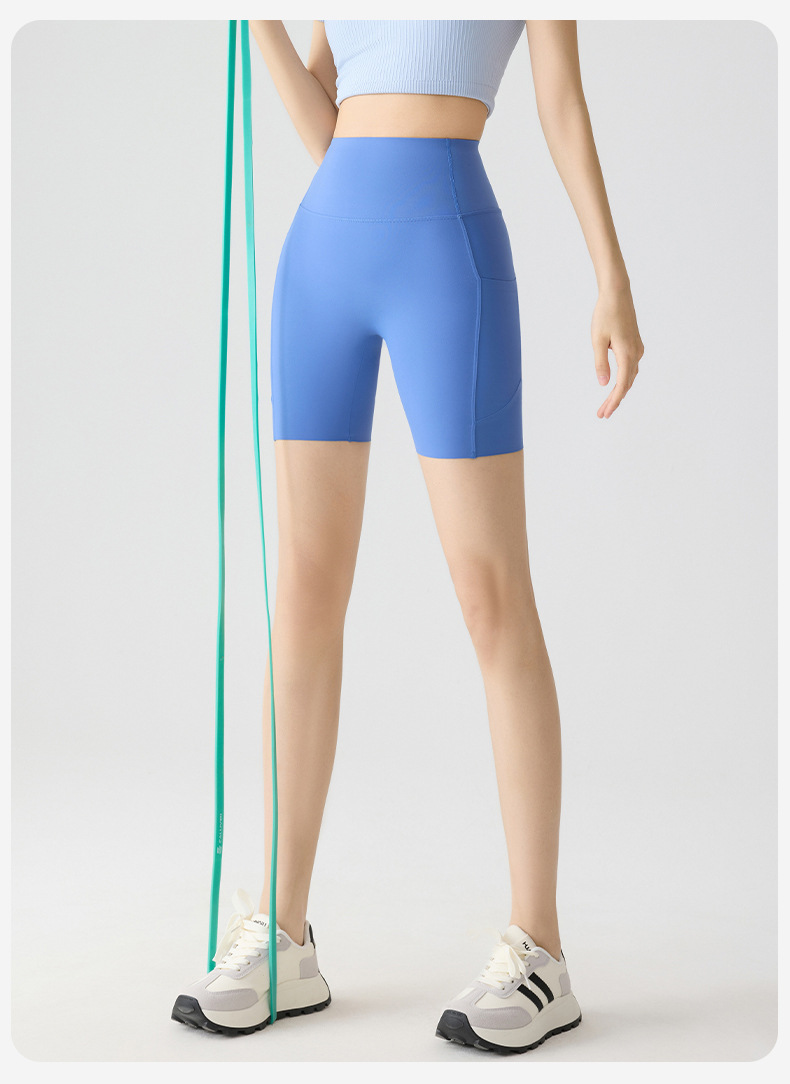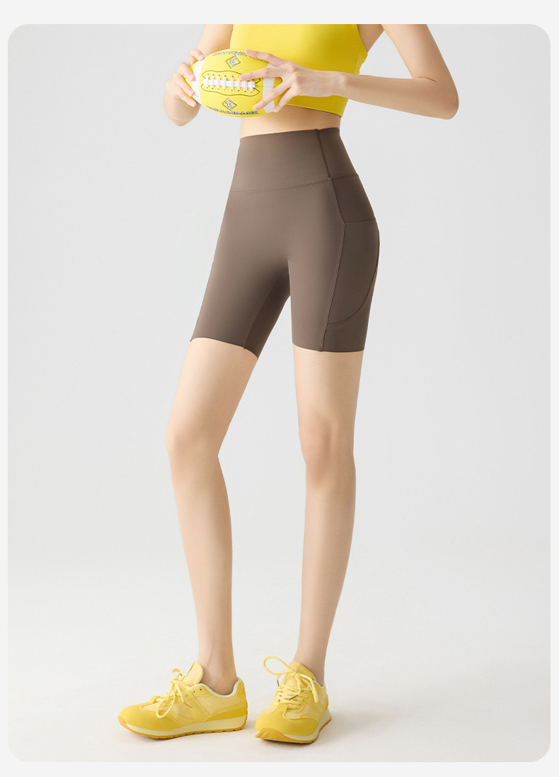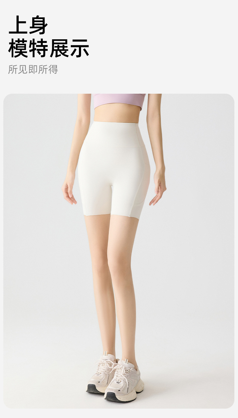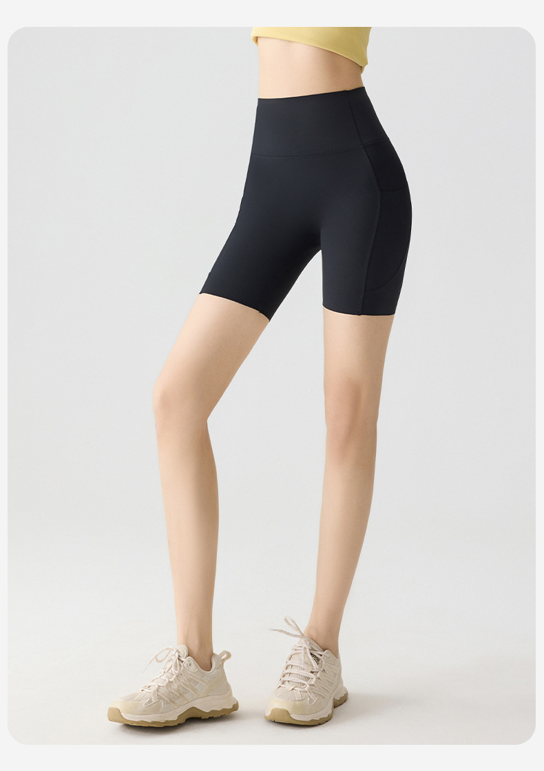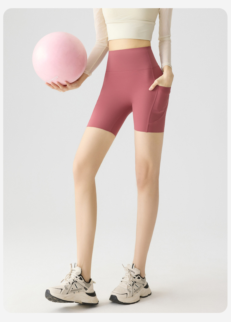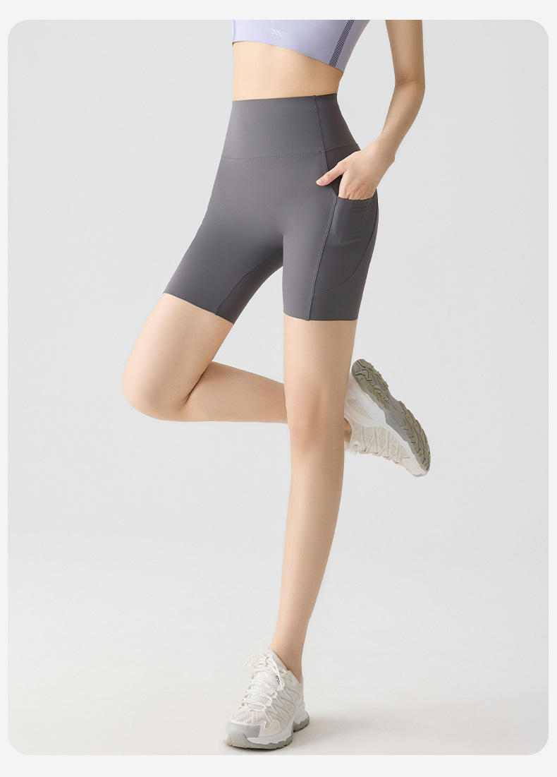 포켓 요가 바지 여름 하이 웨이스트 3점 상어 바지 여성은 레깅스를 입을 수 있습니다 얇은 엉덩이 리프팅 누드 스타킹