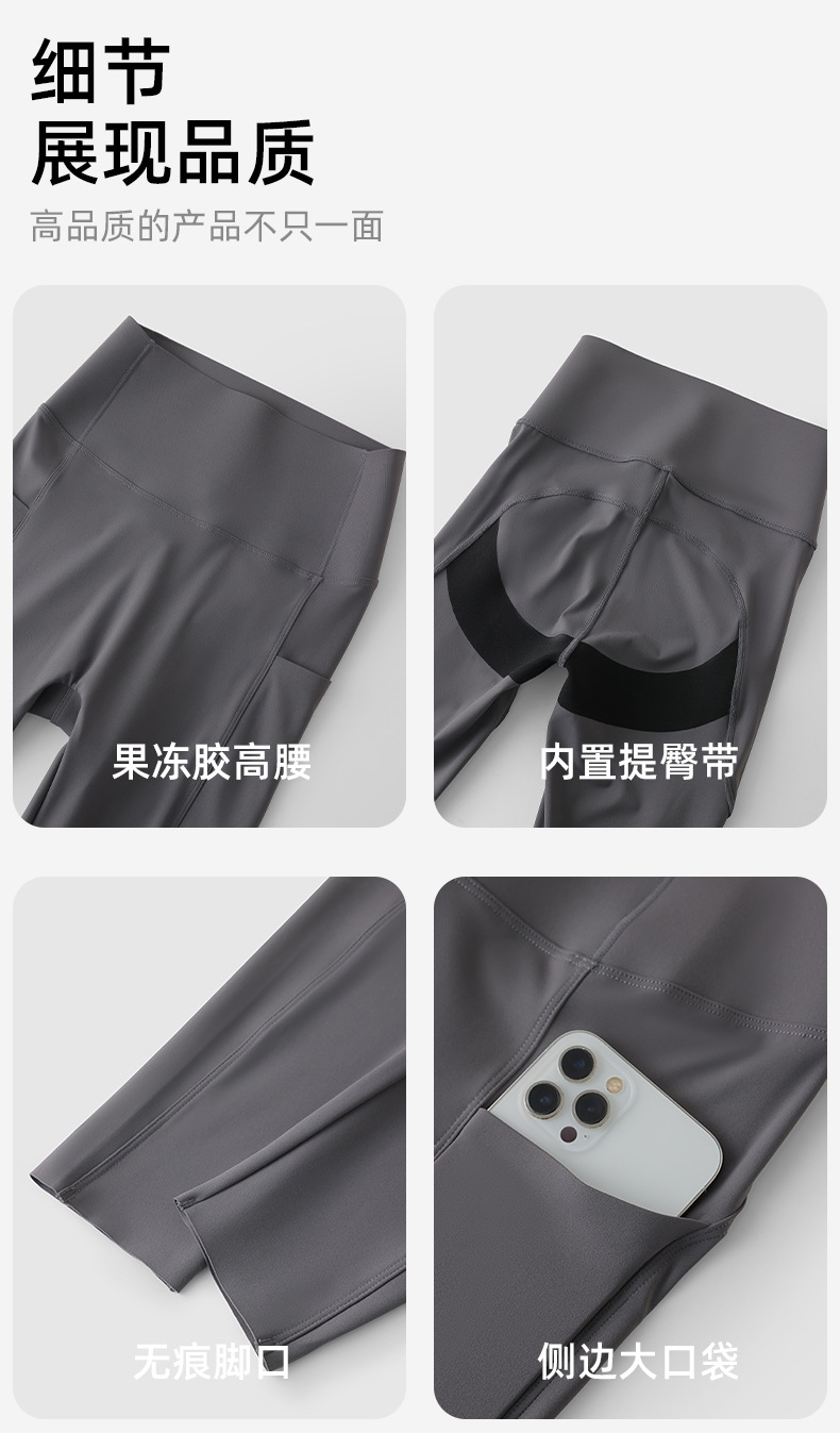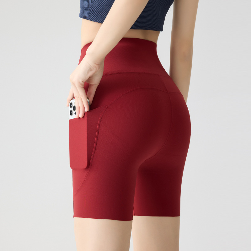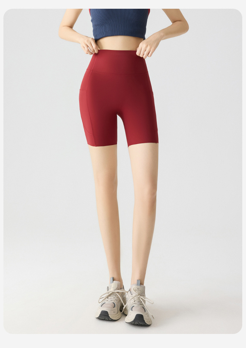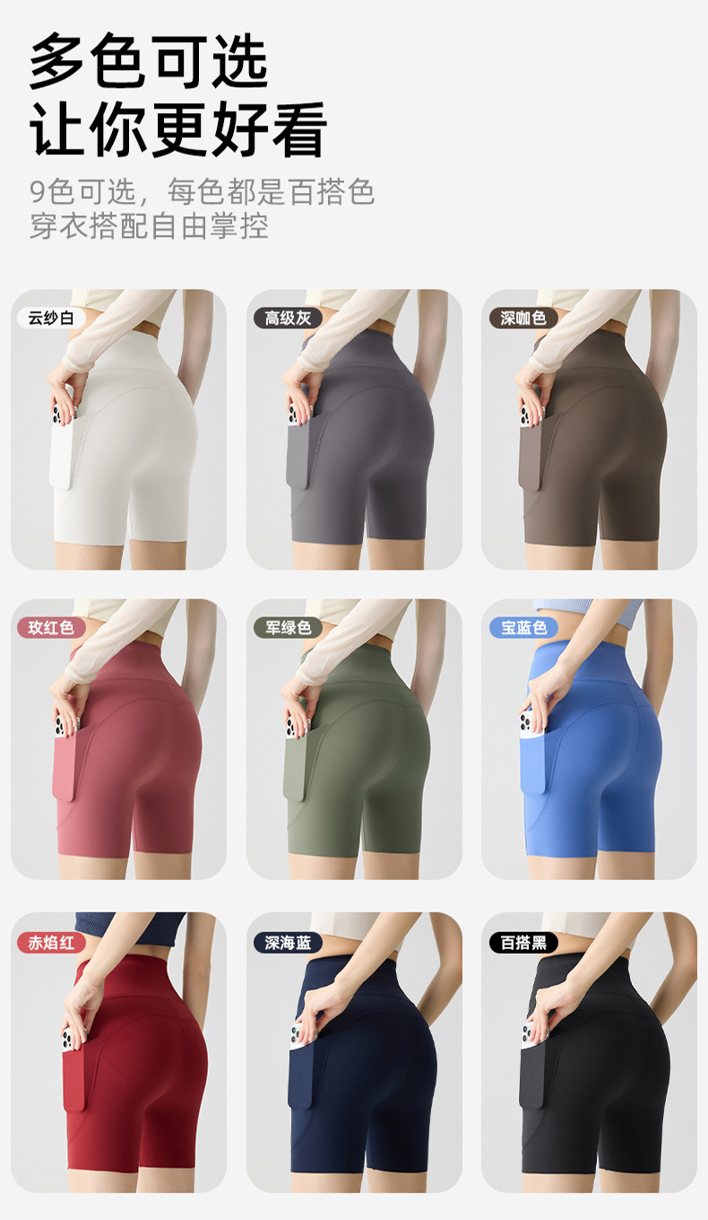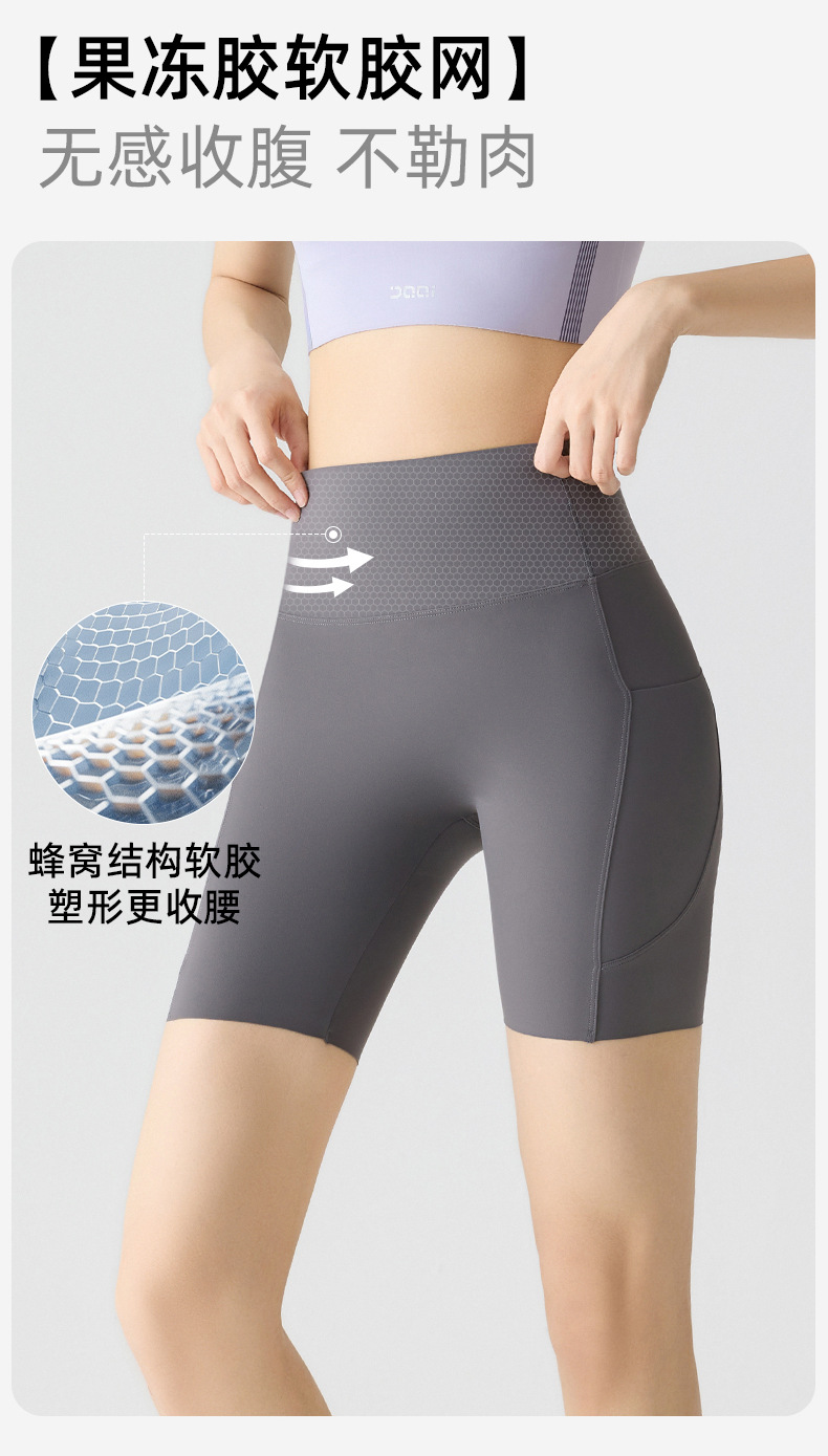 포켓 요가 바지 여름 하이 웨이스트 3점 상어 바지 여성은 레깅스를 입을 수 있습니다 얇은 엉덩이 리프팅 누드 스타킹