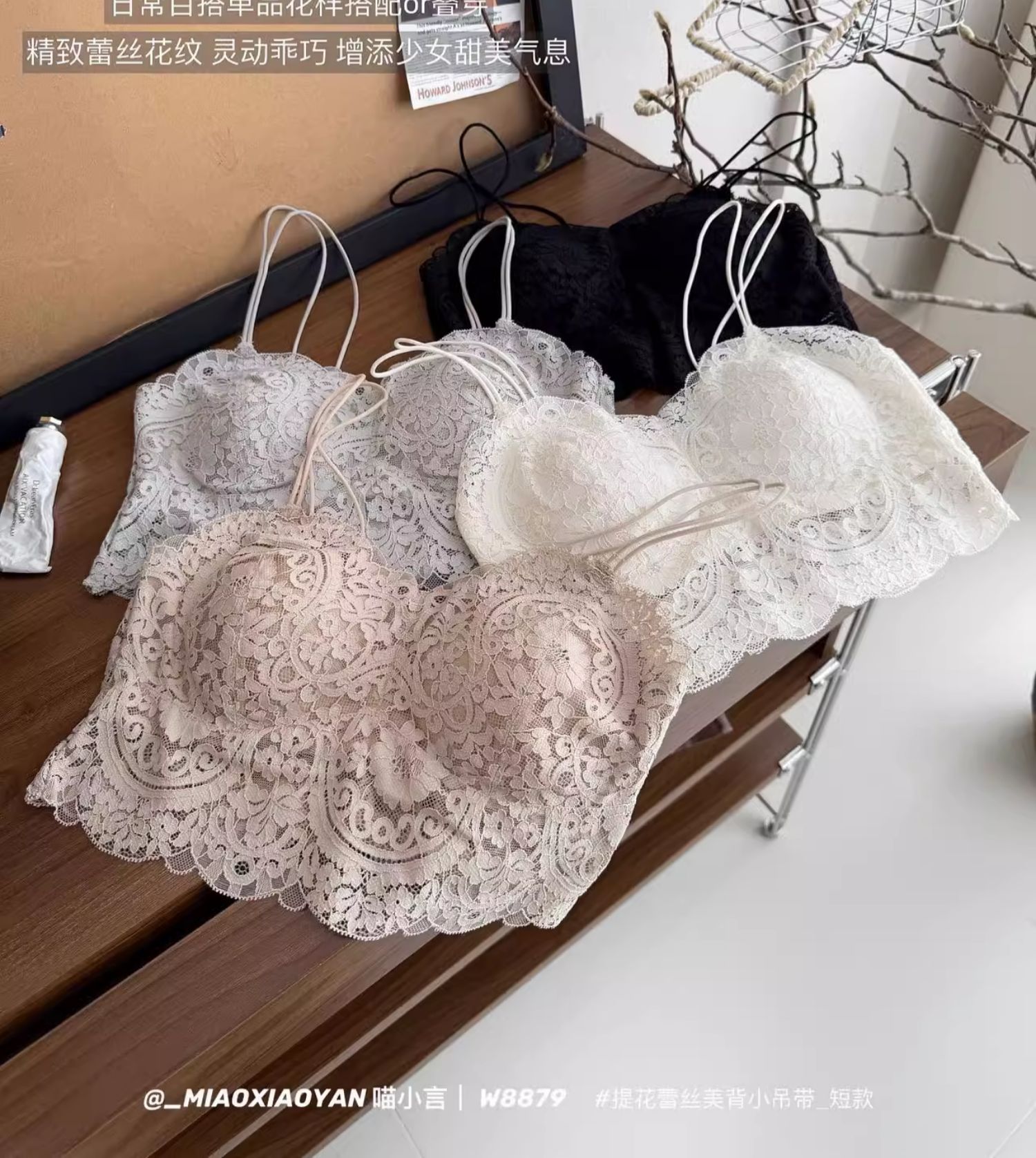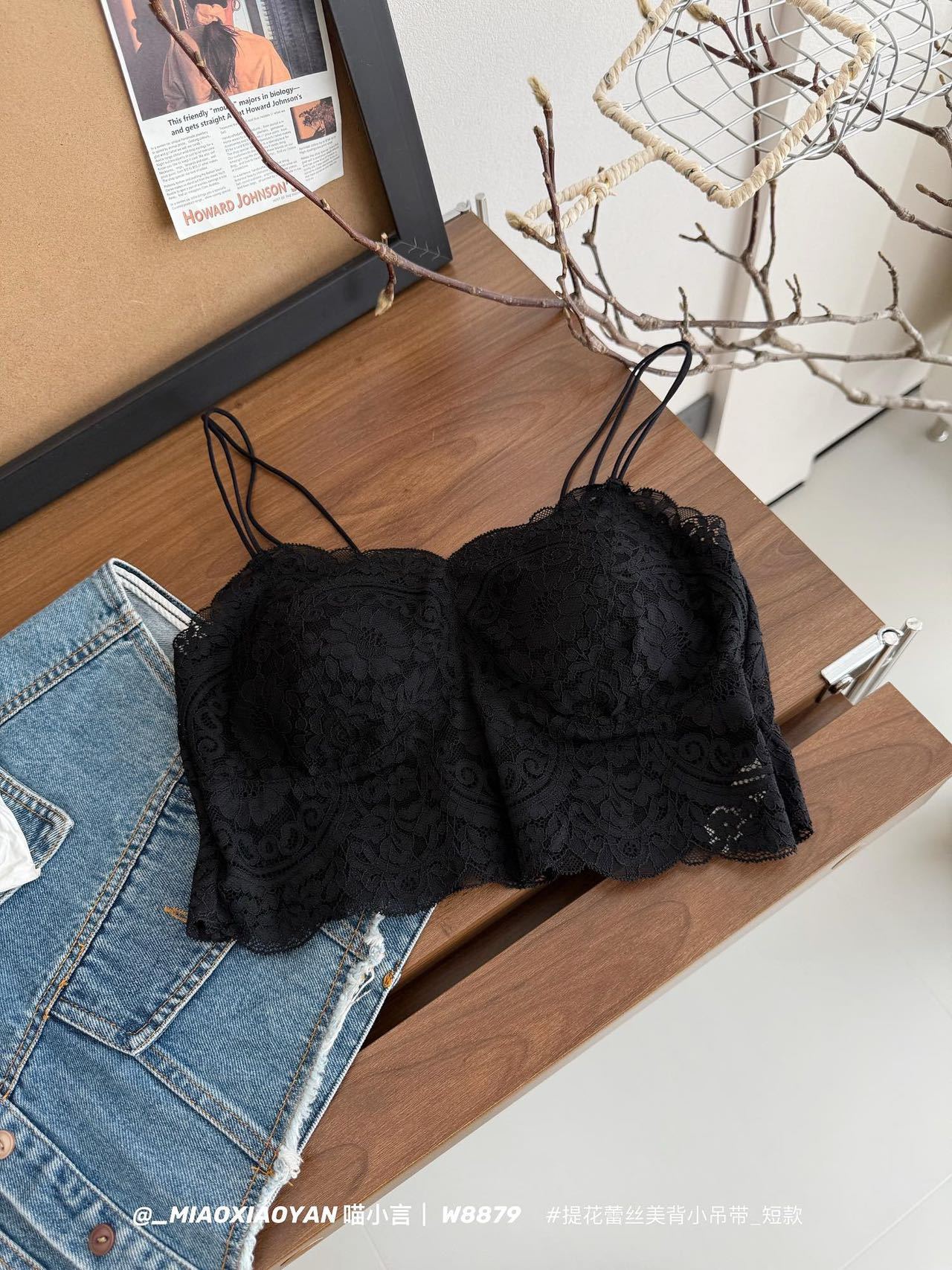 Meow Xiaoyan 자카드 레이스 섹시한 아름다운 등 작은 서스펜더 W8879 짧은 여름 소녀의 가볍고 통기성이 좋은 조끼스토어 가기