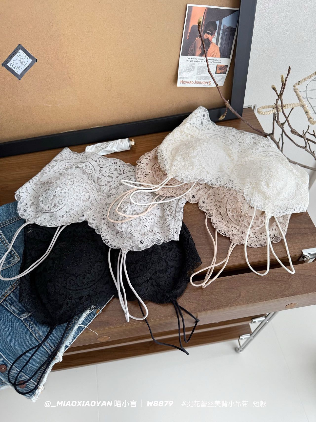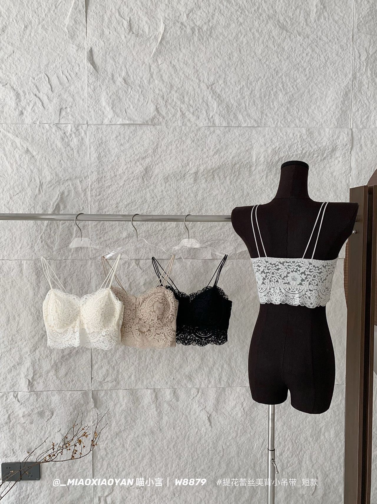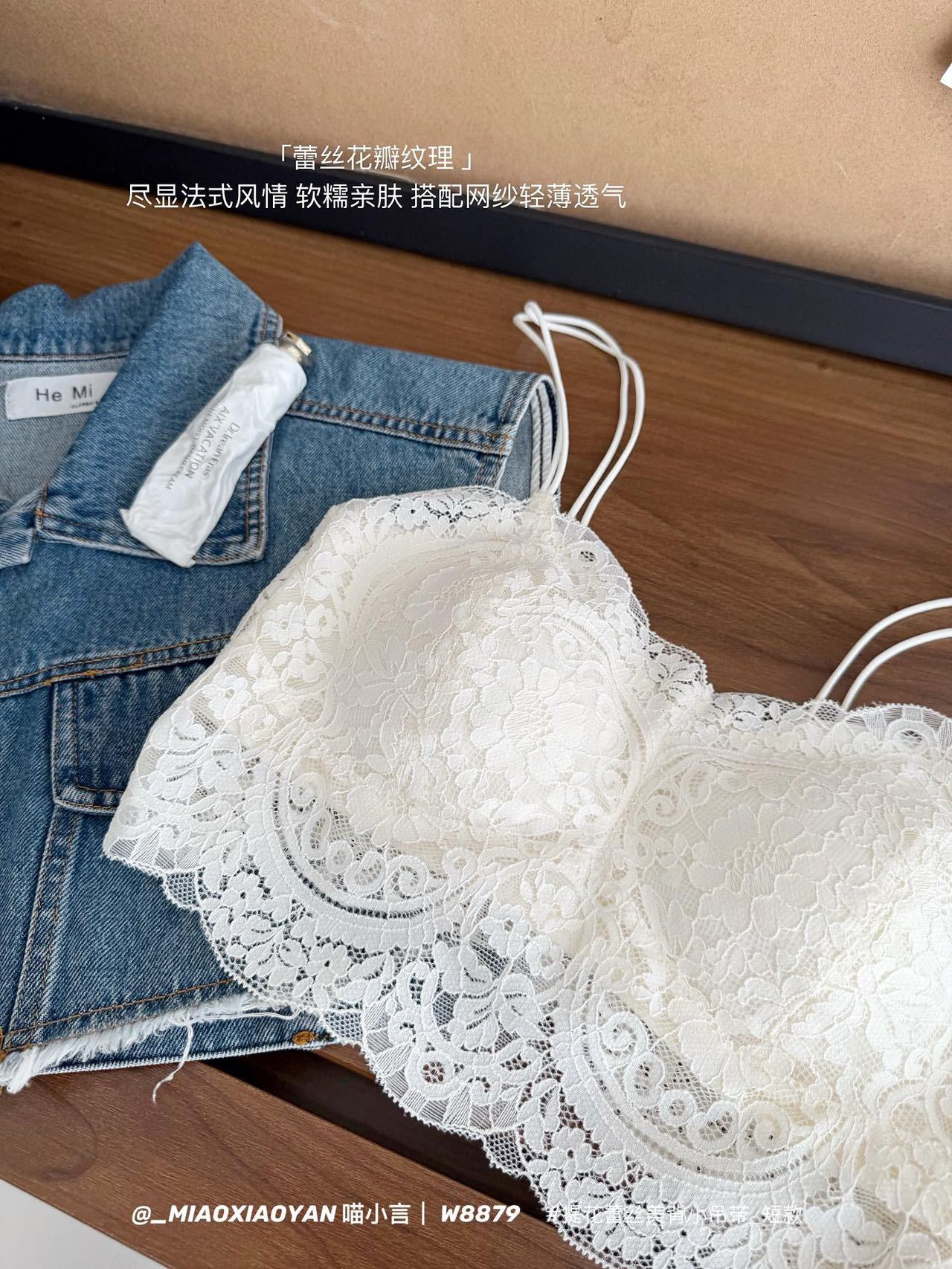 Meow Xiaoyan 자카드 레이스 섹시한 아름다운 등 작은 서스펜더 W8879 짧은 여름 소녀의 가볍고 통기성이 좋은 조끼