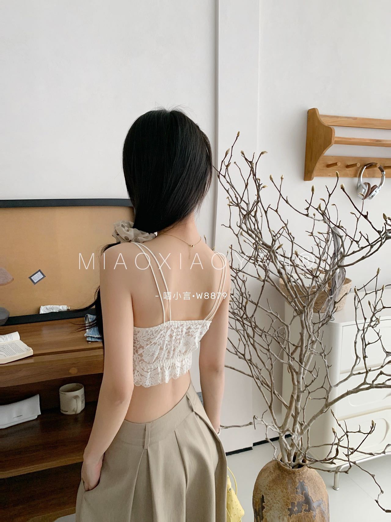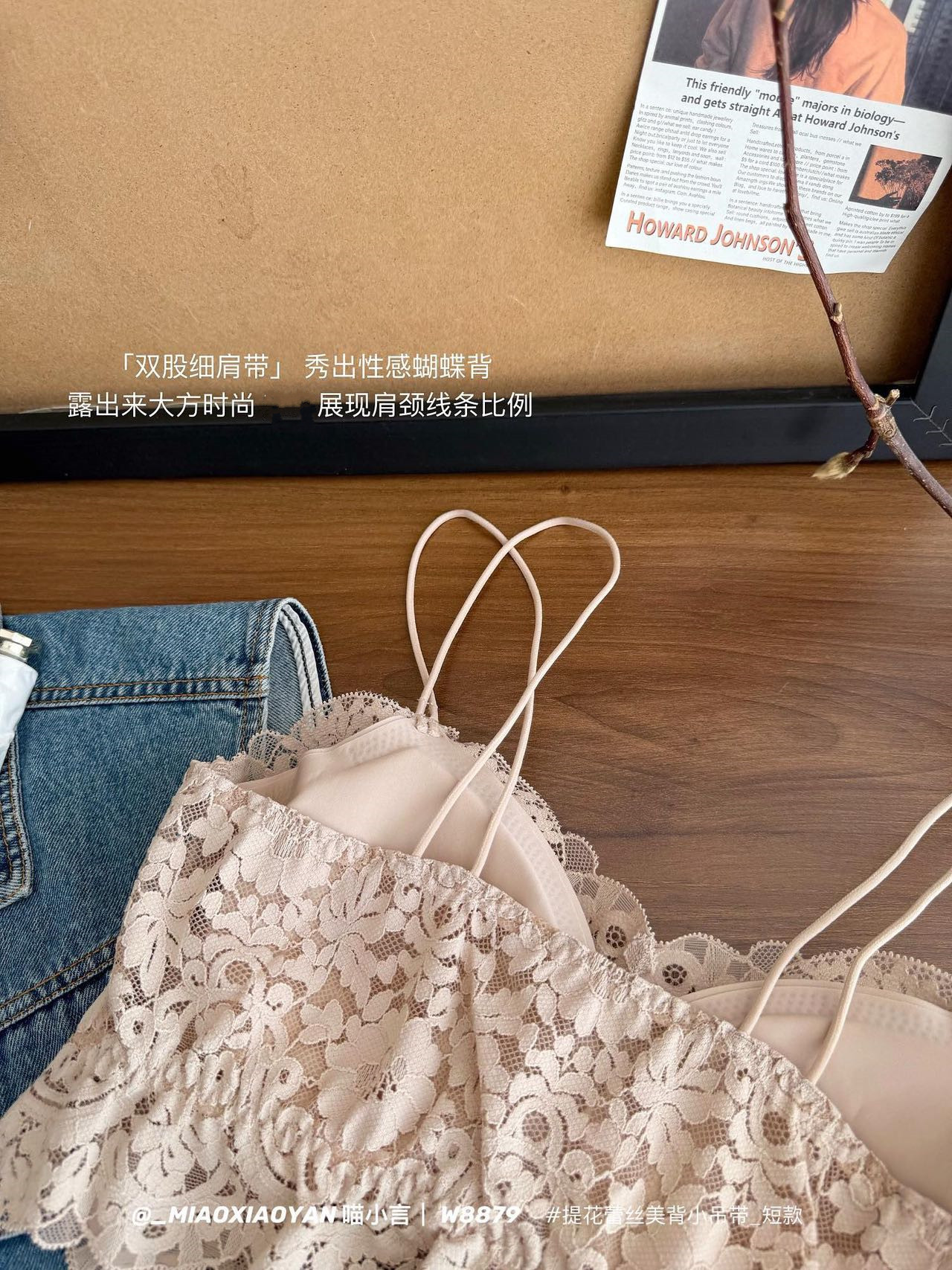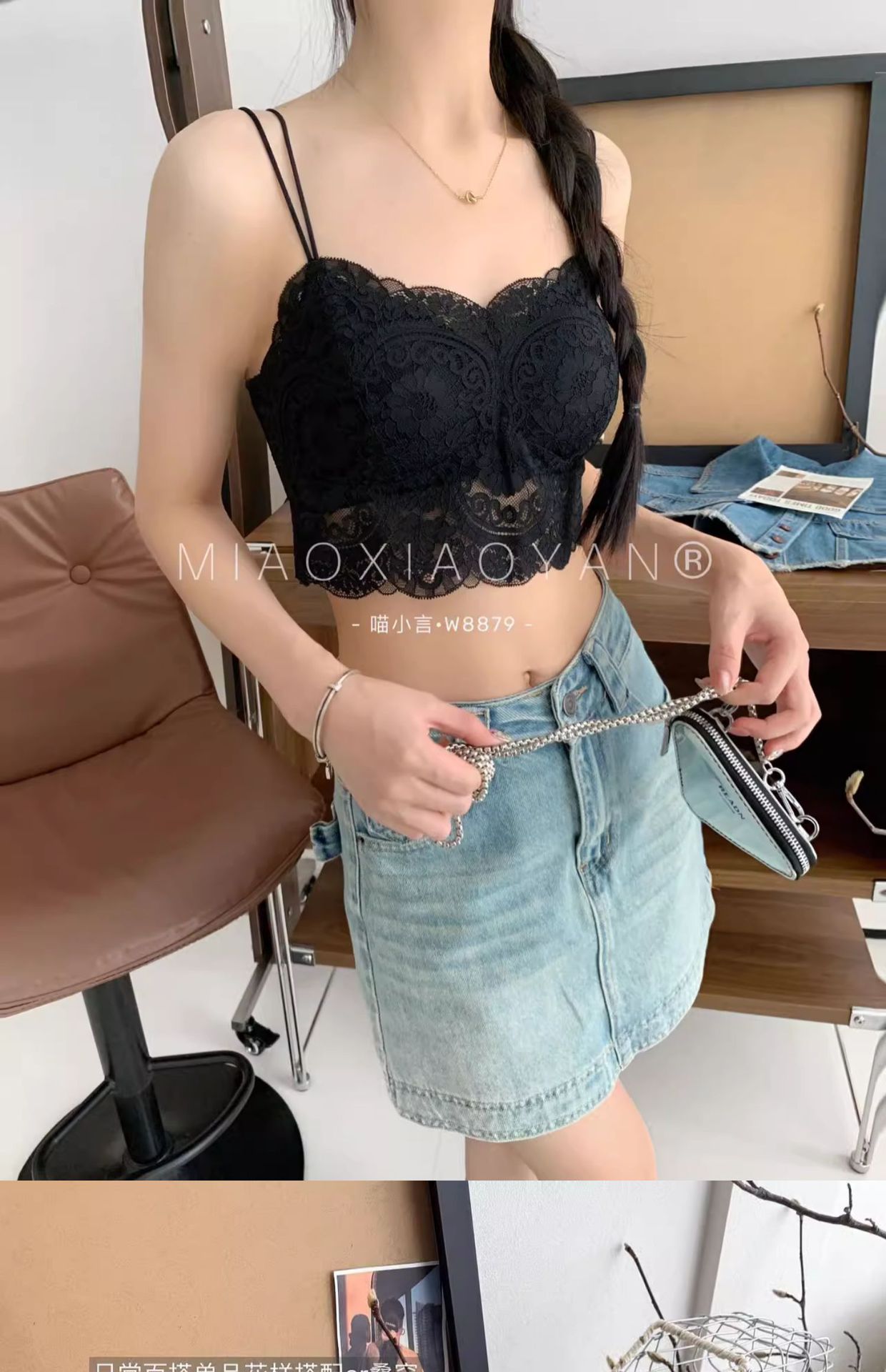 Meow Xiaoyan 자카드 레이스 섹시한 아름다운 등 작은 서스펜더 W8879 짧은 여름 소녀의 가볍고 통기성이 좋은 조끼