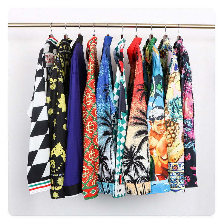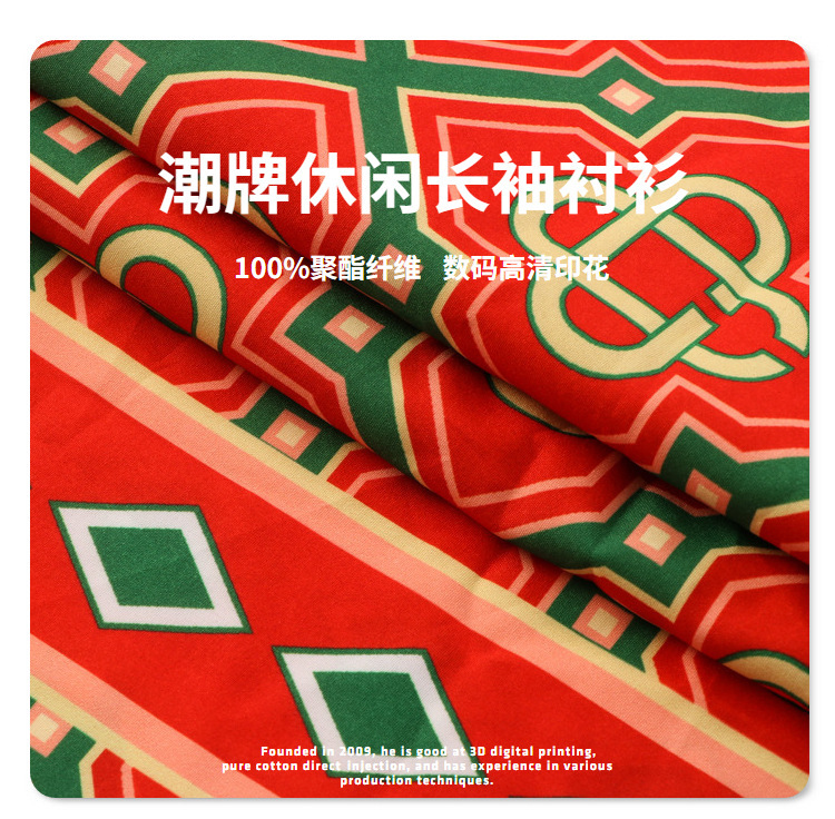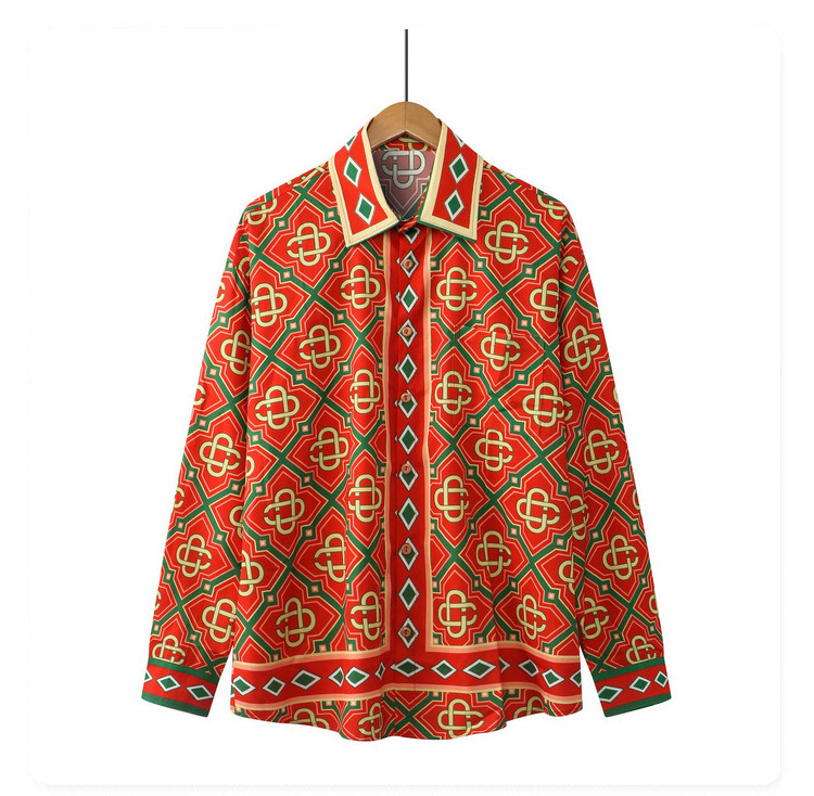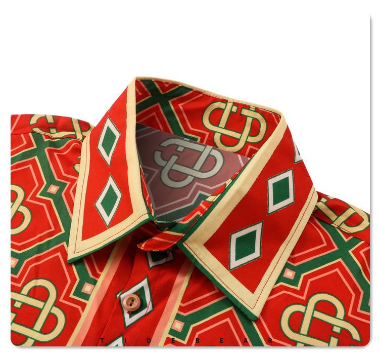 국경 간 디지털 인쇄 트렌디 브랜드 틈새 캐주얼 긴팔 셔츠 유럽과 미국의 느슨한 복고풍 마름모 스탠드 칼라 남성 셔츠스토어 가기
