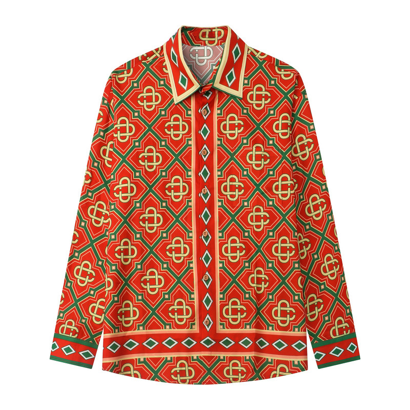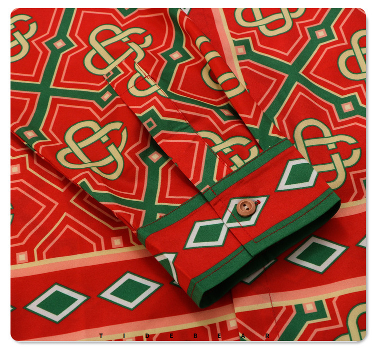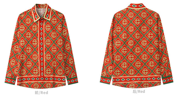국경 간 디지털 인쇄 트렌디 브랜드 틈새 캐주얼 긴팔 셔츠 유럽과 미국의 느슨한 복고풍 마름모 스탠드 칼라 남성 셔츠