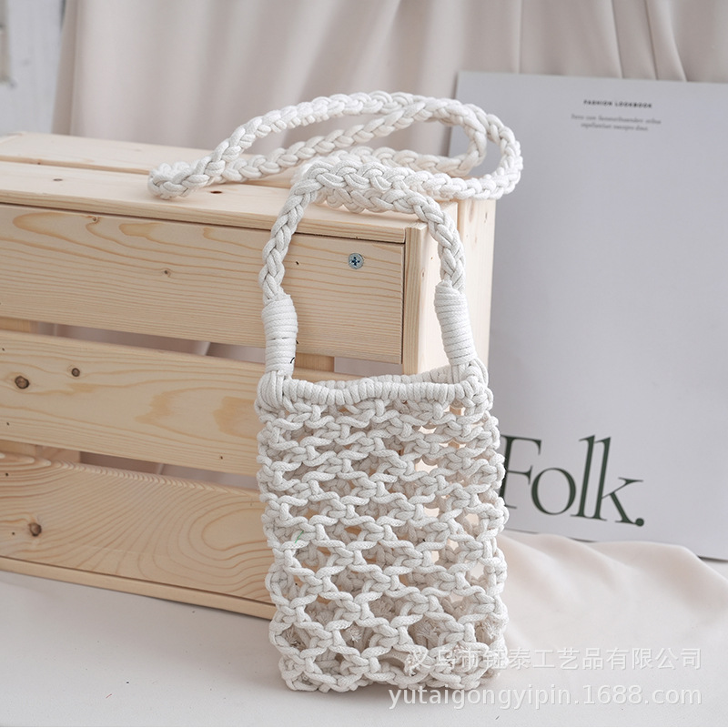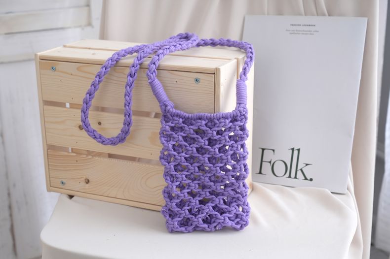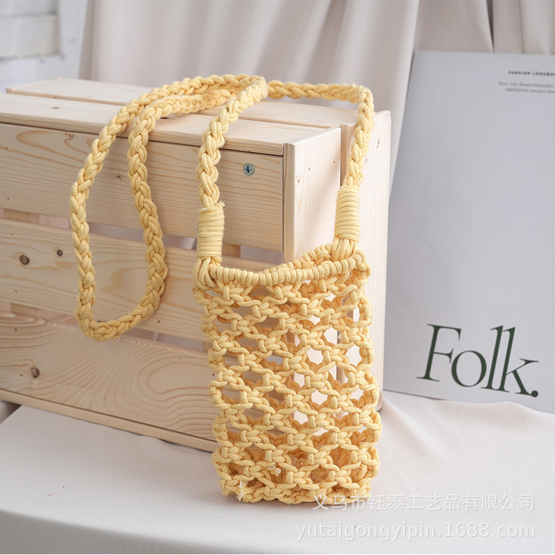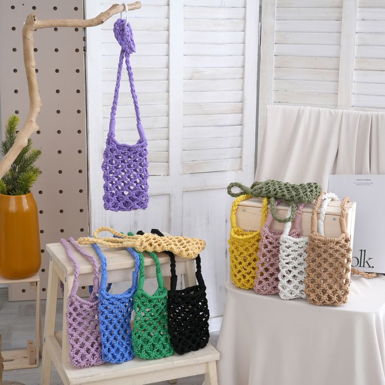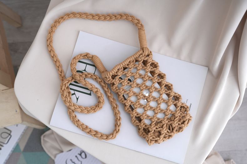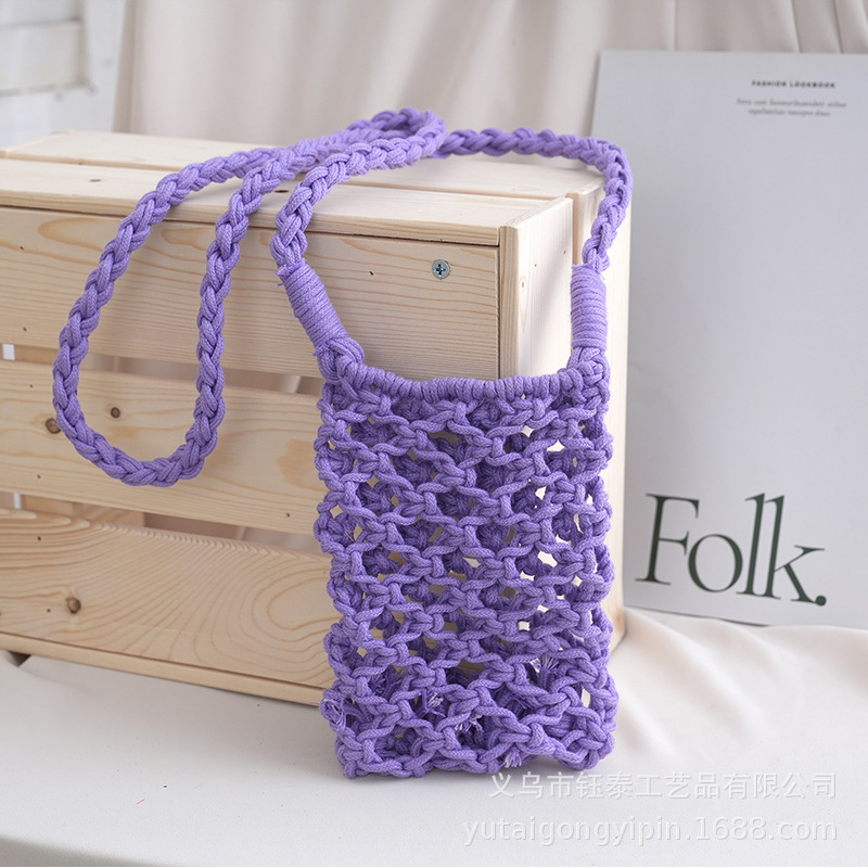 컬러 크로스 바디 코튼 라인 휴대 전화 가방 중공 수제 가방 짠 가방 휴대 전화 가방 작은 가방 귀여운 여름 가방 여성 가방